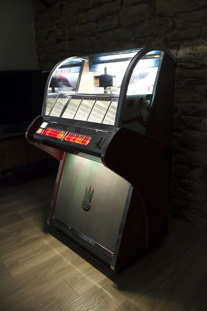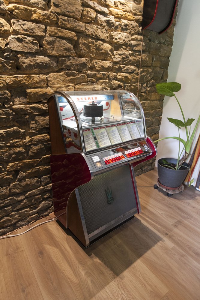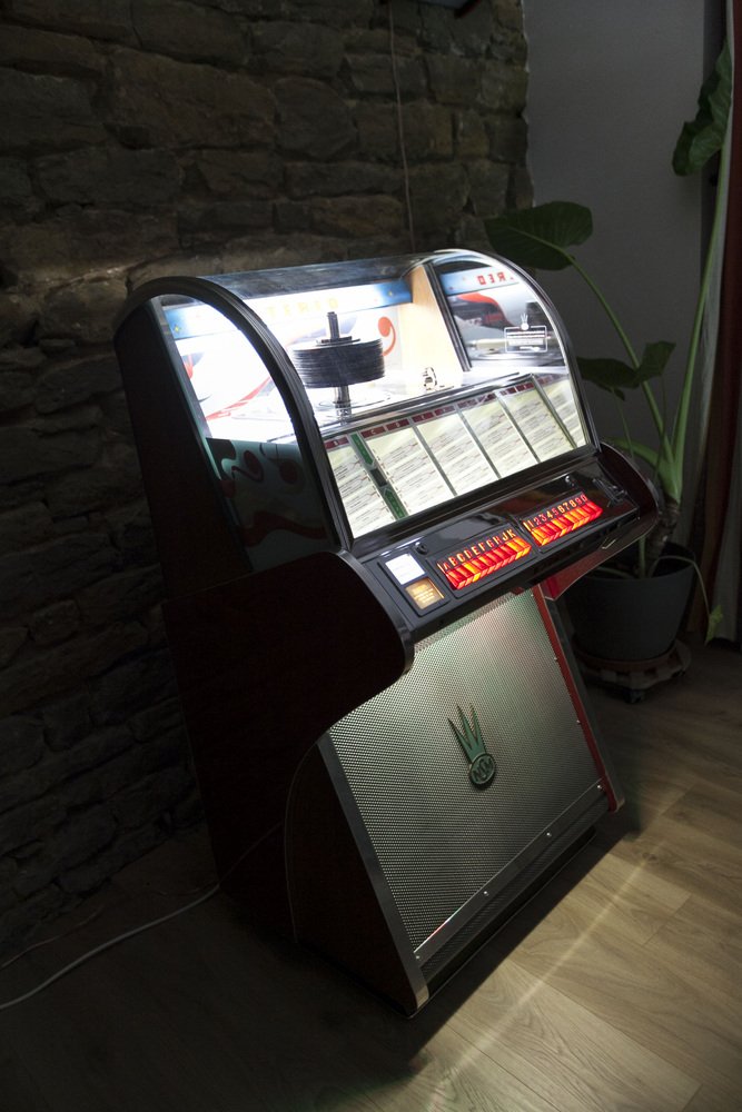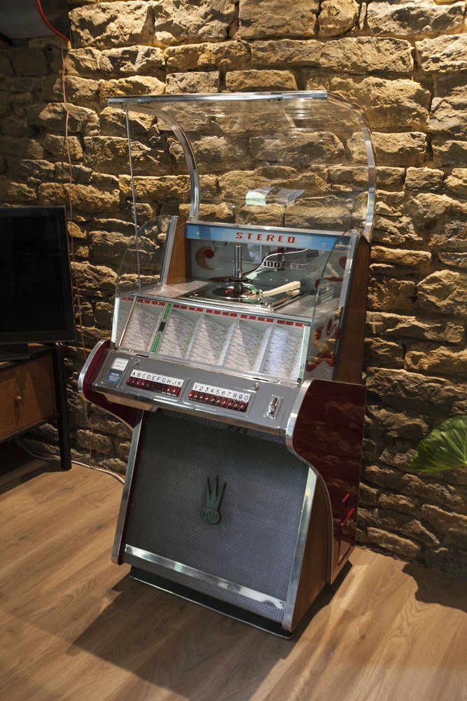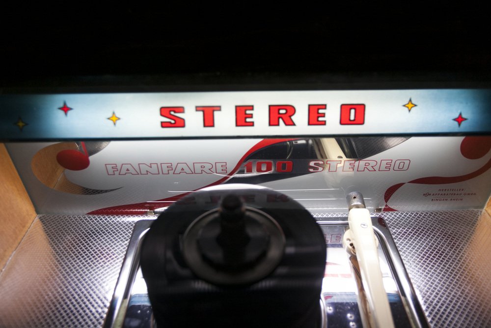 100 Stereo Modell Jukebox und Lautsprecher von NSM Brand Fanfare, 1950er, 3 . Set