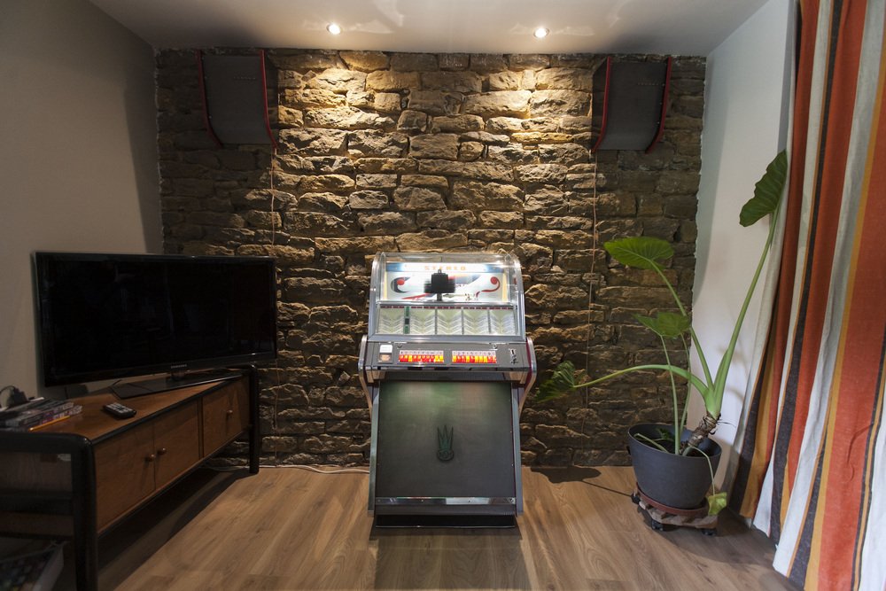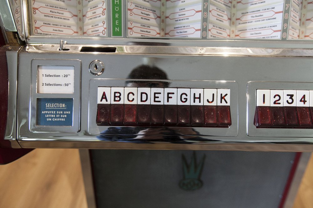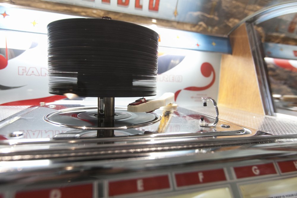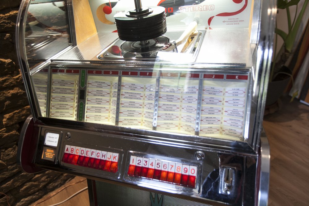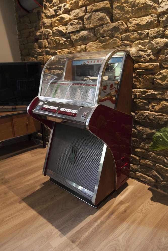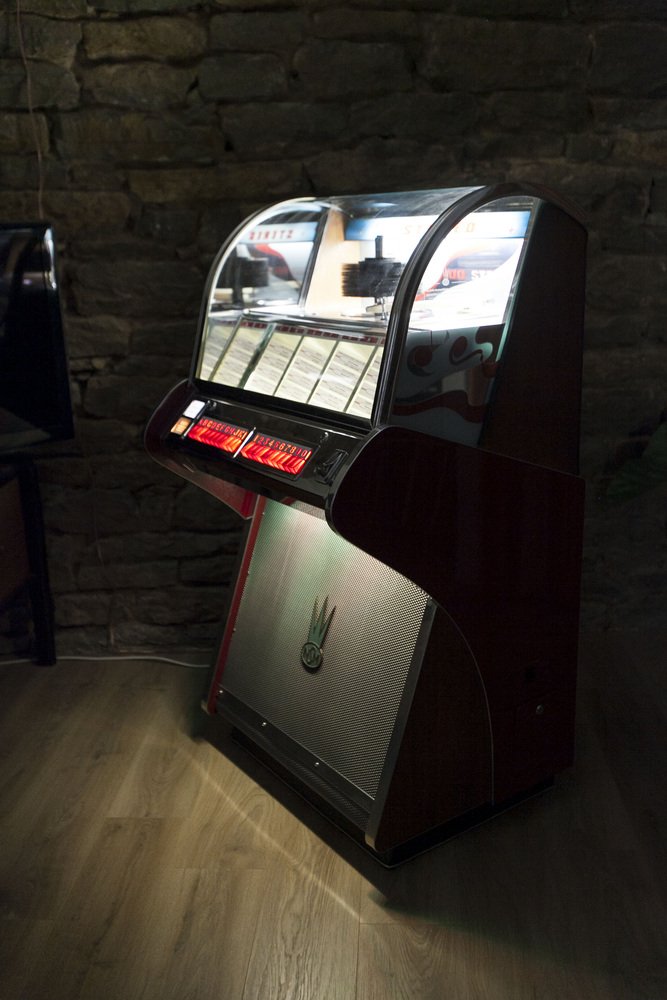 100 Stereo Modell Jukebox und Lautsprecher von NSM Brand Fanfare, 1950er, 3 . Set