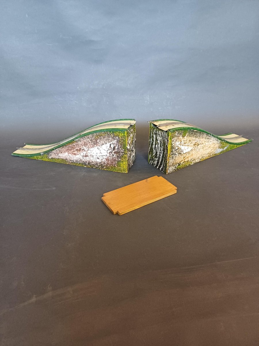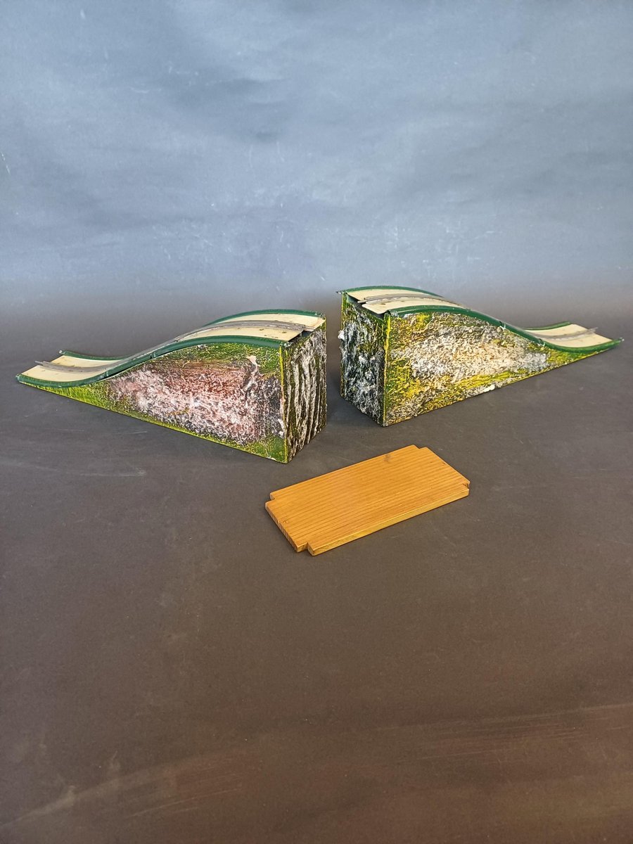 - bridging section (2 wooden ramps an a bridging piece, 2 pce begining of ramping, 2 pce end of banking, 2 straight sections
