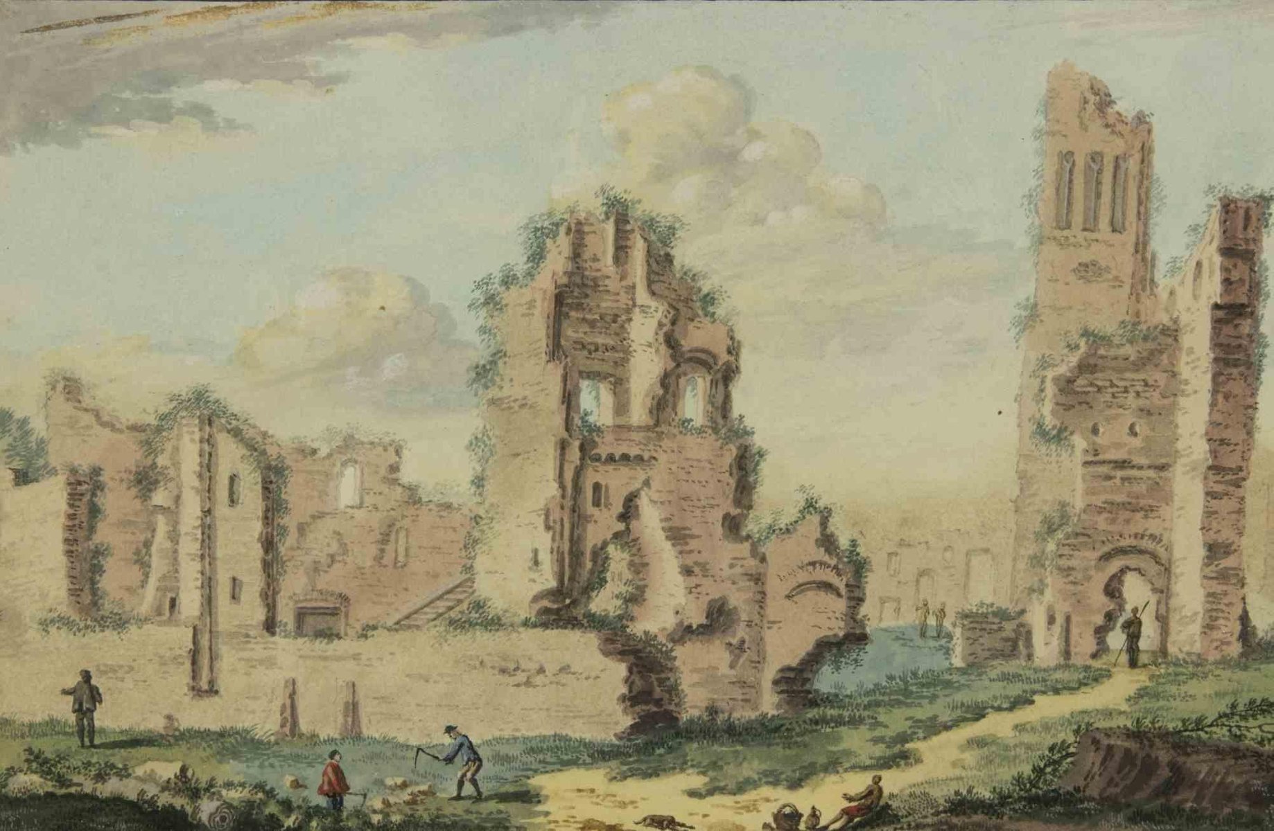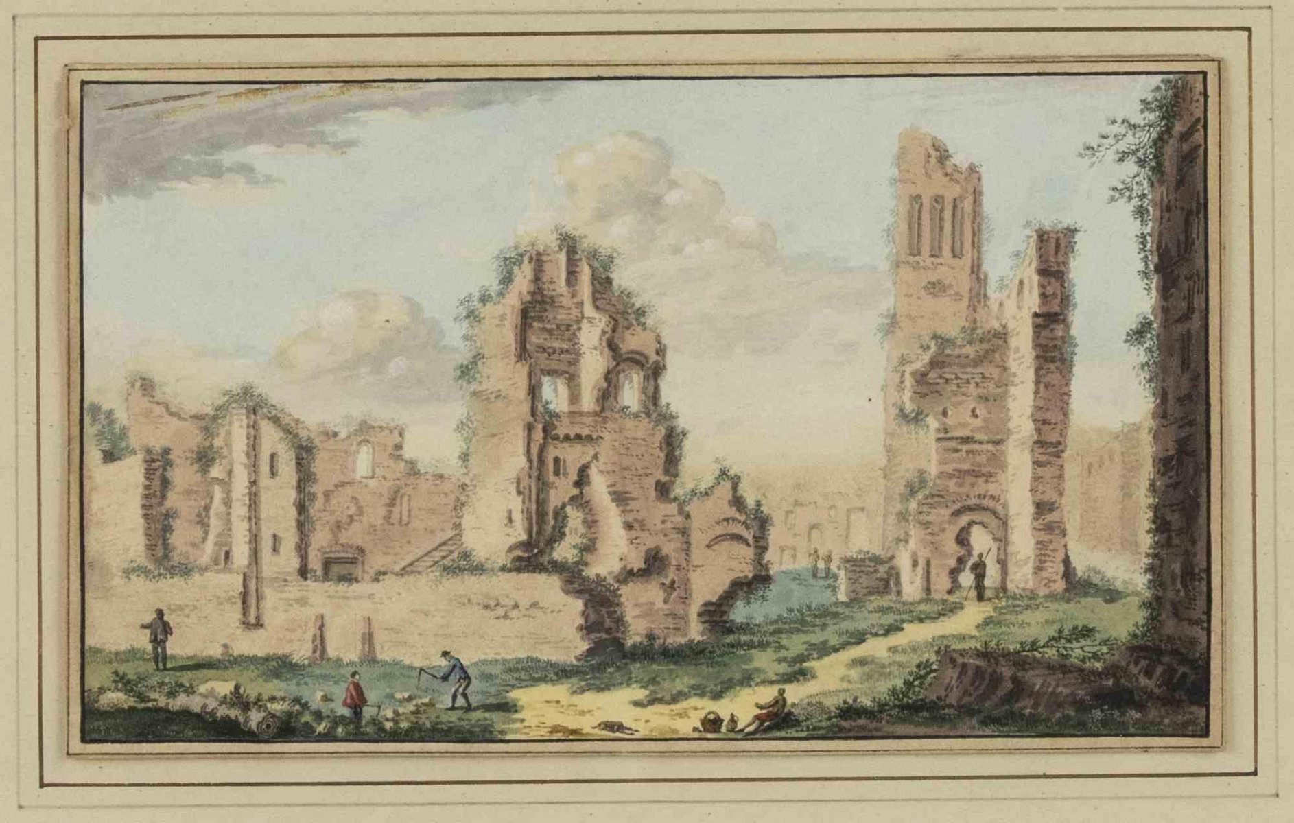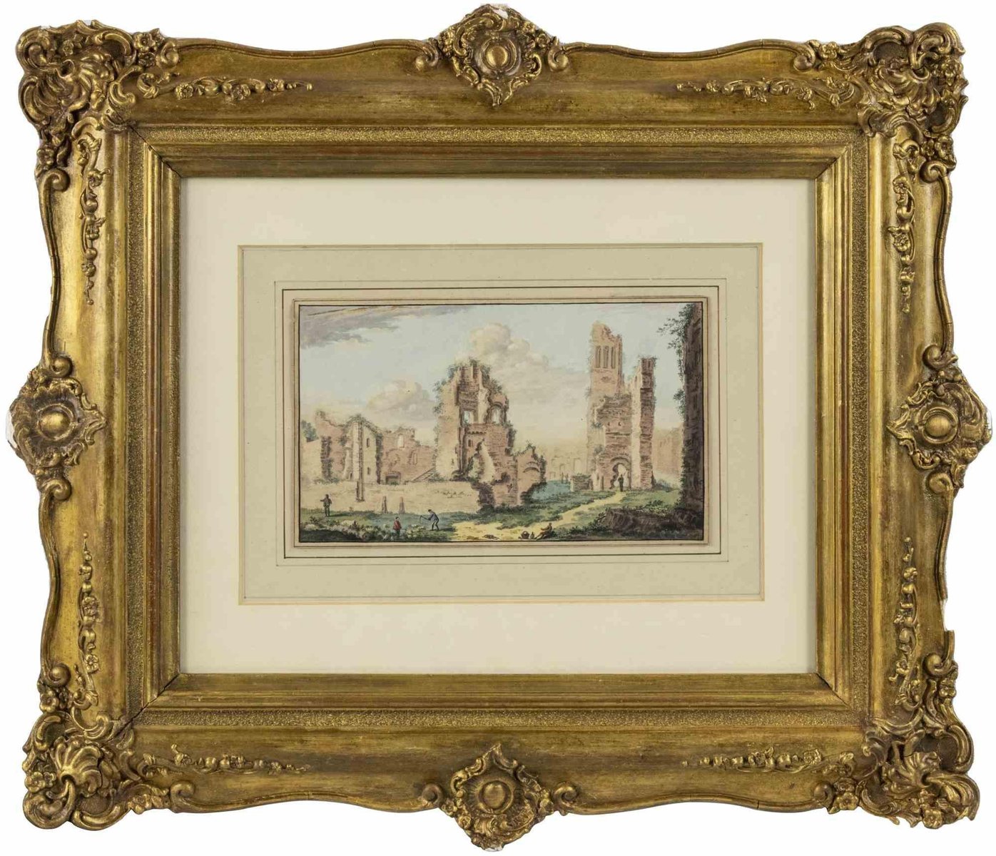 Abraham Rademaker, Antike Ruinen, Original Aquarell, 18. Jh