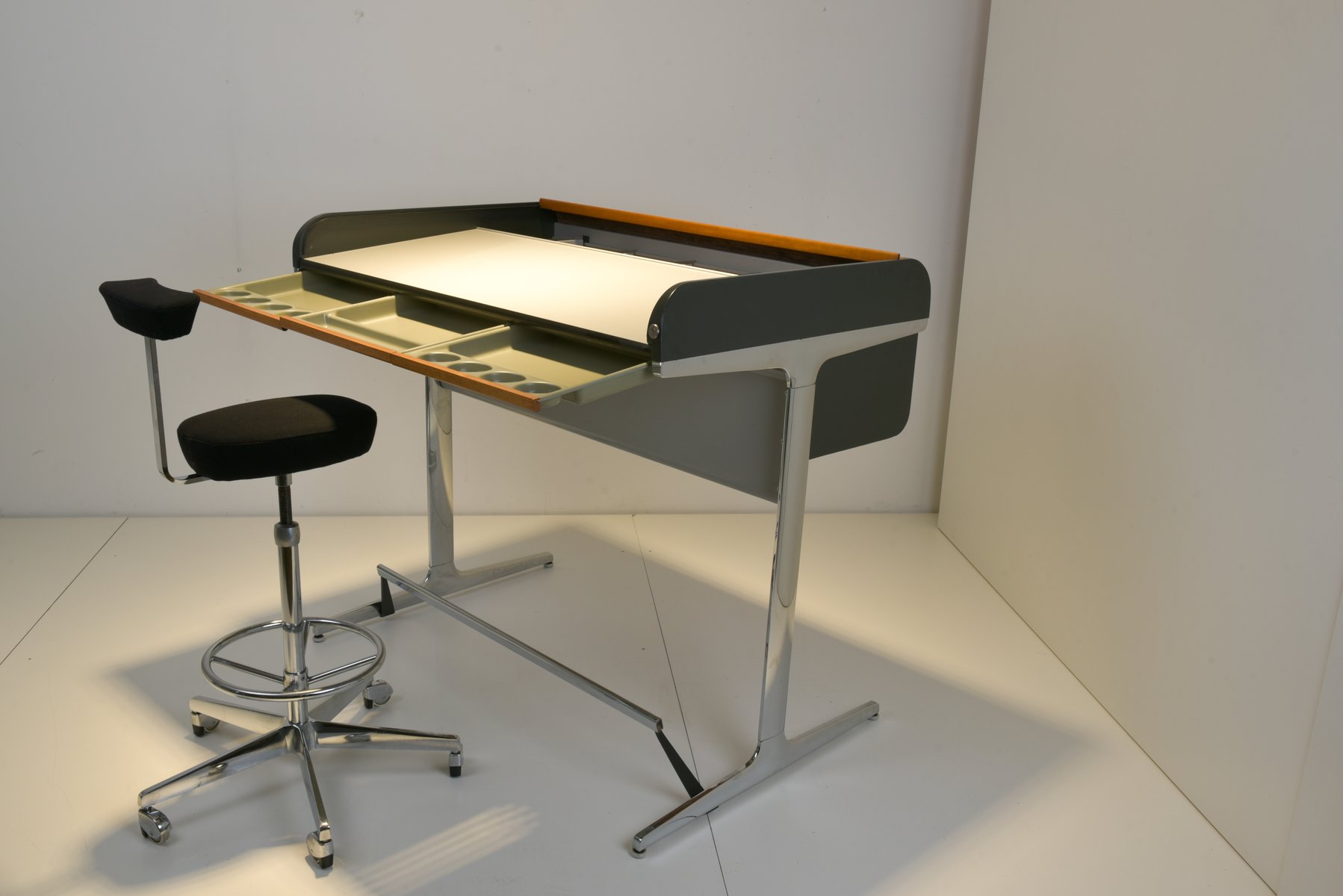 Nachdem Rohde 1944 verstarb, beauftragte De Pree den Architekten und Designer George Nelson als ersten offiziellen Designdirektor. Nelson verschaffte dem Unternehmen internationalen Ruhm, indem er eine neue, äußerst ansprechende Unternehmensidentität schaffte und mit einigen der visionärsten Designern jener Zeit - Charles und Ray Eames, Isamu Noguchi, Alexander Girad - zusammenarbeitete. Unter seiner Führung schaffte Herman Miller einige seiner bezeichnendsten Werke des 20. Jahrhunderts, wie den DCM “Potato Chip” Stuhl des Ehepaares Eames (1945/1946), den Molded Fiberglass Chair (1950) und den Eames Lounge Chair (1956); Noguchis Noguchi Table (1948) und Nelsons eigene Bubble Lamps von 1955 sowie sein Marshmallow Sofa von 1956, um nur ein paar zu nennen. Es ist anzumerken, dass die Action Office Project I Serie von Robert Propst 1964 den Weg für justierbare und halb offene Arbeitsplätze ebnete, und das zu einer Zeit in der modernes Design immer mehr und mehr als die Stilart für amerikanische Firmeneinrichtung galt. Zu neueren Bestsellern aus der Büromöbelpalette gehören der von Bill Stumpf und Don Chadwick entworfene allgegenwärtige Aeron Chair (1944) und der umweltfreundliche High-Tech-Stuhl Mirra Chair von Studio 7.5 (2003).