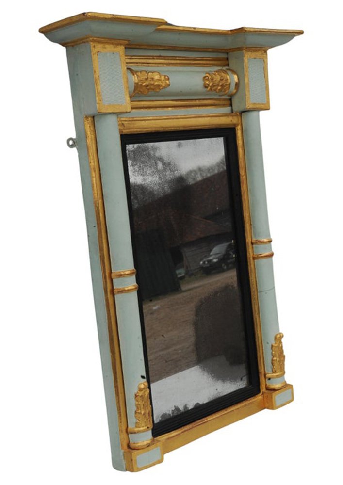 Ägyptischer Spiegel, 19. Jh. Blassblauer handbemalter Vergoldeter Pier Spiegel