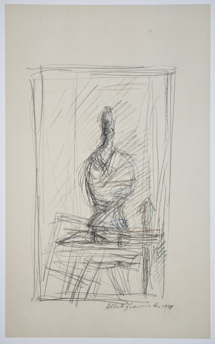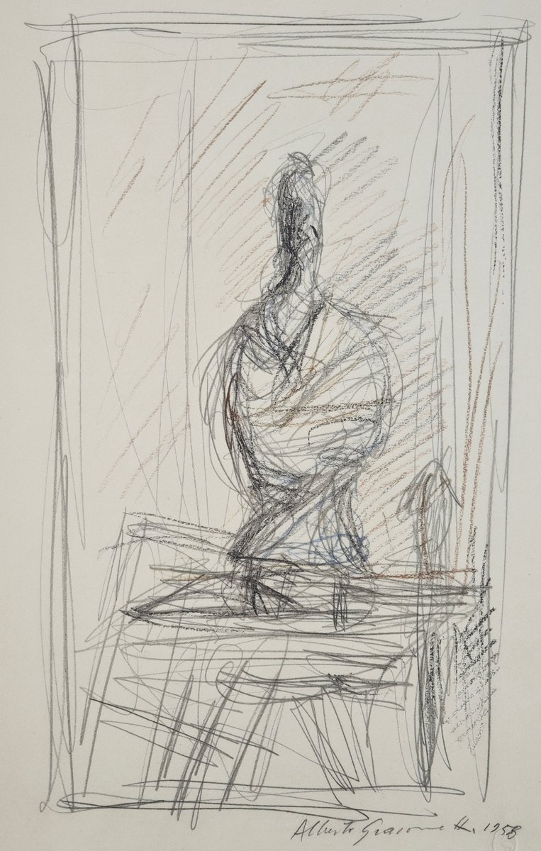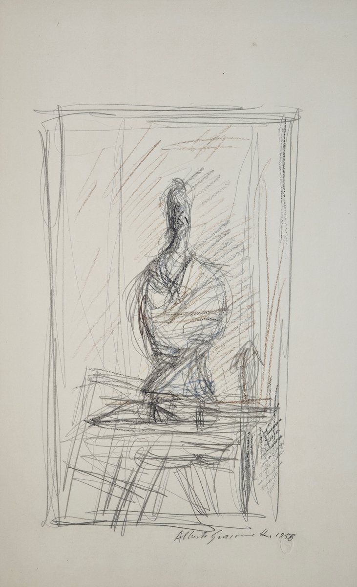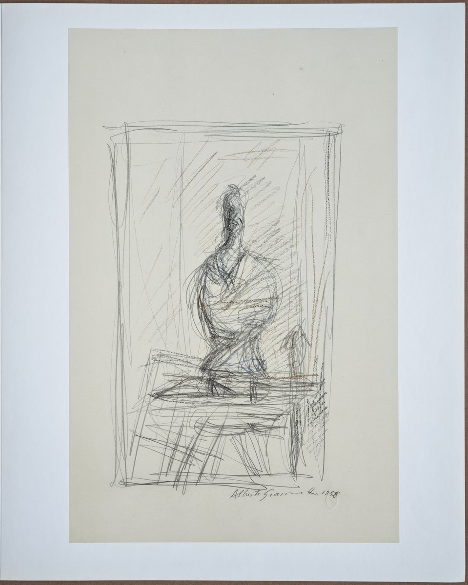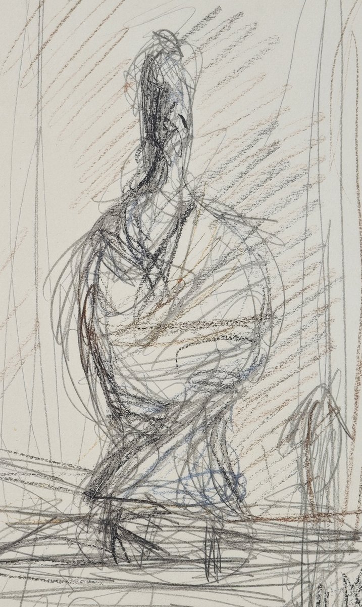 Eines Tages überreichte ihm ein kleines Mädchen vor meinen Augen eine ihrer Zeichnungen, bat ihn um ein Autogramm und überreichte ihm im Gegenzug ein kleines Notizbuch. Giacometti war besorgt, Zeichnung für Zeichnung zu finden, nahm das Heft und begann, ohne sich von seinem Platz zu erheben, mit Bleistift zu zeichnen, was er vor sich sah: den langen Raum in einer Reihe von Zimmern und am Ende den Tisch mit der Lampe und den darin befindlichen Gegenständen. Stundenlang mühte er sich ab, kratzte, punktierte, zerriss die Blätter, bis er auf dem kleinsten verfügbaren Platz das zufriedenstellendste Ergebnis erzielte. Das kleine Mädchen war erstaunt und glaubte zunächst, er wisse nicht, wie er der Sache auf den Grund gehen sollte, doch bald verstand sie, beeindruckt von seiner Konzentration, dass Kunst ein Spiel sein kann, das der Virtuosität überlegen ist. Als ich ihn beobachtete, wie er alles in seinen Gesten, mit unruhigem Auge und unruhiger Hand machte, träumte ich von einem Giacometti... der Giacometti zeichnete, während er zeichnete.