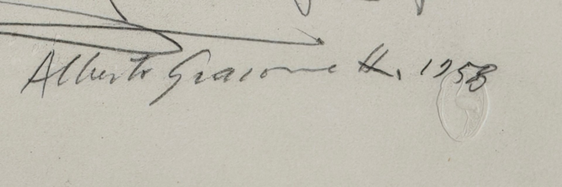 One day, before my very eyes, a little girl handed him one of her drawings and, asking for an autograph, handed him a small notebook in exchange. Concerned about matching drawing for drawing, Giacometti took the notebook and, without moving from his seat, began to draw in pencil what was before him: the long room in a series of rooms and, at the end, the table with the lamp and the objects therein. For hours he toiled, scratching, puncturing, tearing the sheets of paper, until he achieved, on the smallest space of paper available, the most satisfying result. The little girl, amazed, initially believed he didn't know how to get to the bottom of it, but soon, struck by his concentration, she understood that art could be a game superior to virtuosity. Watching him do everything in his gestures, with restless eye and hand, I dreamed of a Giacometti... who drew Giacometti while he drew.