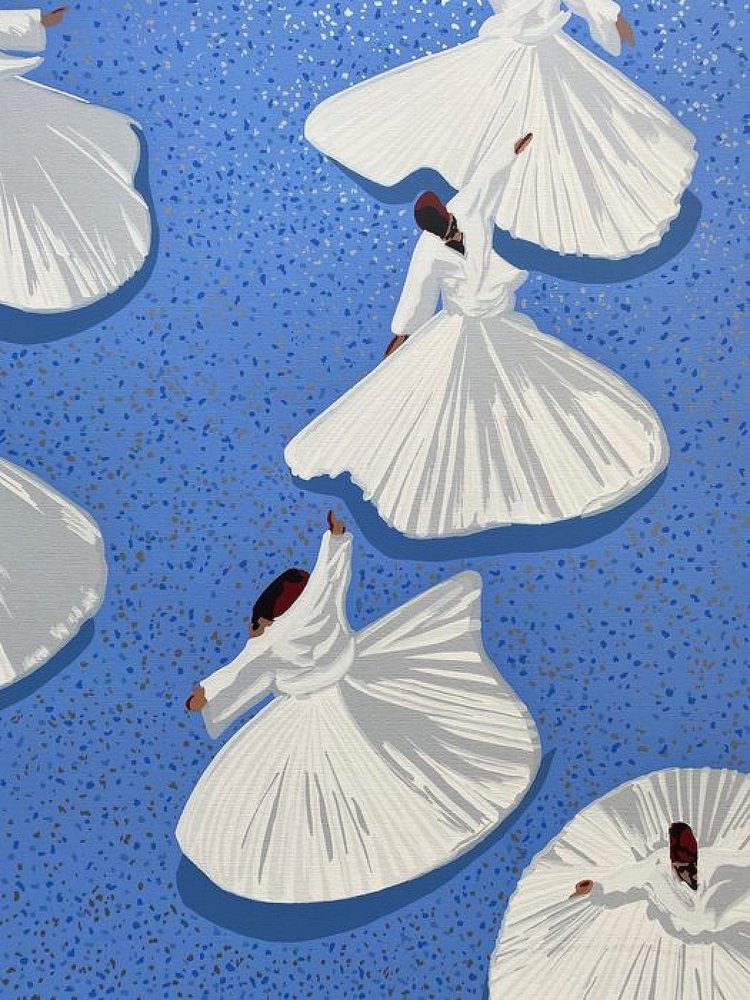 Aldo Mondino "Turcata" - color serigraphy cm. 74x134 specimen N. Of 100 Signed and numbered by hand by the artist on the front Present certificate of authenticity and provenance (signature and embossed stamp of the publisher with photographic reference and numbering) - EXCEPTIONAL WORK IN PERFECT CONDITION, UNCORNED - Images of a framed specimen are for illustrative purposes only. BIOGRAPHY Aldo Mondino (Turin 1938-2005) began his very personal artistic adventure as an interpreter of the Conceptual Movement, and then gradually directed his research to a decidedly more pictorial side. from his works on faesite, for example, to his sculptures made with ever-different materials to his recovery of painting filtered through a great attraction for the Orient, Africa, Morocco and India. Mondino's poetic universe is under the banner of stylistic eclecticism and a great irony that pervades all his work. The puns between titles and content are like his famous Dancing Dervishes, presented at the 1993 Venice Biennale curated by Achille Bonito Oliva, which seem suspended in a surreal space. His work, born in the context of research related to European conceptual experimentation, soon rediscovered an entirely personal relationship with painting. He has exhibited in major galleries and museums in Italy and abroad.