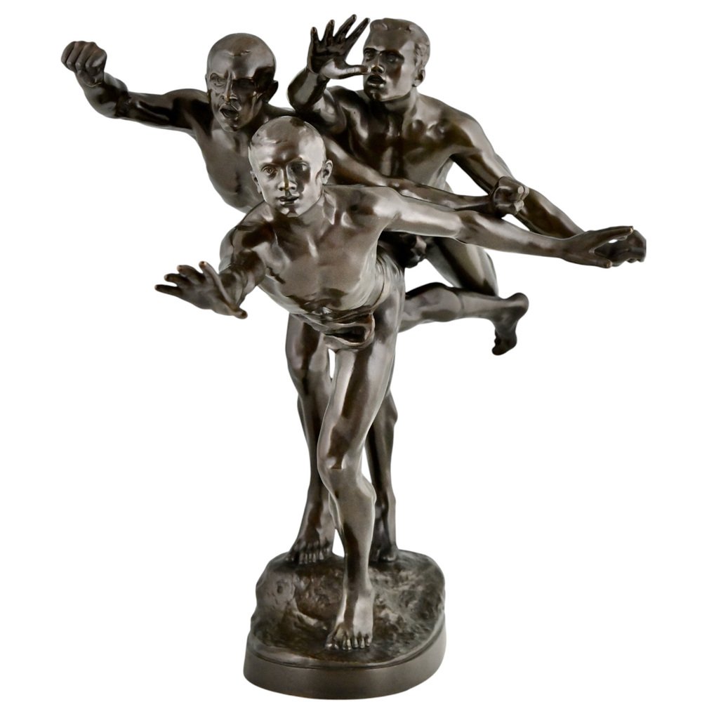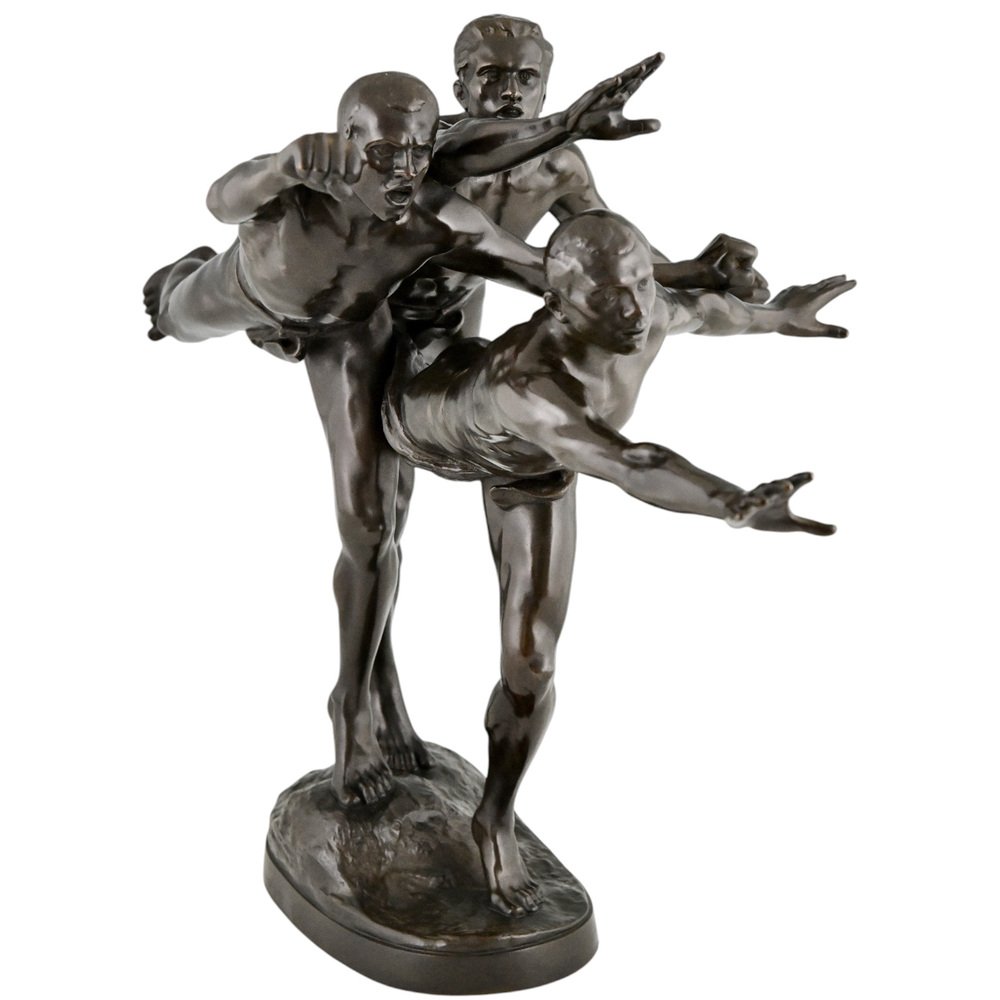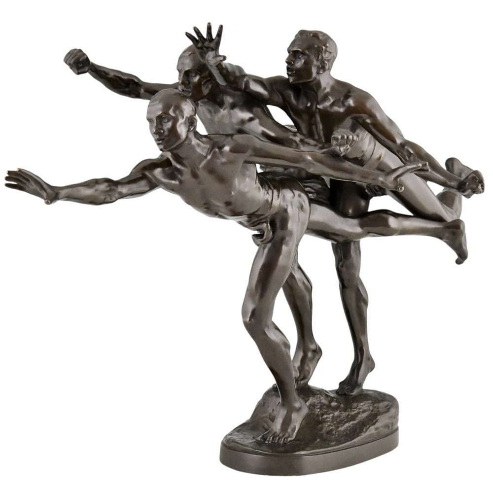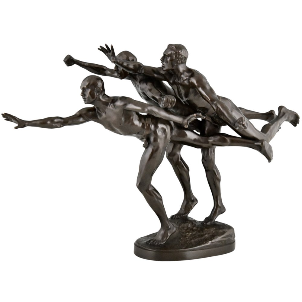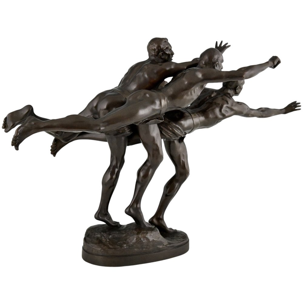 Alfred Boucher, Au But Skulptur von 3 nackten Läufern, 1890, Bronze