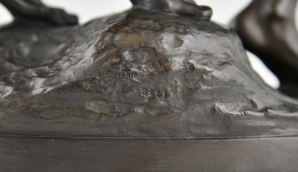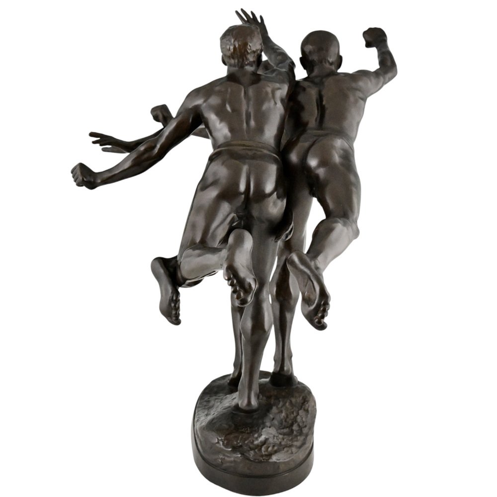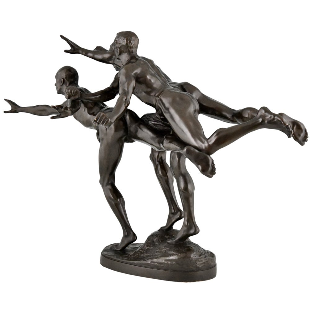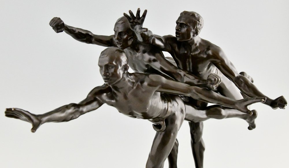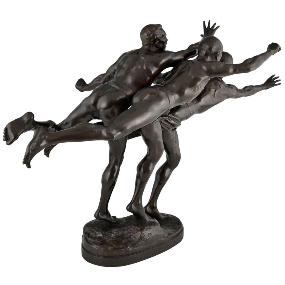Alfred Boucher, Au But Skulptur von 3 nackten Läufern, 1890, Bronze