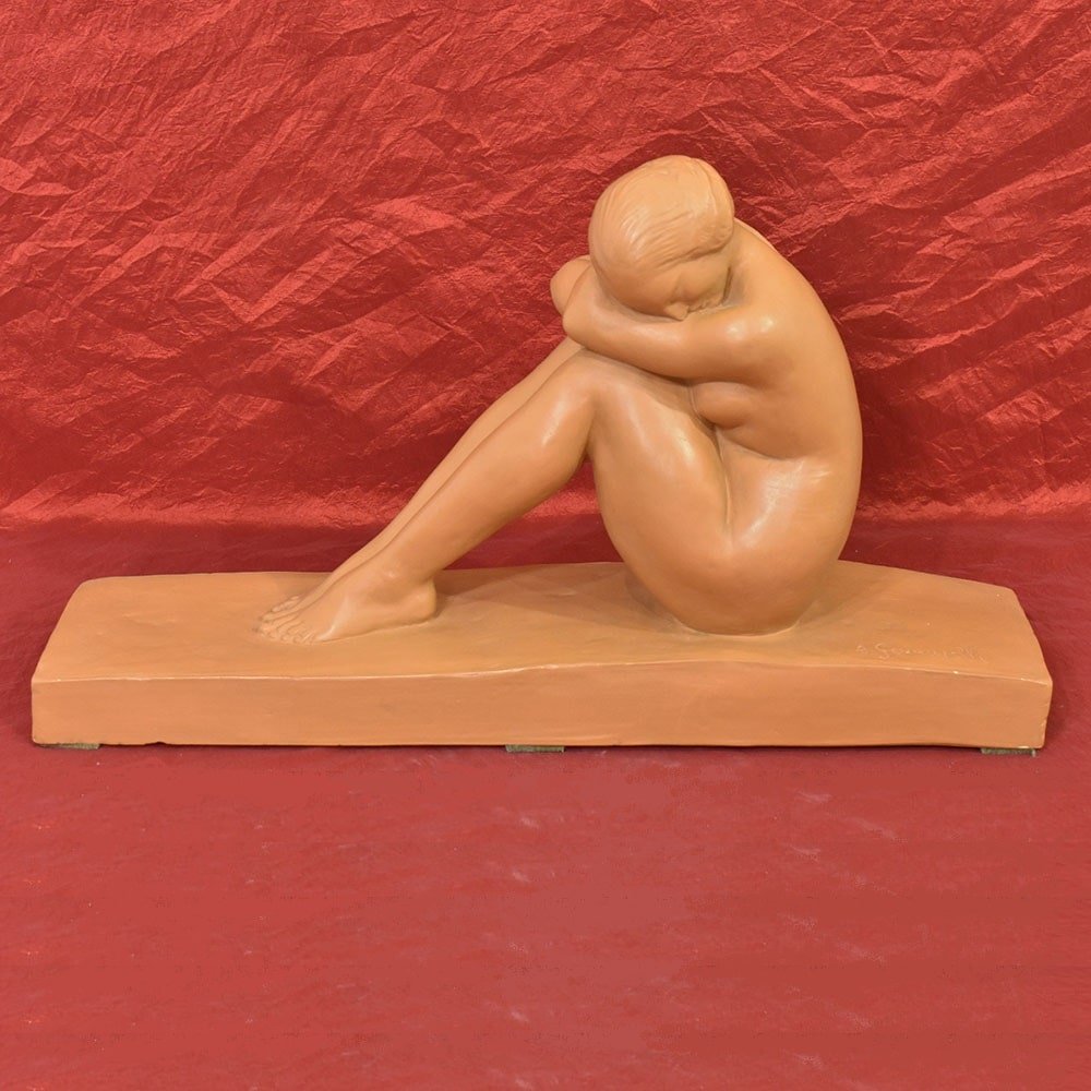 The Art Déco Sculpture proposed here is in Terracotta. Earthenware sculpture. 1920s/30s. Original 20th Century patina.
