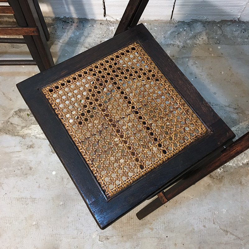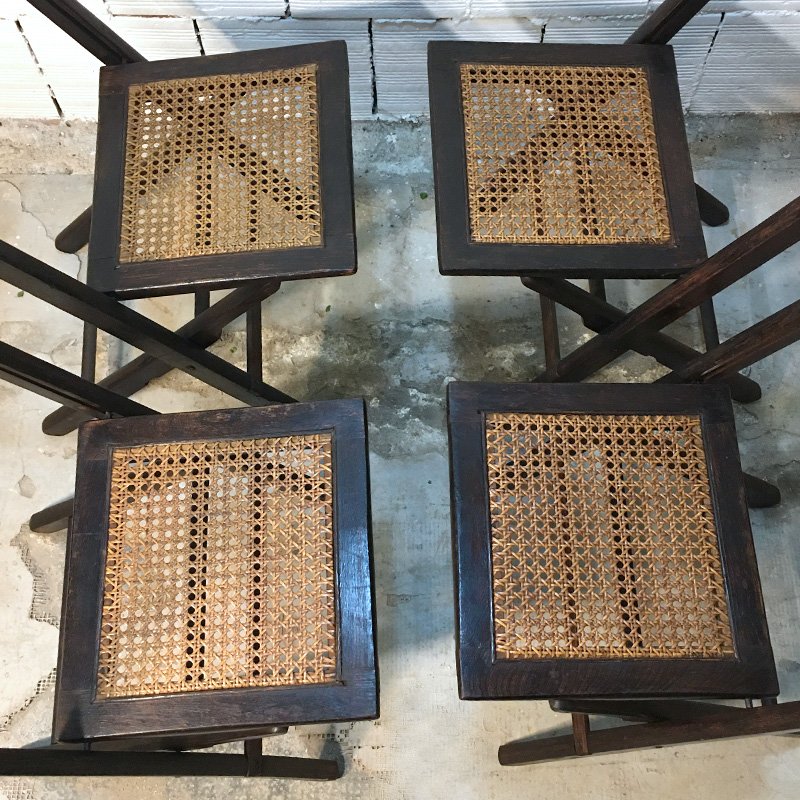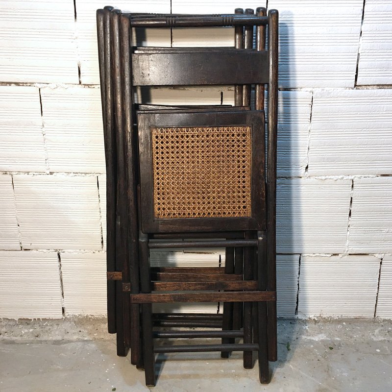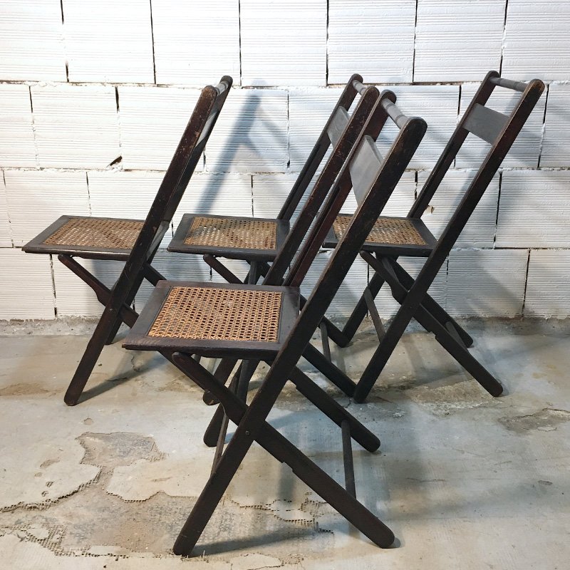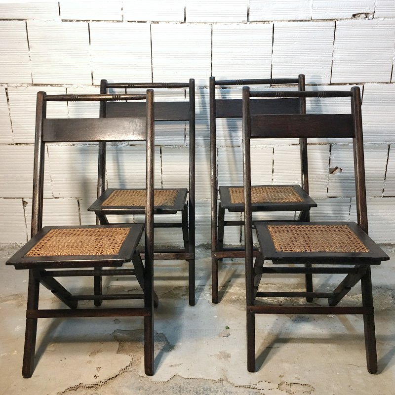 Amerikanische Mid-Century Walnuss und Stroh Klappstühle, 1950er, 4er Set