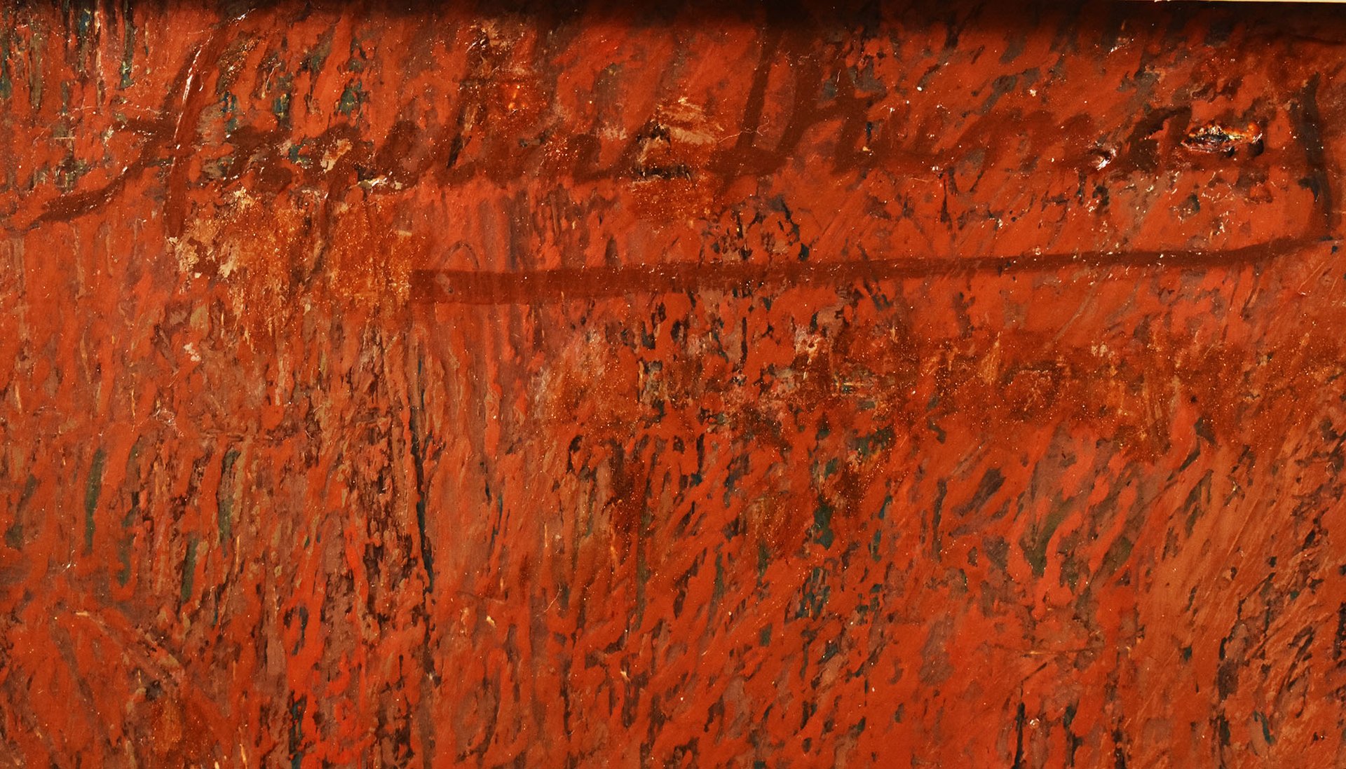 The antique painting is presented in a carved wooden frame, dating to the 1930s.