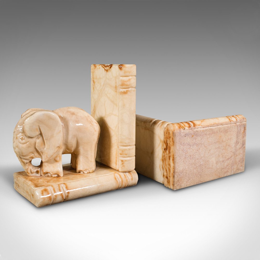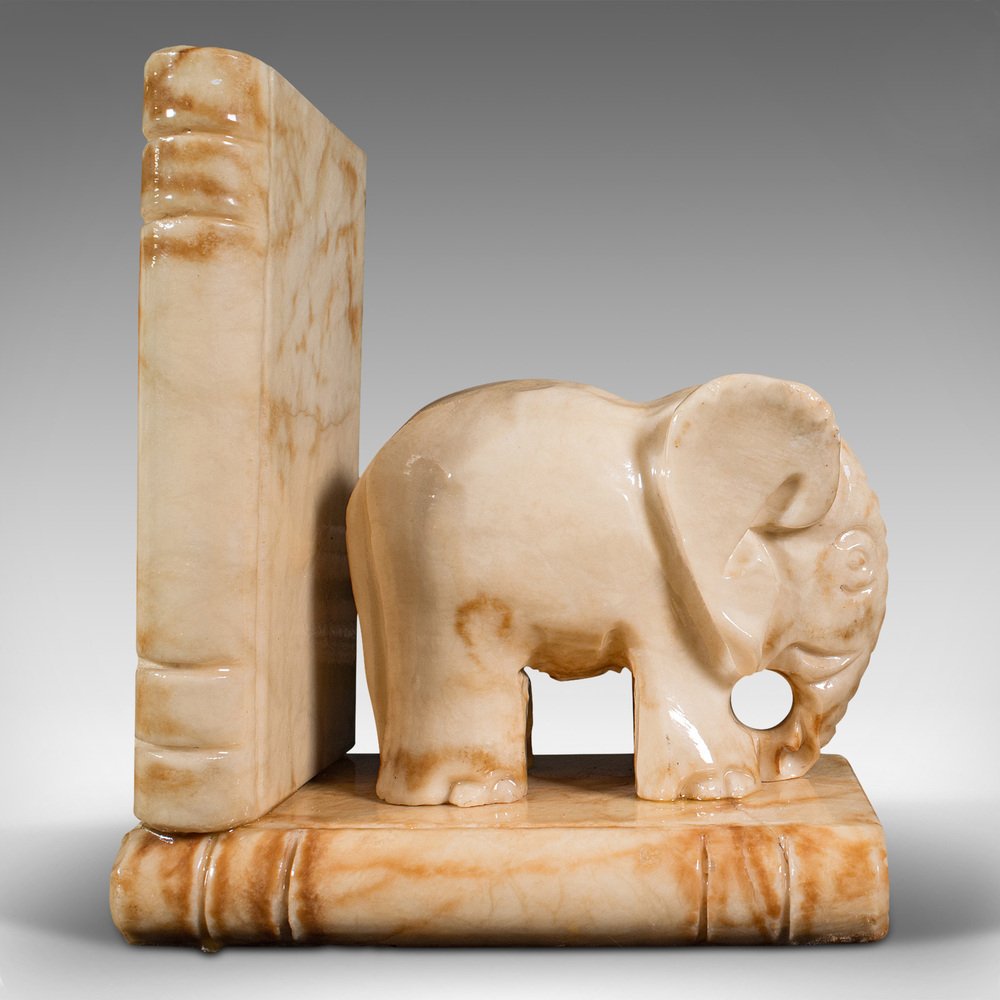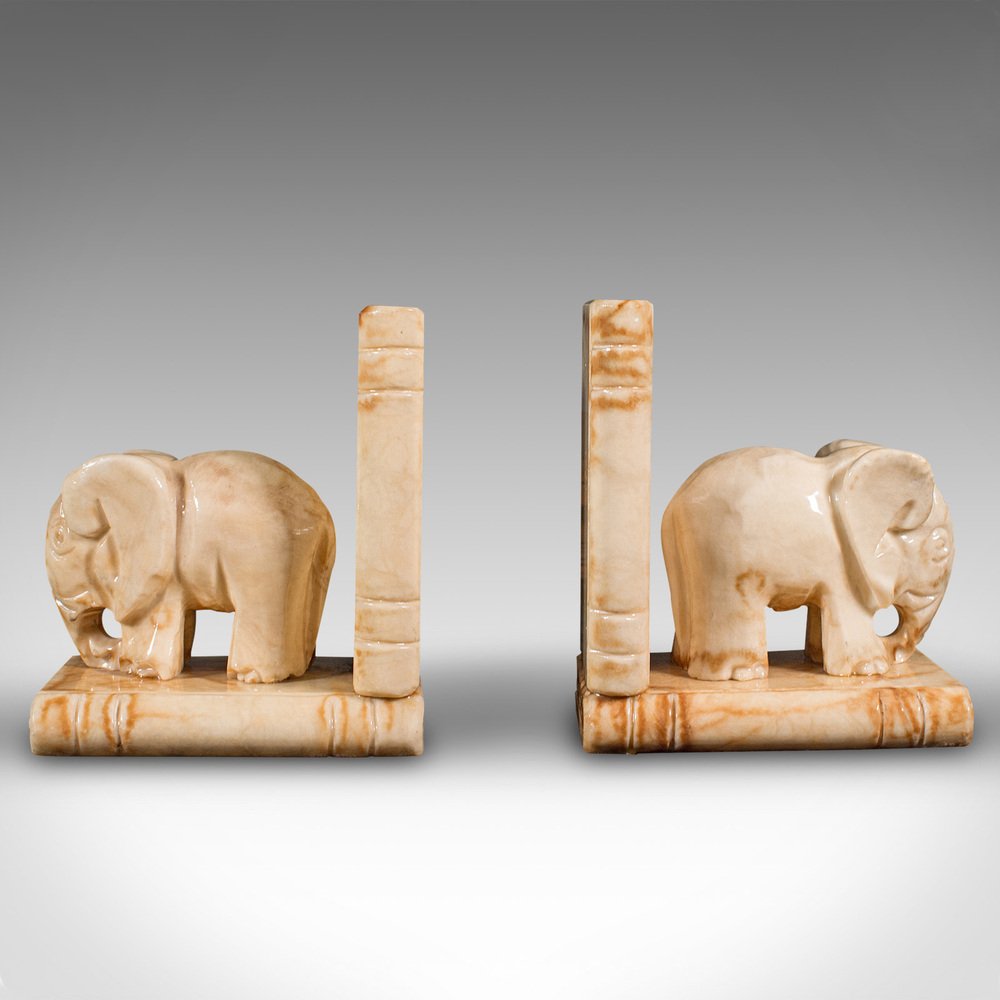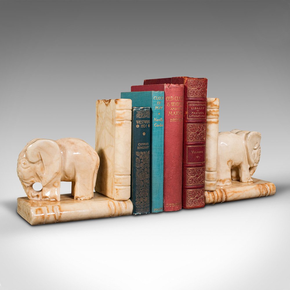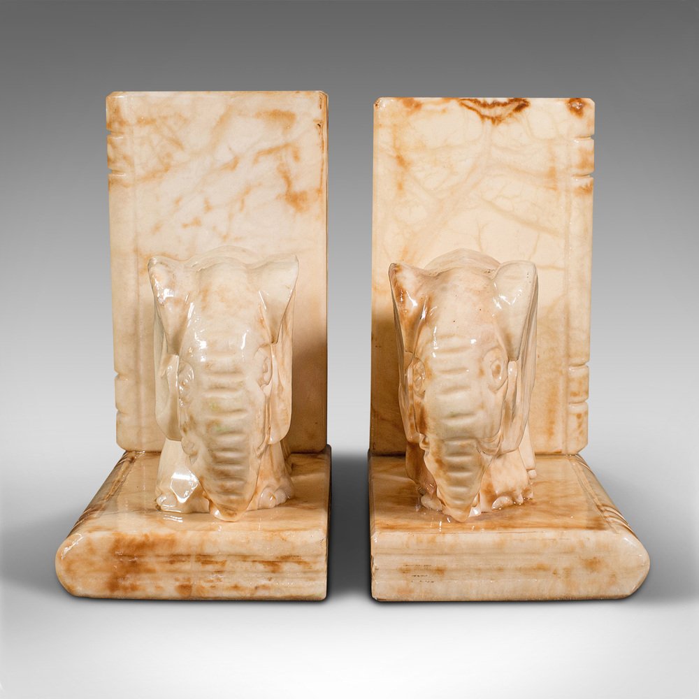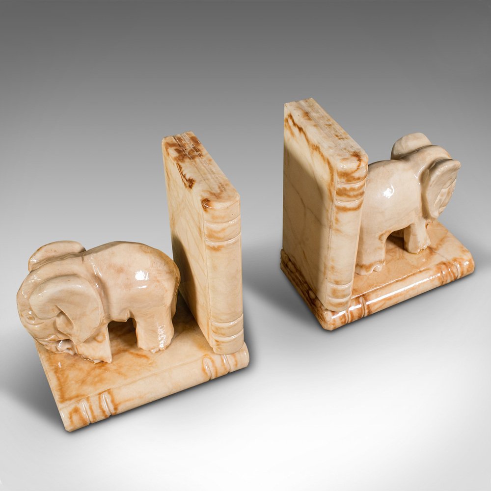 Antike Elefanten Milch Onyx Buchstützen, 1900er, 2er Set