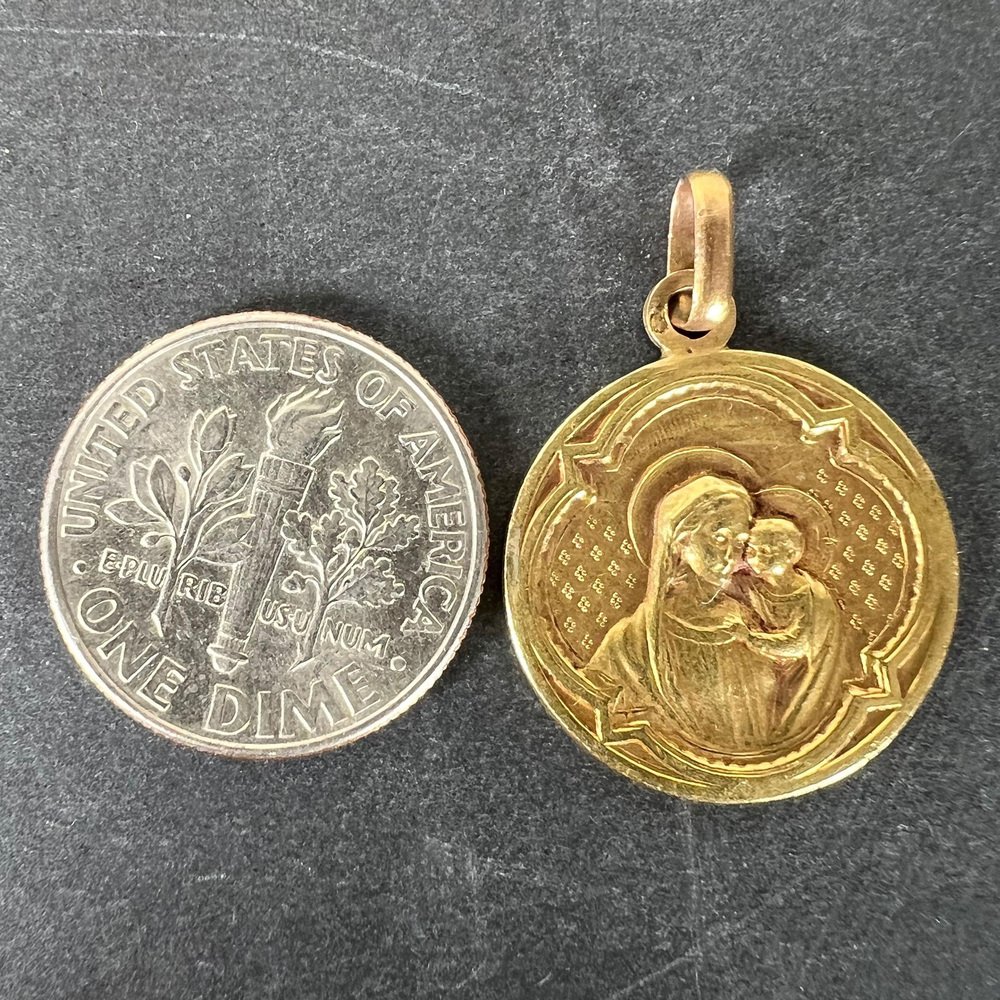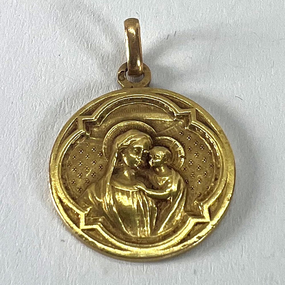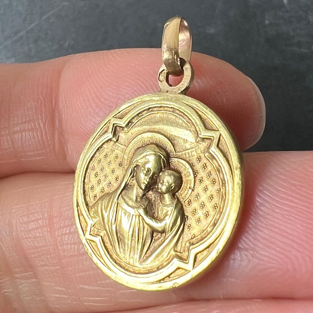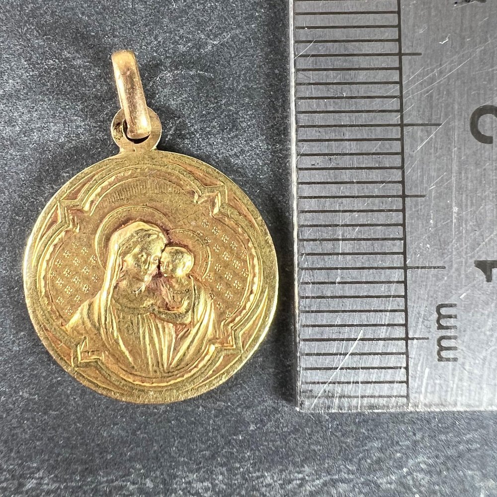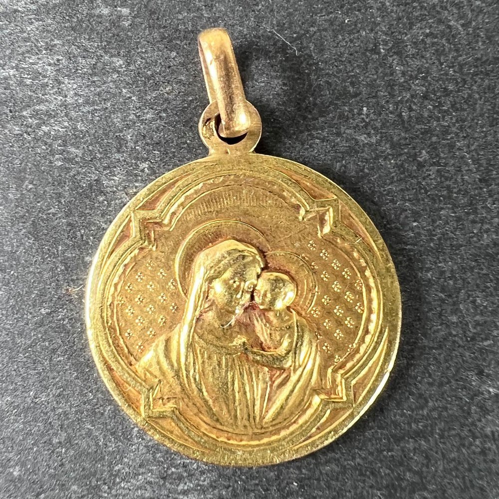 Antike französische Religiöse Medaillen-Anhänger Madonna mit Kind aus 18 Karat Gelbgold, 1890er
