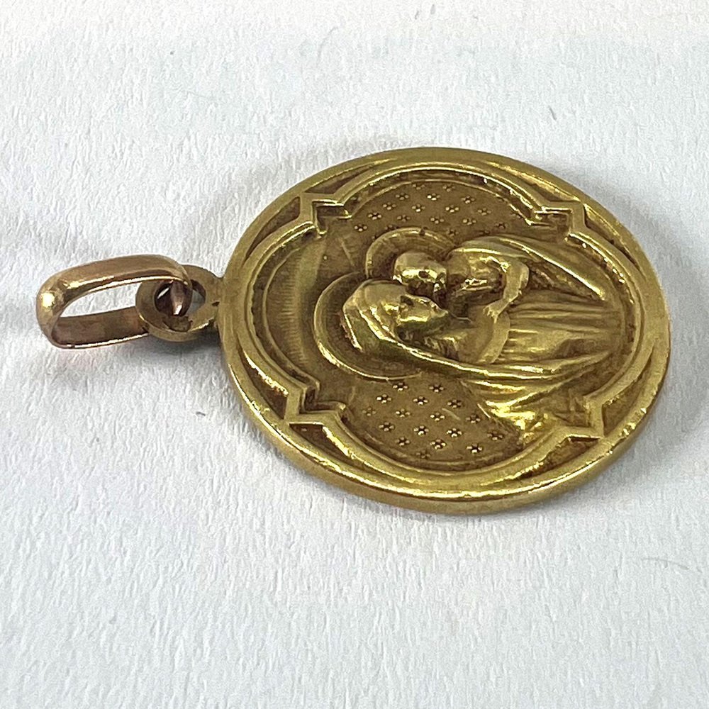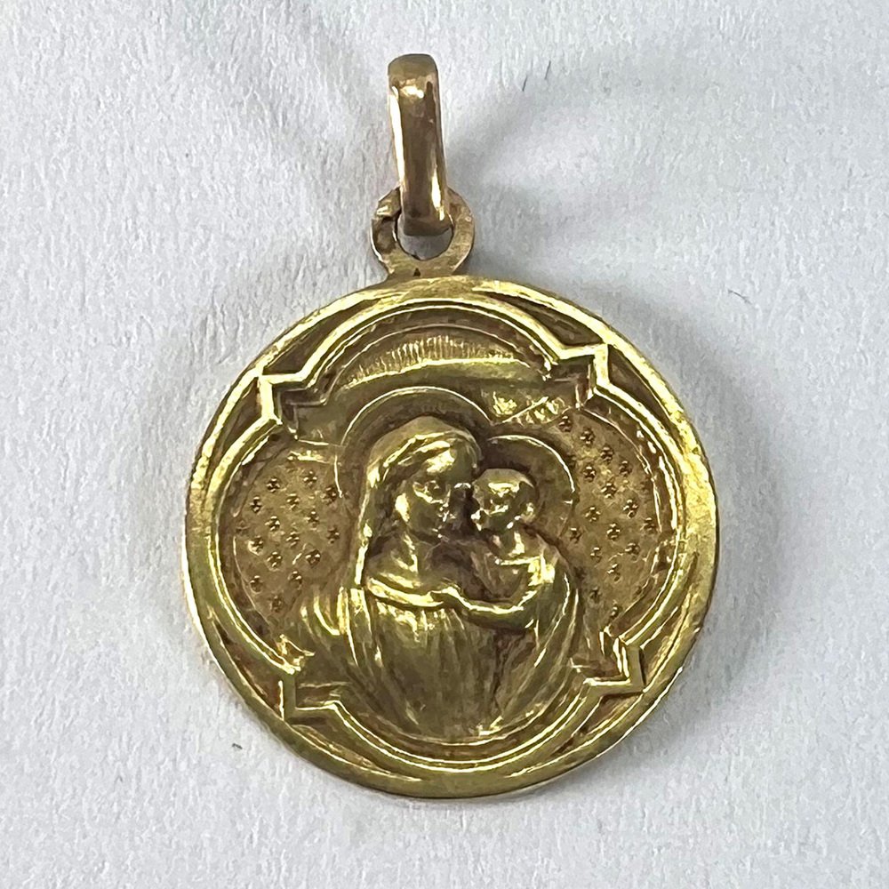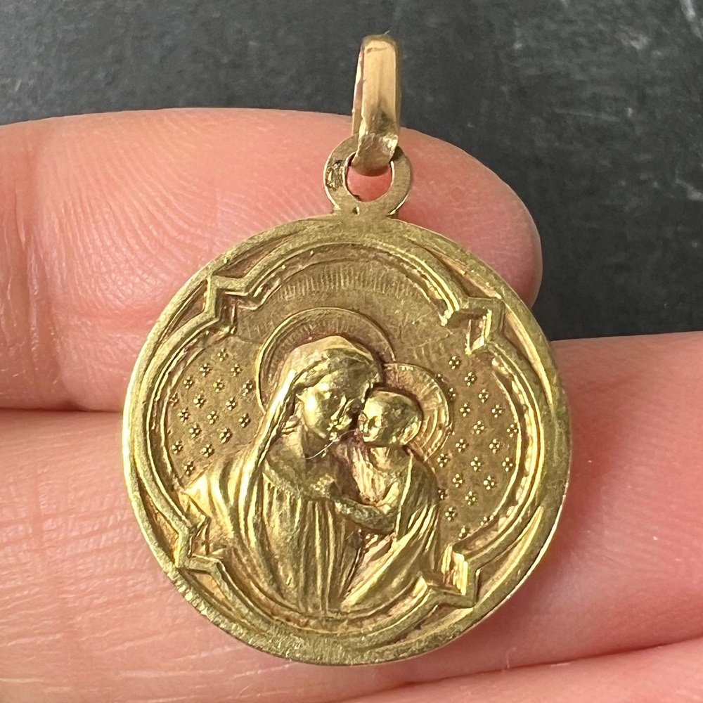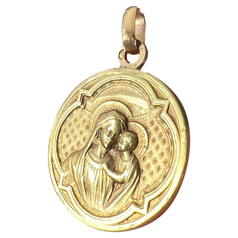Antike französische Religiöse Medaillen-Anhänger Madonna mit Kind aus 18 Karat Gelbgold, 1890er