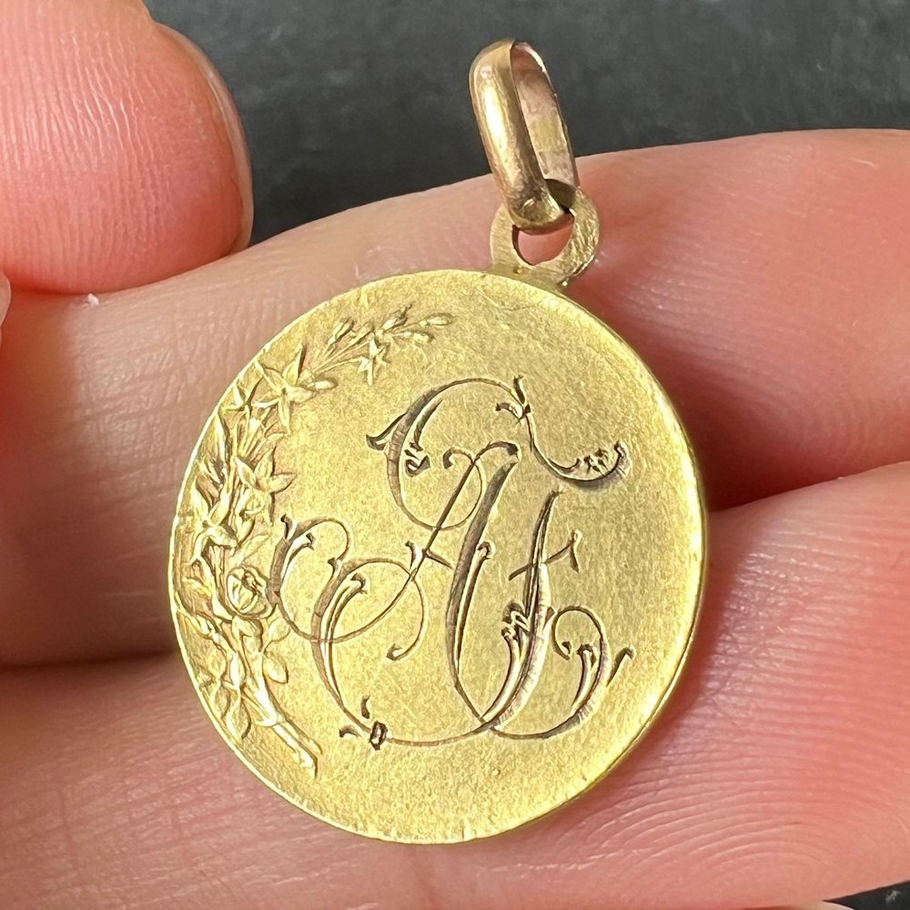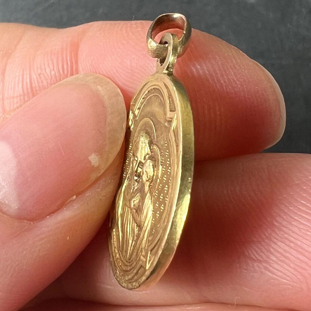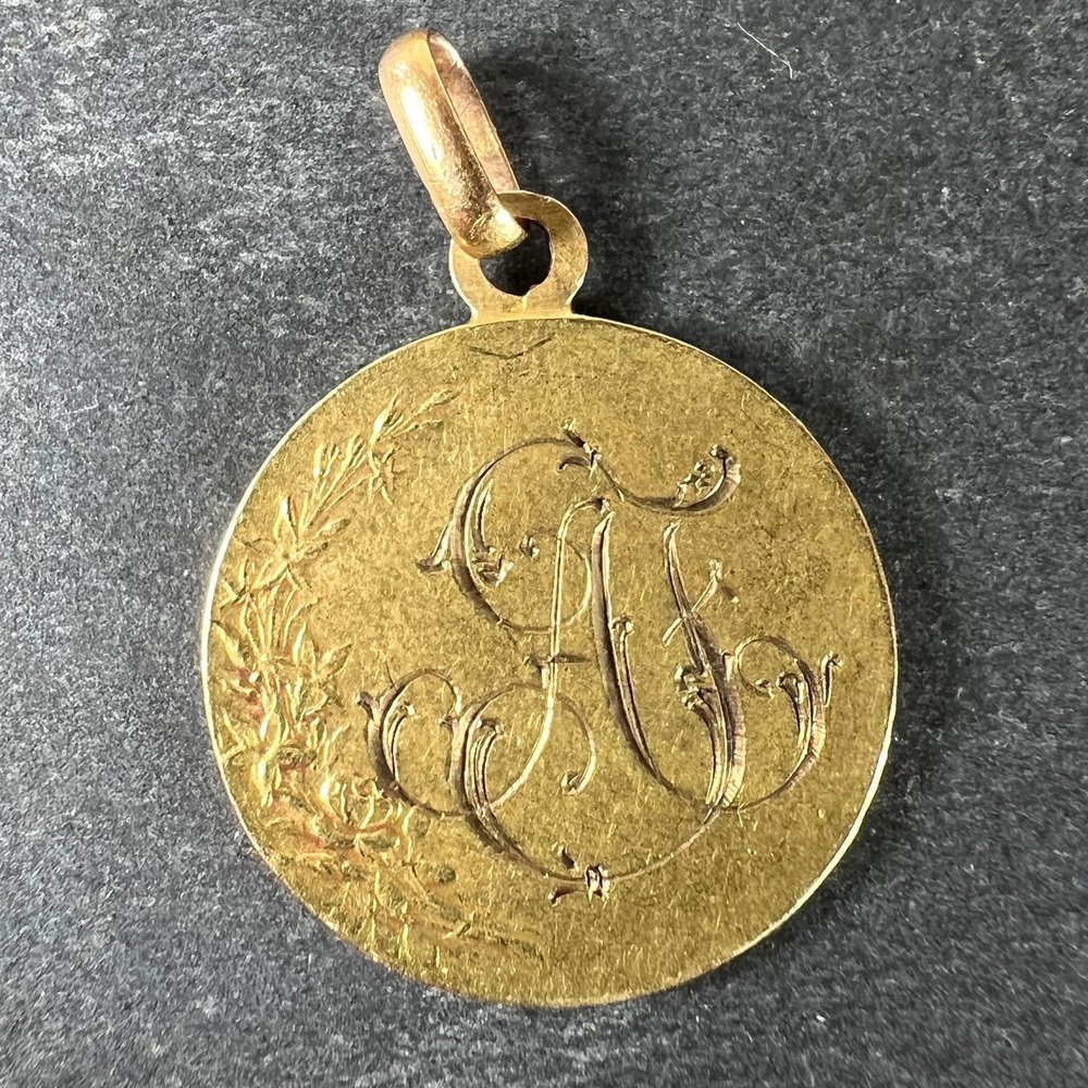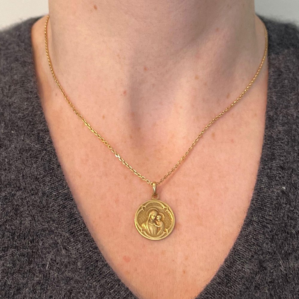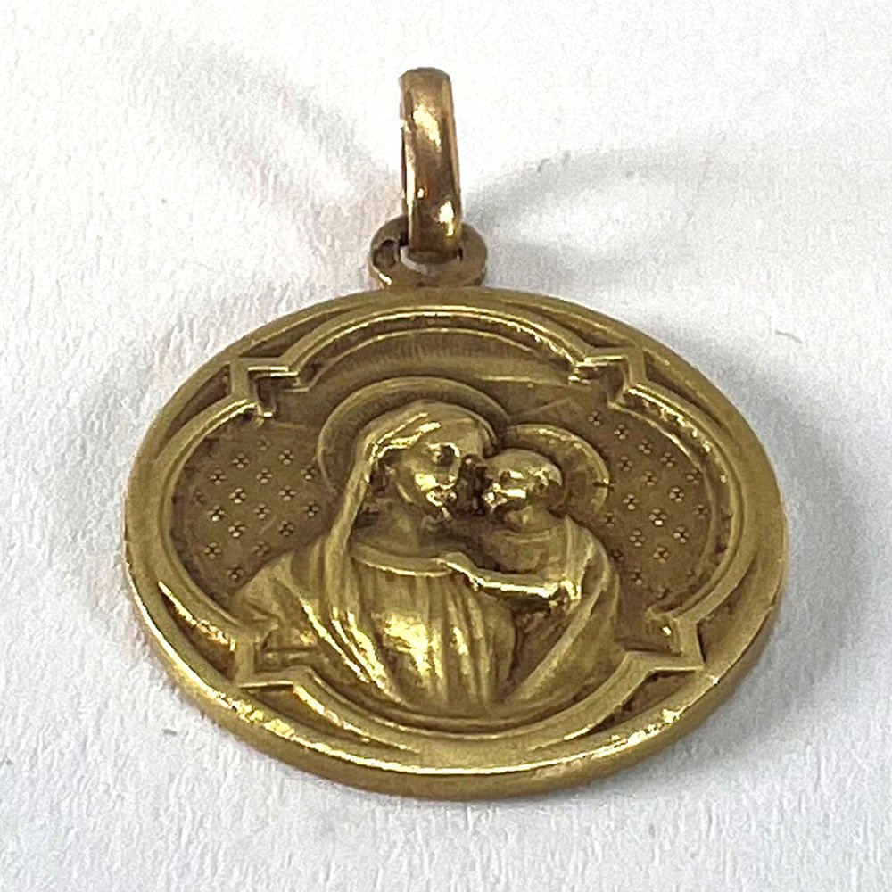 Antike französische Religiöse Medaillen-Anhänger Madonna mit Kind aus 18 Karat Gelbgold, 1890er