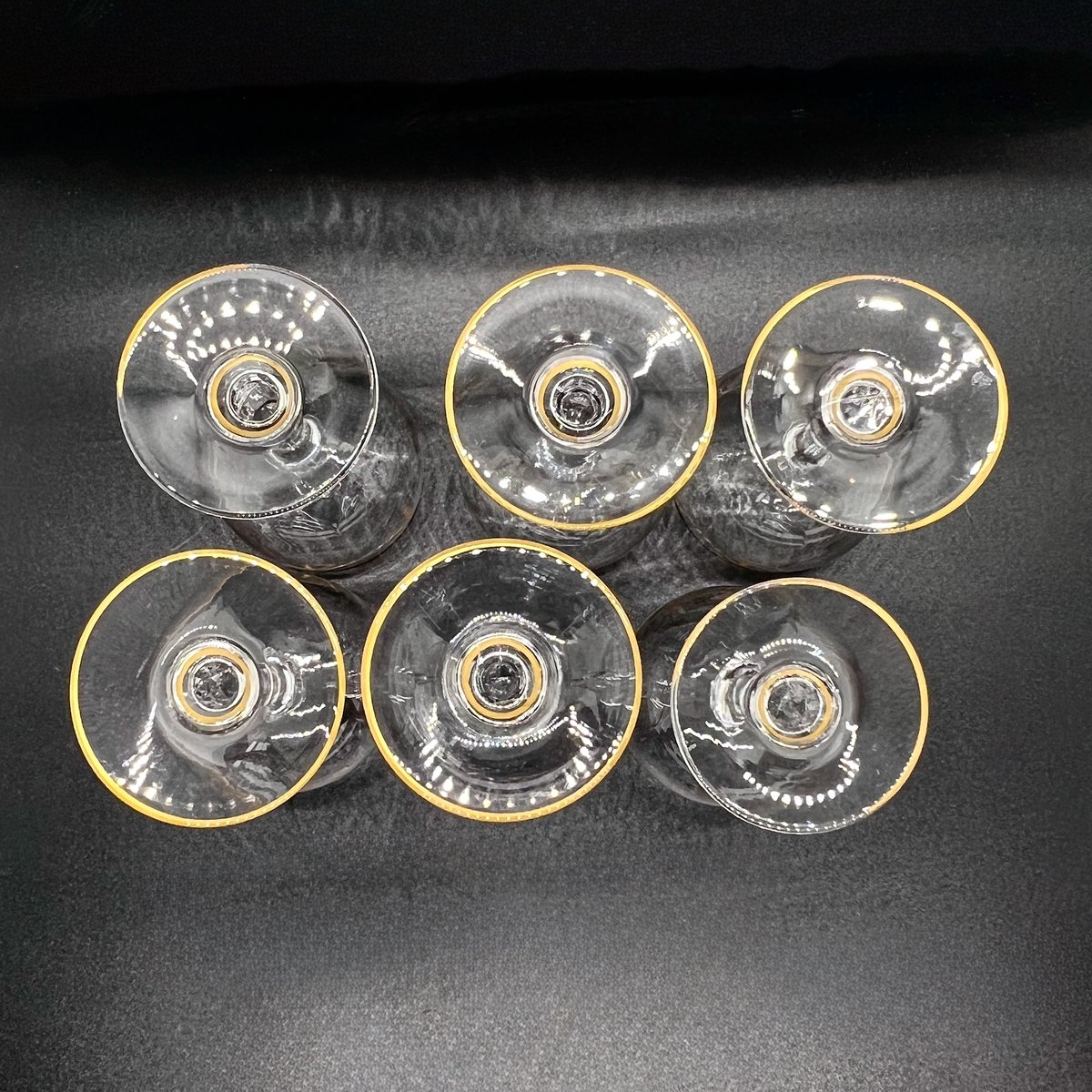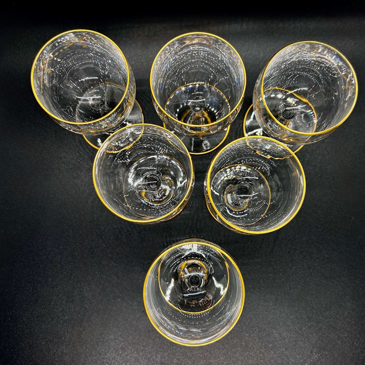 Jedes Stück zeichnet sich durch die für Baccarat typische Leichtigkeit und Klarheit aus, mit polierten Sockeln und zart drapierten Goldfäden am Rand. Eine passende Karaffe aus Baccarat-Mousseline-Kristall und Schalen mit demselben Louis-XVI-Muster sind auch separat in unserer Kollektion erhältlich.