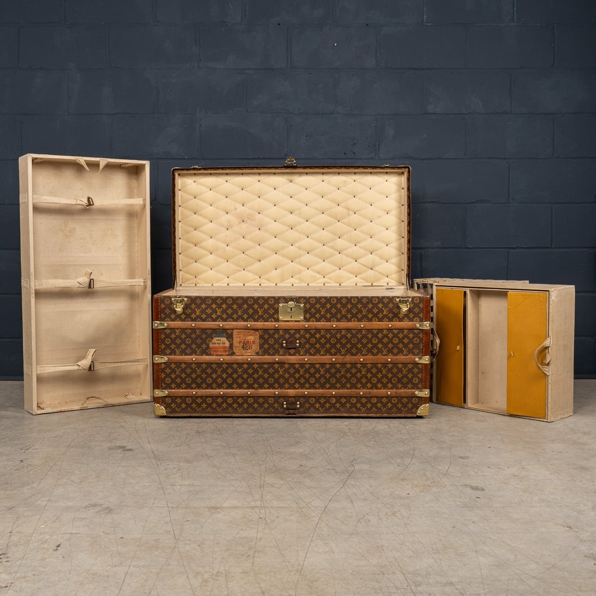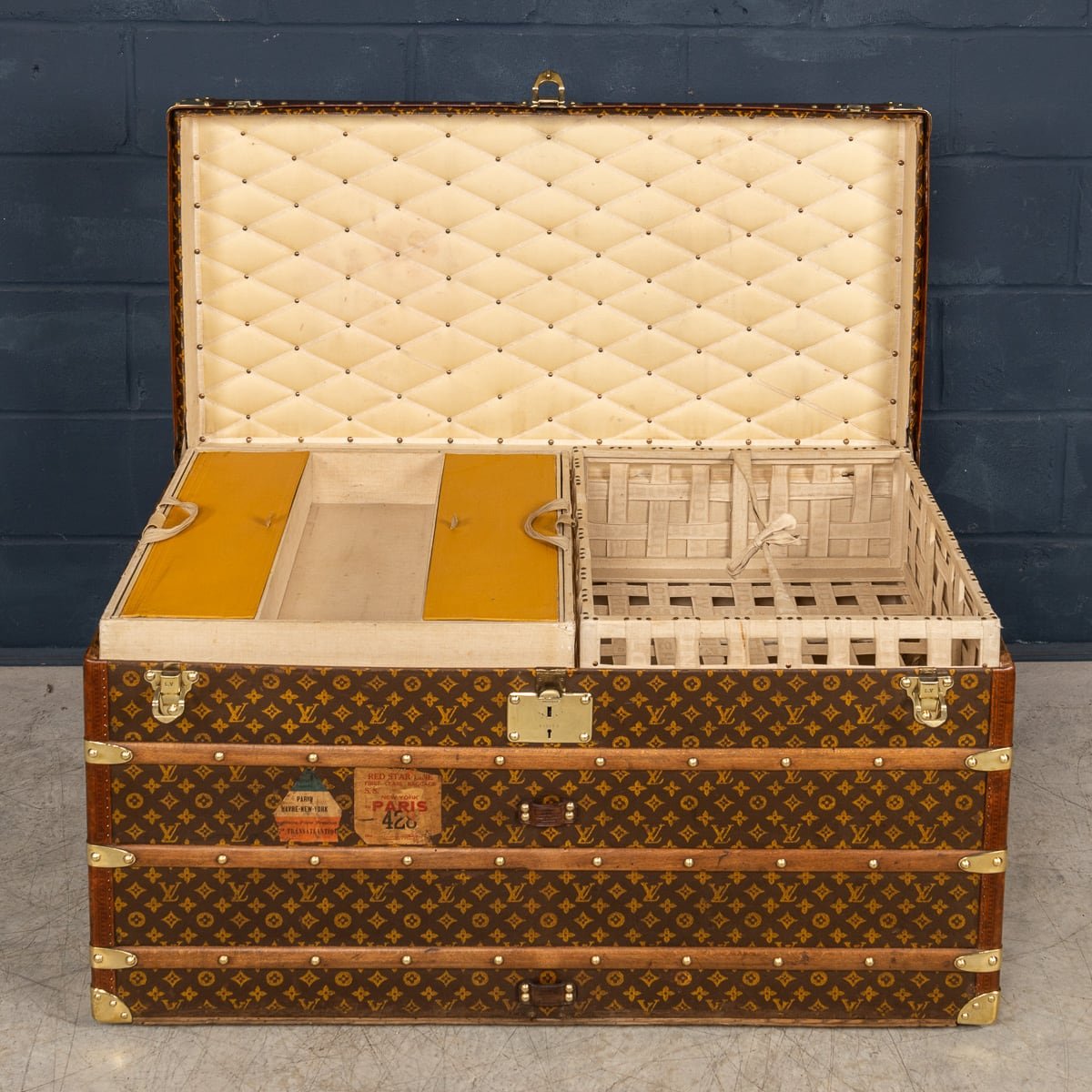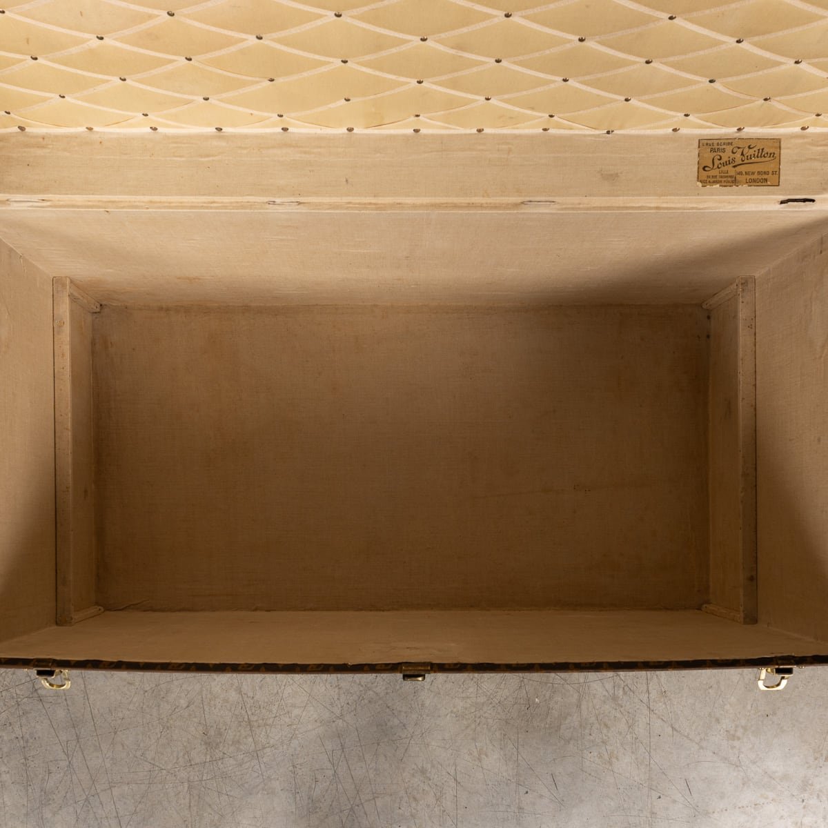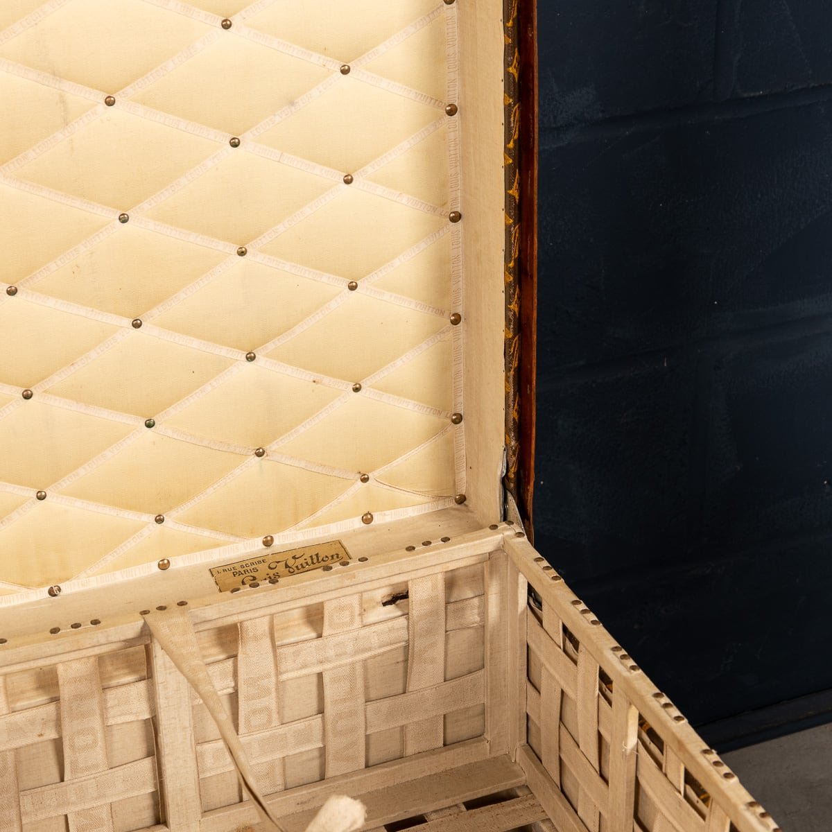 1858 hatte Vuitton die neuartige Idee, einen Koffer mit flachem Deckel zu entwerfen - im Gegensatz zu den in jener Zeit beliebten Koffern mit gewölbten Deckeln - in grauem Trianon-Stoff. Das Ergebnis war ein leichter, luftdichter und stapelbarer Koffer. Es wird spekuliert, dass Vuitton seine Inspiration von H.J. Caves flachem Osilite Koffer gezogen hat. Die Koffer Vuittons jedoch waren dafür entworfen, Kleidung auf langen Seereisen sauber und organisiert zu verstauen und beinhalteten eine Reihe an maßgefertigten Schubladen und geteilten Fächern. Mit der wachsenden Nachfrage nach Vuittons Koffern wuchs auch seine Firma. 1858 zog die Werkstatt nach Asnières, wo sie auch heute noch sitzt.