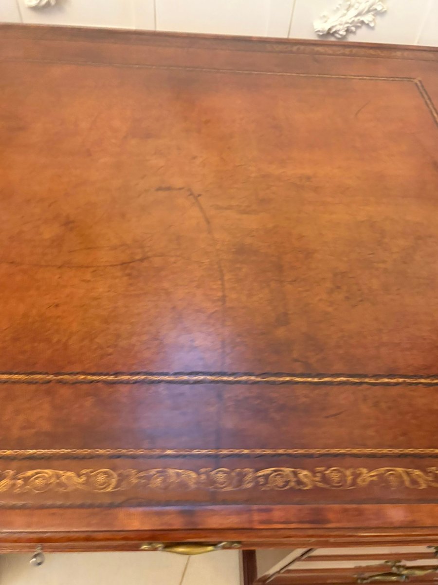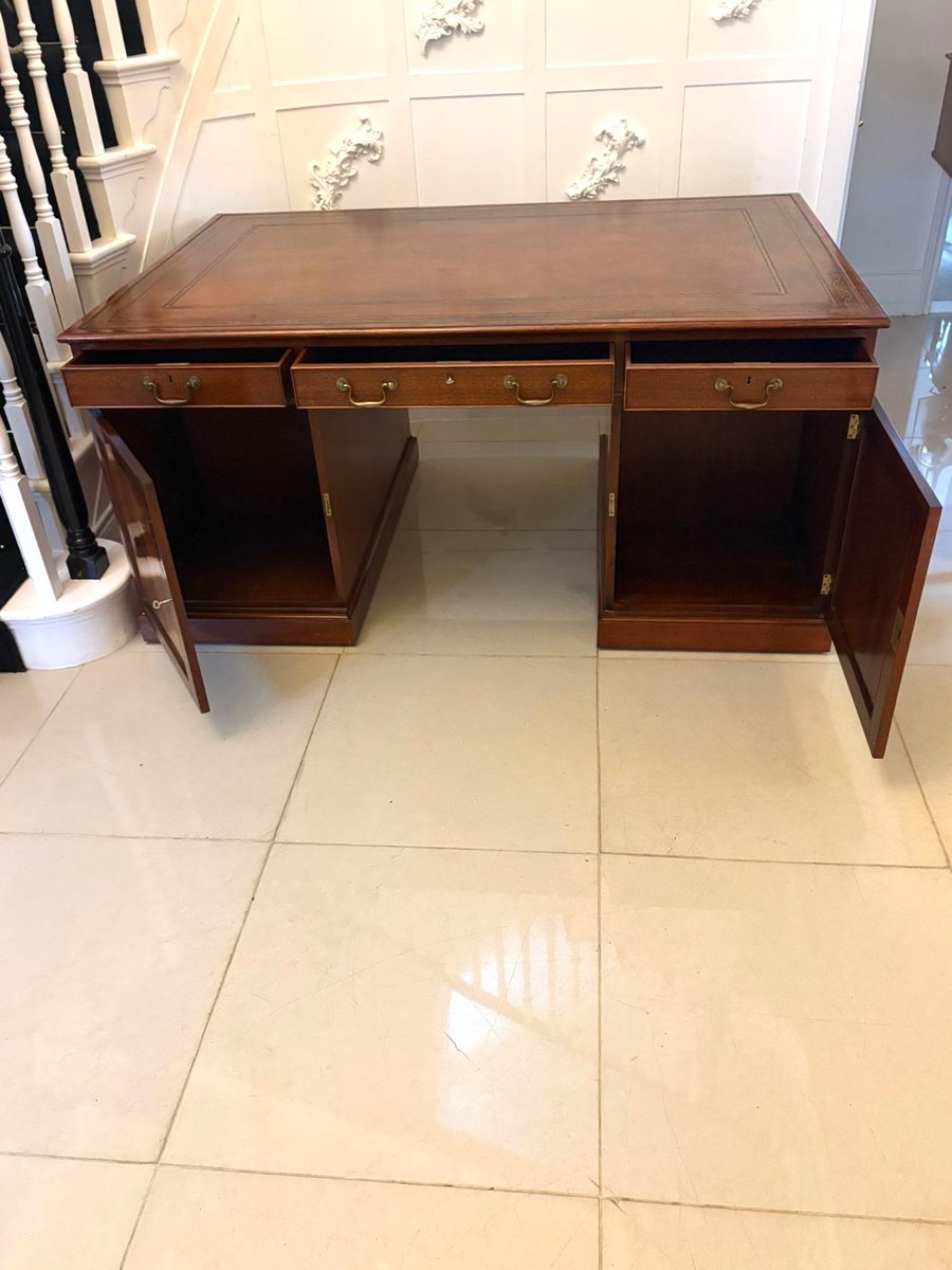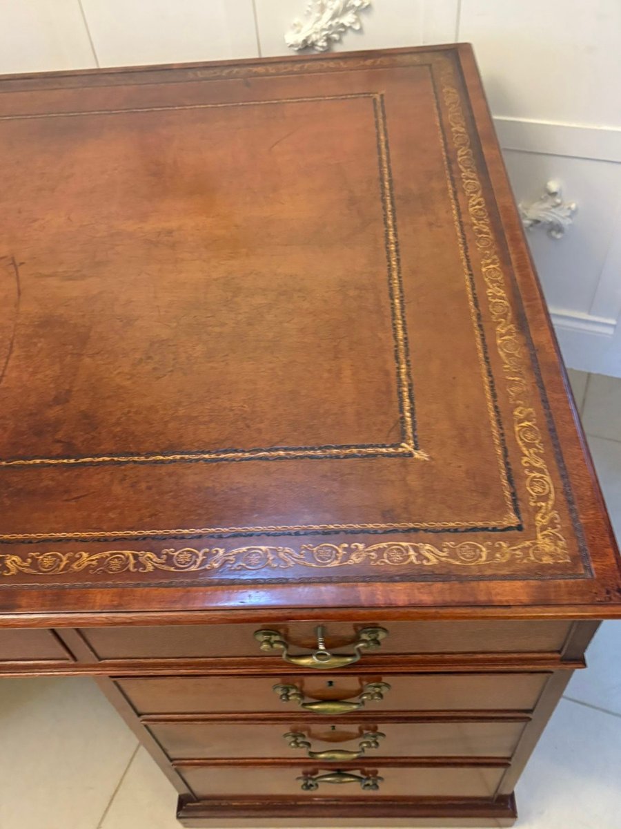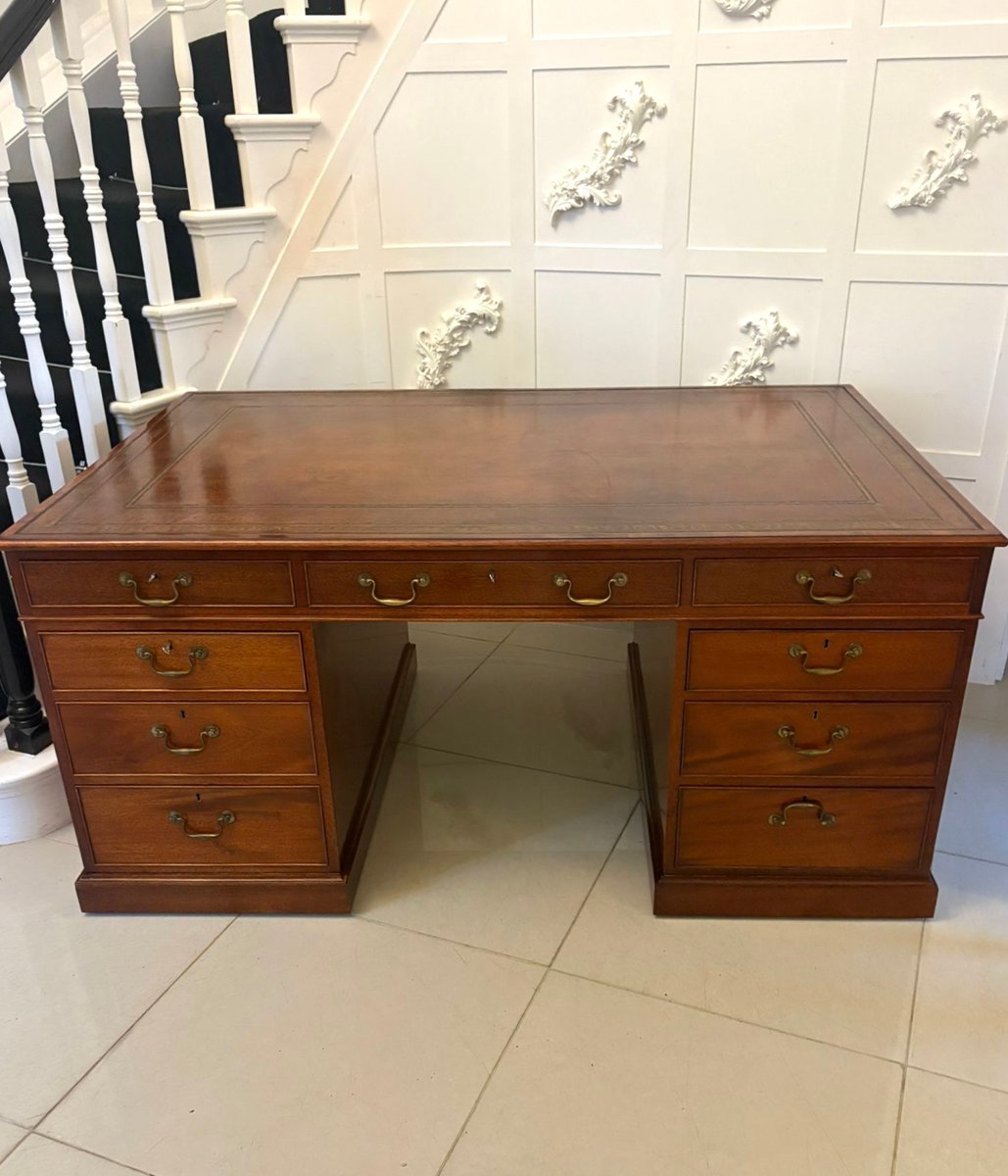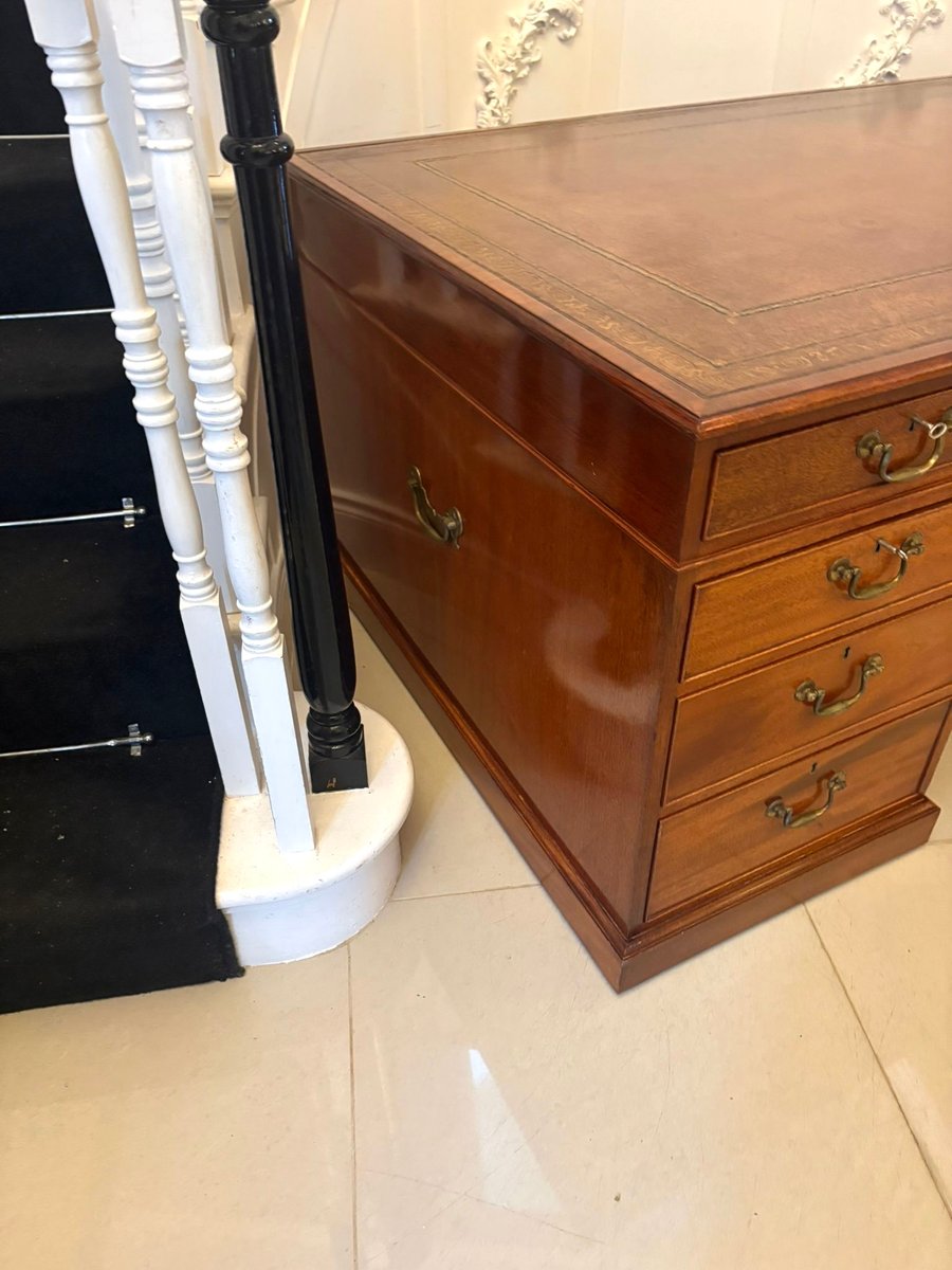 Displaying the restrained elegance typical of the Edwardian period, this desk combines excellent quality craftsmanship with timeless practicality making it an ideal centrepiece for a study, library, or executive office.