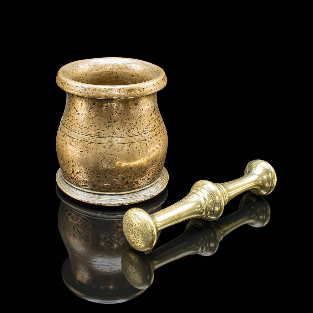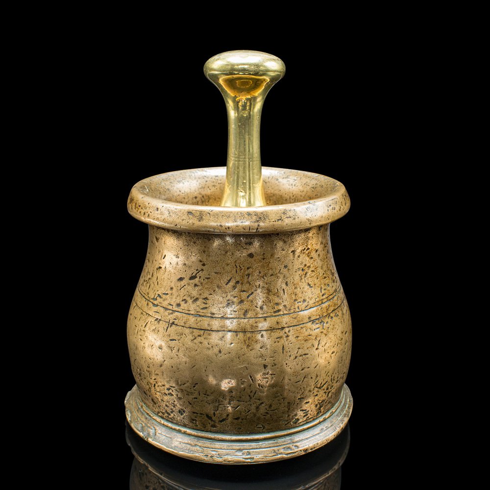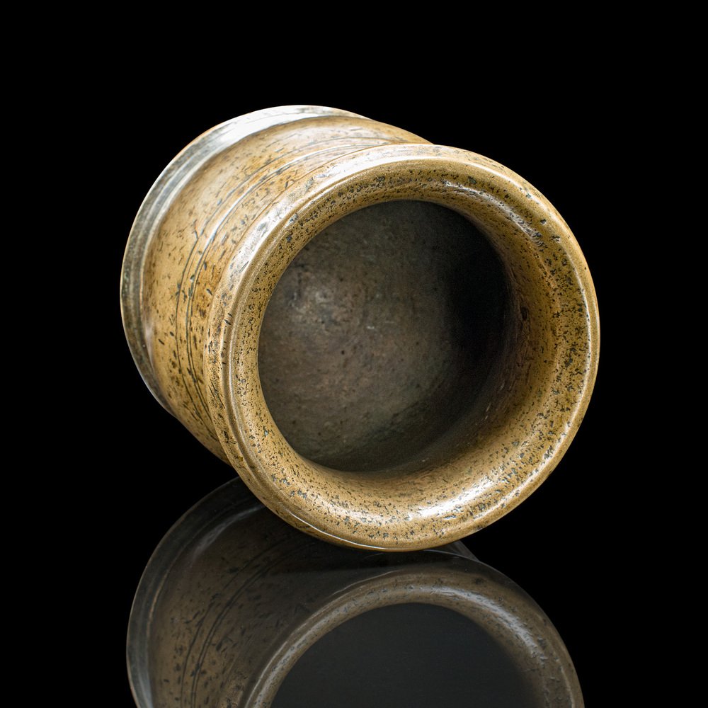 This antique bronze mortar & pestle is a remarkable survivor, combining Carolean heritage with Victorian practicality, and remains a fine addition to any apothecary collection, country kitchen or period interior.