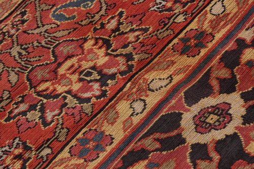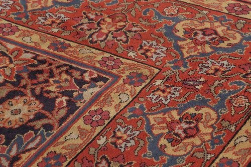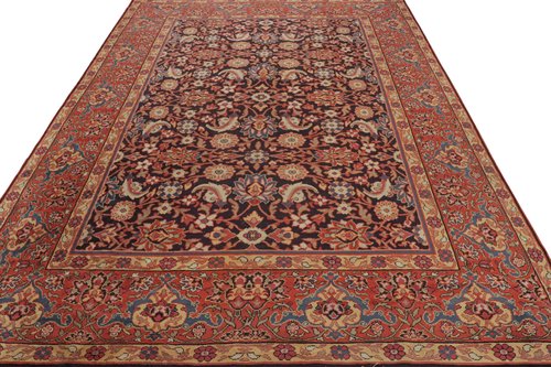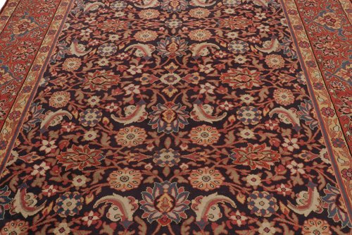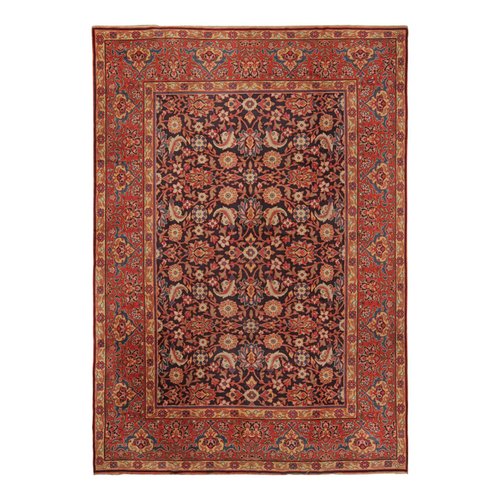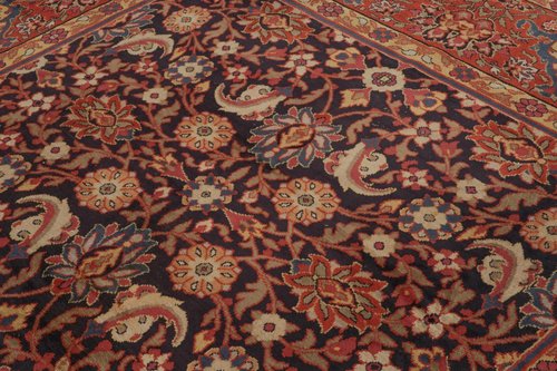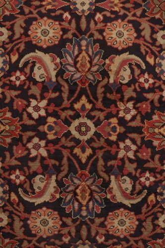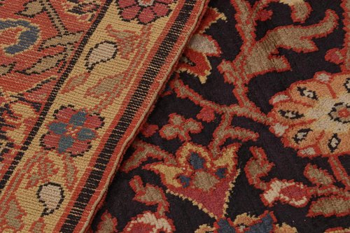 Antiker europäischer Teppich in Schwarz und Rot mit Blumenmuster