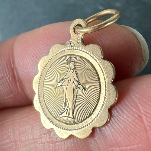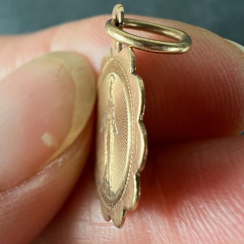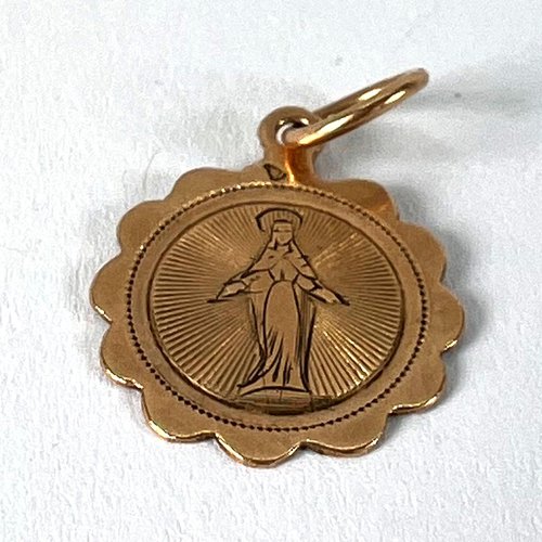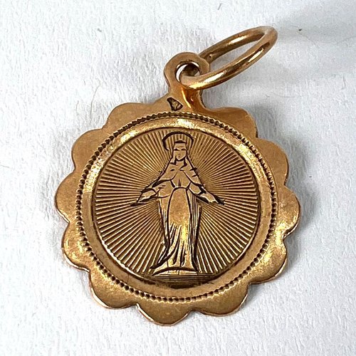 Antiker Französischer Jungfrau Maria Anhänger aus 18 Karat Roségold, 1890er