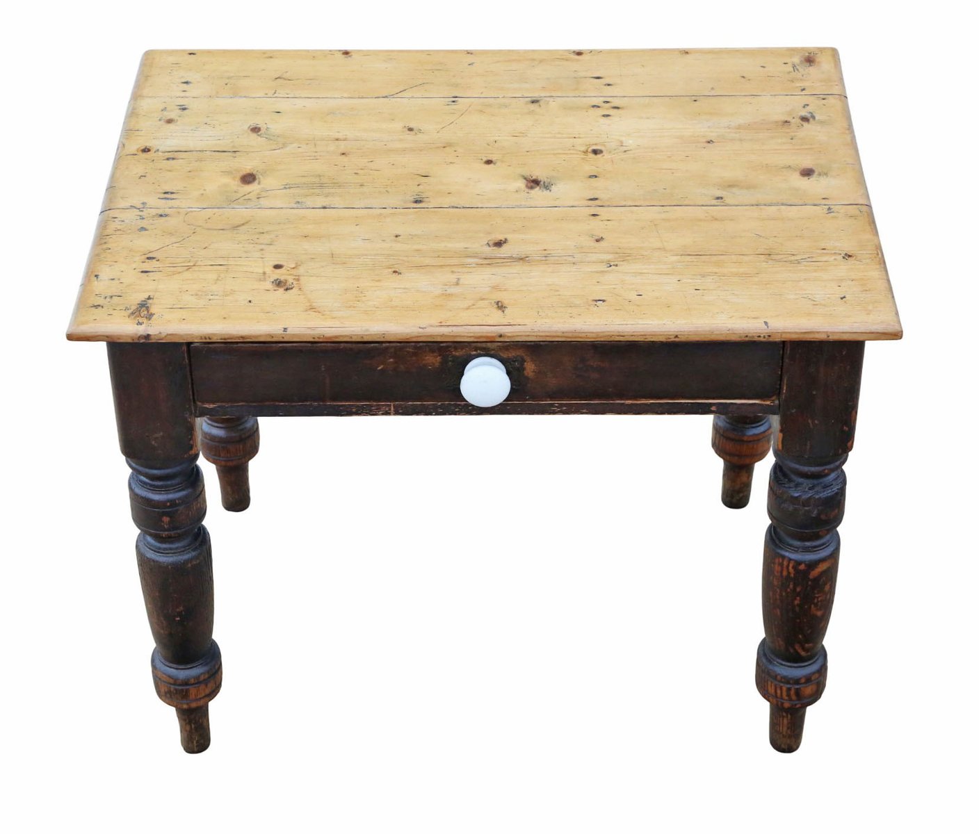 Ein charmanter Küchen- oder Schreibtisch aus Kiefernholz aus dem 19. Jahrhundert mit attraktivem Alter, Farbe und Patina. Dieser seltene dekorative Fund würde in der richtigen Umgebung ein wunderbares Ausstellungsstück abgeben. Der Sockel ist noch original erhalten, und die Schublade hat einen weißen Keramikknauf mit ansprechenden Altersrissen auf der Oberfläche.