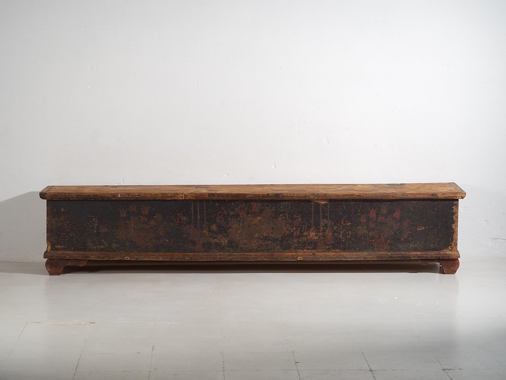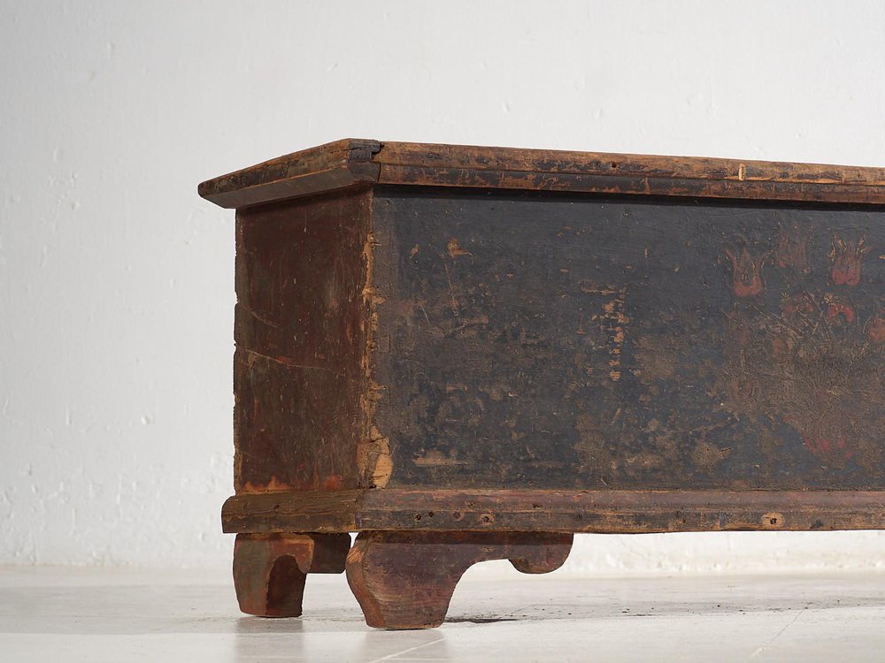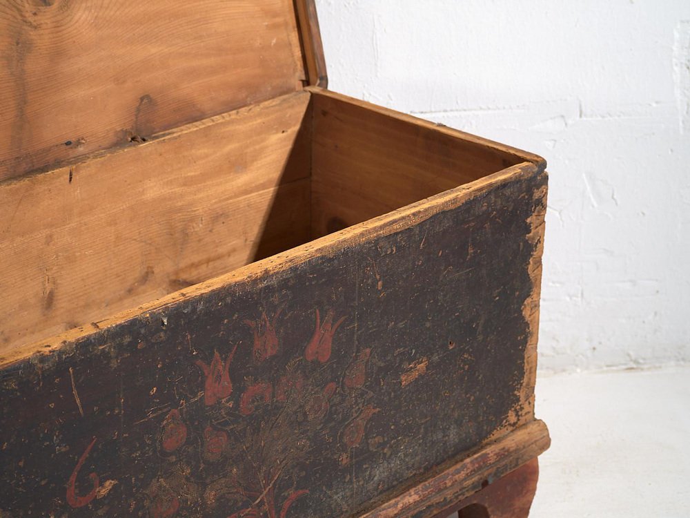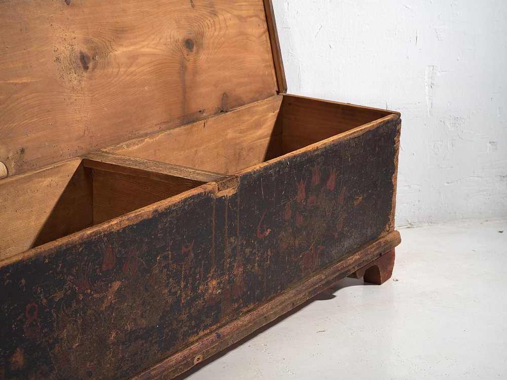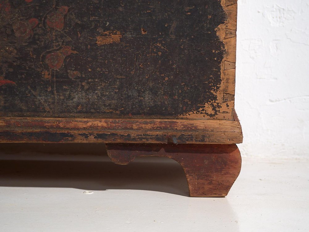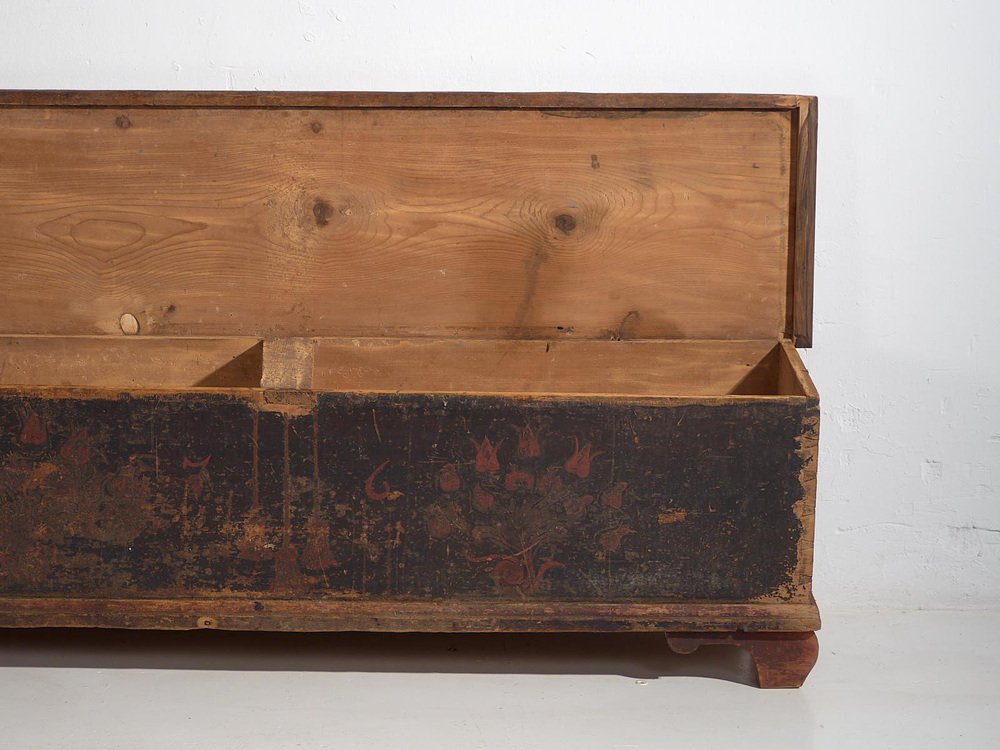 Antiker langer Koffer mit bemalten Blumenmotiven, 1876