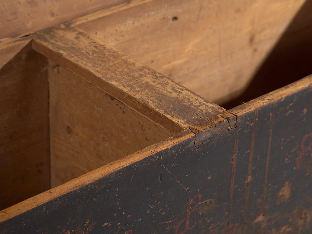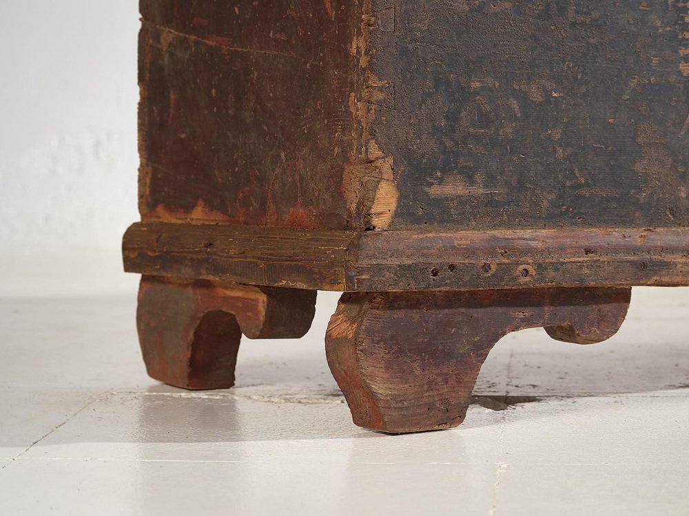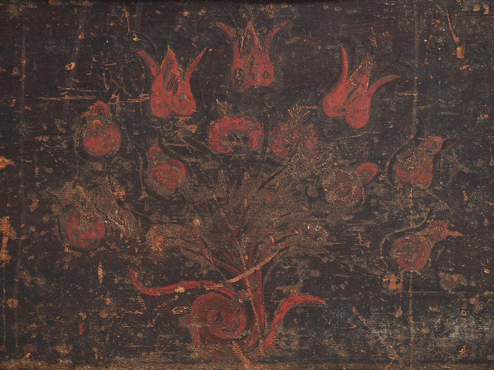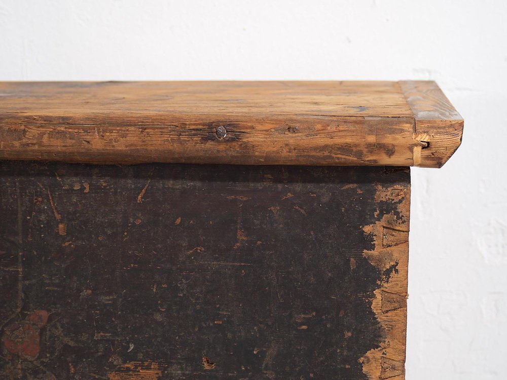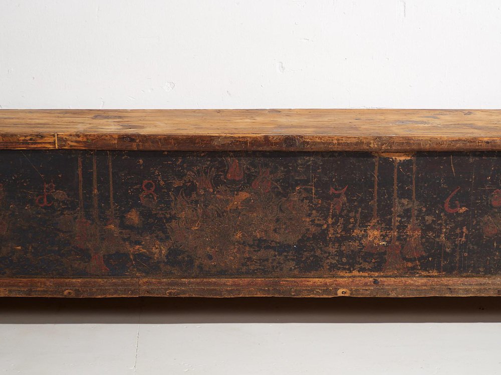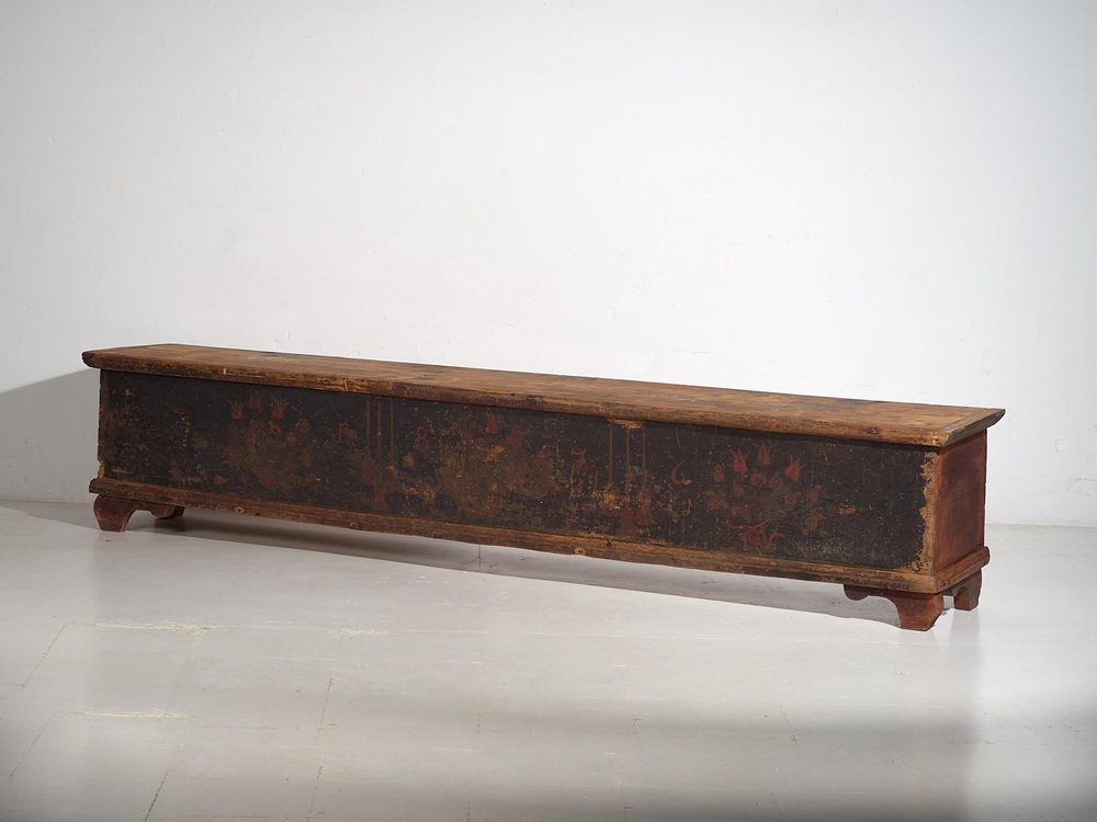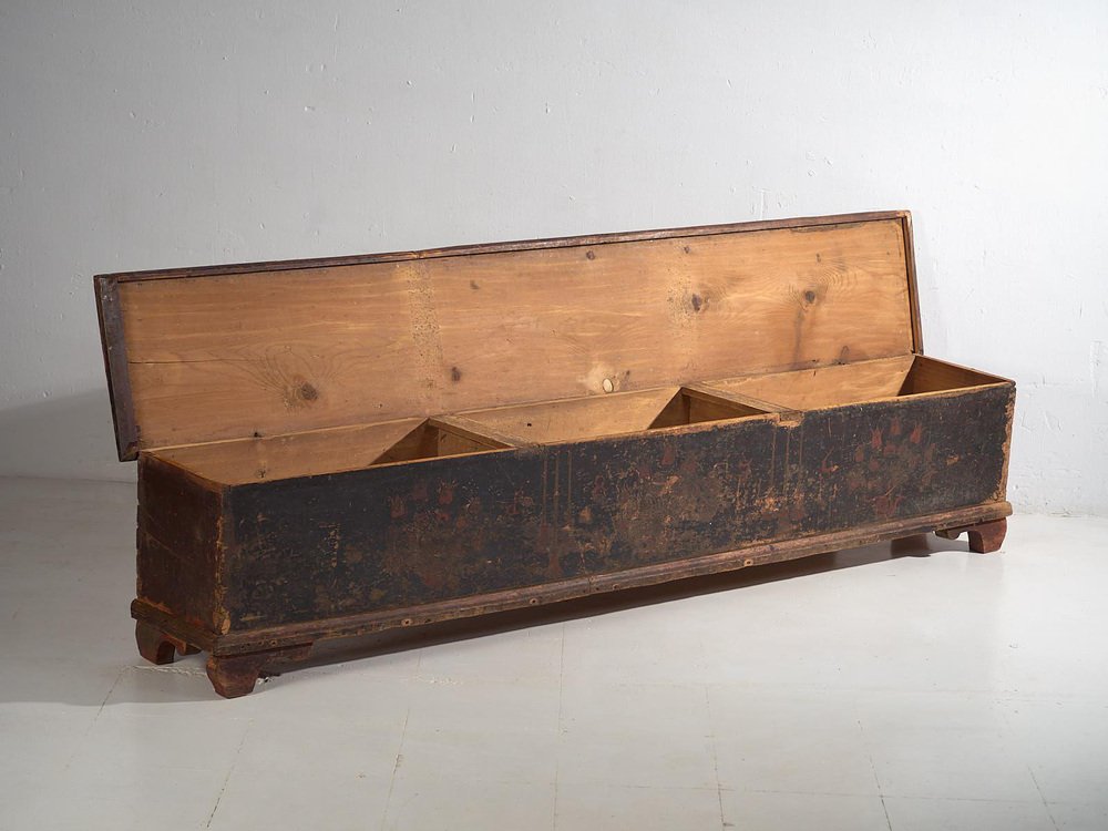 Antiker langer Koffer mit bemalten Blumenmotiven, 1876