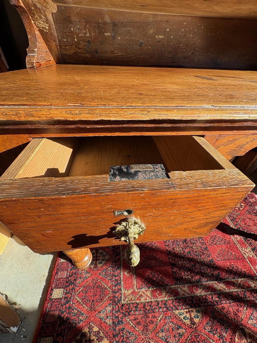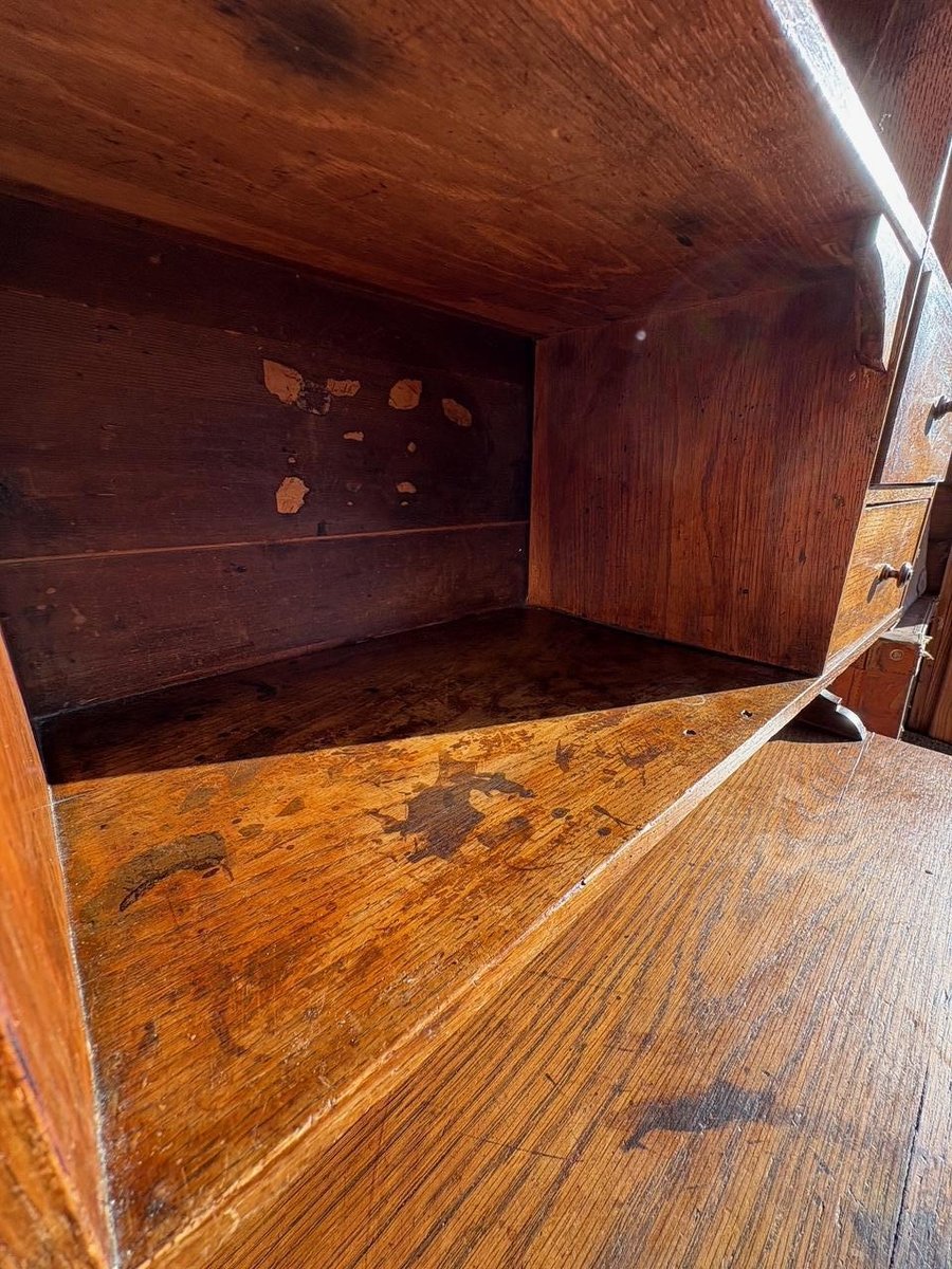 Jahrhundert. Es ist vollständig aus Massivholz gefertigt und verfügt noch über das originale, herausnehmbare obere Sortiermodul mit voll funktionsfähigen vertikalen Fächern und Schubladen.