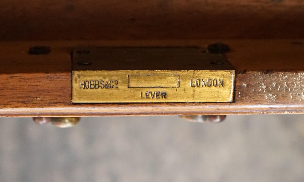 Antiques of London Ein wunderschön restaurierter antiker Schreibtisch mit zwei Sockeln von Hobbs & Co. aus London, einer Firma, die für ihre hervorragende viktorianische Handwerkskunst und raffinierte Tischlerei bekannt ist. Dieser beeindruckende Schreibtisch zeigt eine klassische, ausgewogene Silhouette mit fein konstruierten Schubladen, traditionellen Leisten und der robusten Präsenz, die man von einem angesehenen Londoner Hersteller dieser Zeit erwartet. Die Restaurierung wurde mit viel Feingefühl durchgeführt, um den Charakter des Holzes zu bewahren und seine natürliche Wärme und Tiefe zu betonen. Das herausragende Merkmal dieses Stücks ist seine handgefärbte rote Lederplatte, eine luxuriöse und handwerkliche Verarbeitung, die den gesamten Schreibtisch aufwertet. Das Leder wurde von Hand gefärbt und veredelt, so dass reiche Schichten karminroter Töne entstehen, die sich subtil über die Oberfläche verteilen. Dieses Verfahren lässt die natürliche Struktur und Maserung der Haut durchscheinen, was zu einer Oberfläche mit Bewegung, Tiefe und einer einzigartig eleganten Patina führt. Die Farbe wird durch die traditionellen Werkzeuge am Rand noch verstärkt und verleiht dem Leder Raffinesse und ein Gefühl von zeitloser Handwerkskunst. Handgefärbtes Leder wird in einem langsamen, bewussten handwerklichen Verfahren aus hochwertigen pflanzlich gegerbten Häuten hergestellt. Das Leder wird sorgfältig vorbereitet, dann wird die Farbe in weichen, aufbauenden Schichten mit Tüchern und Handmischtechniken aufgetragen. Mit jeder Schicht, die in die Haut eingearbeitet wird, nimmt die Tiefe des Farbtons zu, wodurch ein Finish entsteht, das sich organisch, warm und charaktervoll anfühlt. Die abschließende Versiegelung mit Wachsen und Ölen bereichert den Glanz, schützt die Oberfläche und sorgt dafür, dass das Leder über Jahrzehnte hinweg schön altert. Dieser Schreibtisch von Hobbs & Co. ist ein besonderes Stück. Funktional, edel und sorgfältig verarbeitet. Er eignet sich perfekt für ein Arbeitszimmer, ein Büro oder einen kreativen Raum und vereint Erbe, Kunstfertigkeit und eine kühne, anspruchsvolle Ästhetik. Bitte sehen Sie sich die Bilder vor dem Kauf sorgfältig an, um den Zustand zu prüfen, da sie Teil des Artikels sind. Wenn Sie Fragen haben, senden Sie uns bitte eine Nachricht. Maße Höhe - 73 cm Breite - 140 cm Tiefe - 81 cm Knielochhöhe - 55 cm Knielochbreite Mitte - 58 cm Knielochbreite unten - 55 cm Bitte beachten Sie, dass alle Maße an der breitesten Stelle des Artikels gemessen werden. Abnutzung im Einklang mit Alter und Gebrauch.