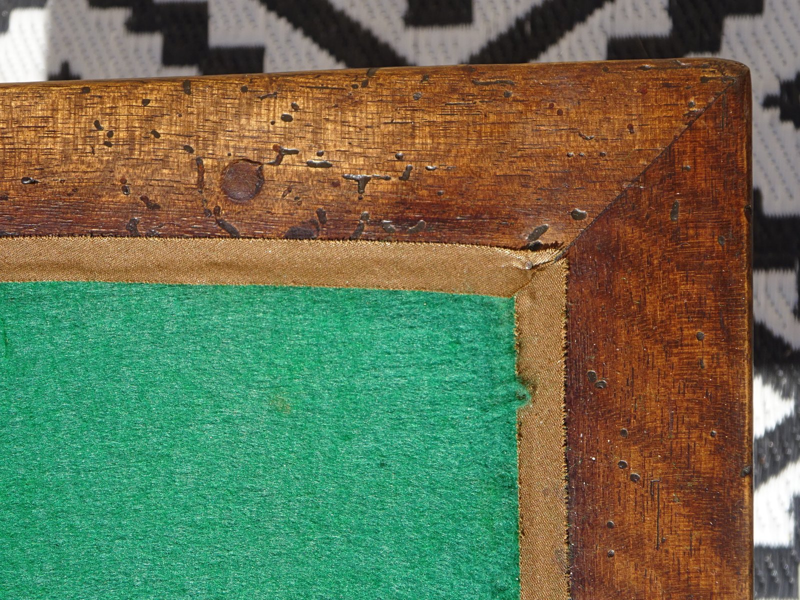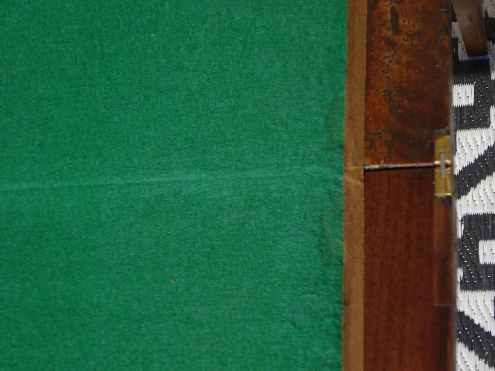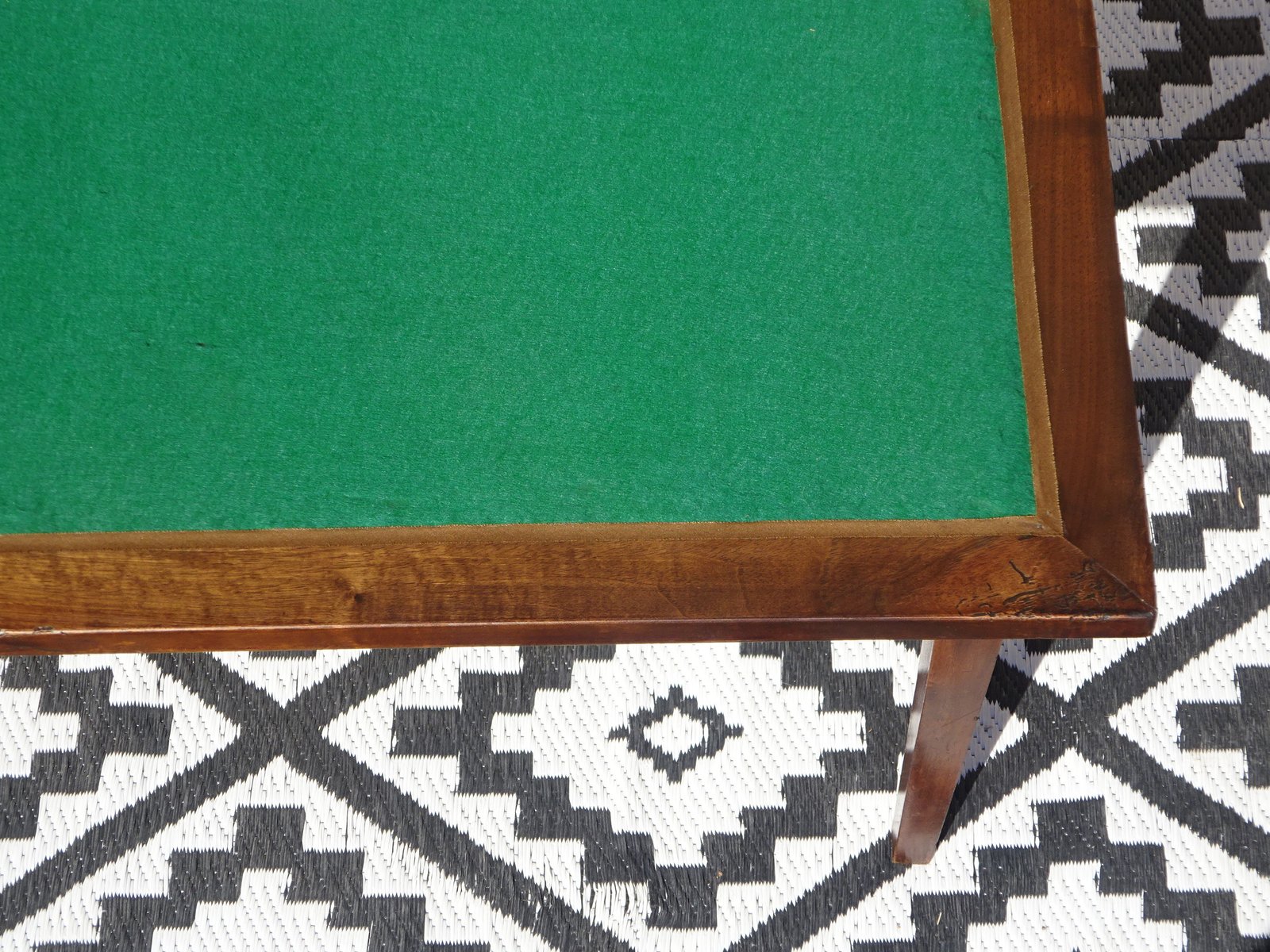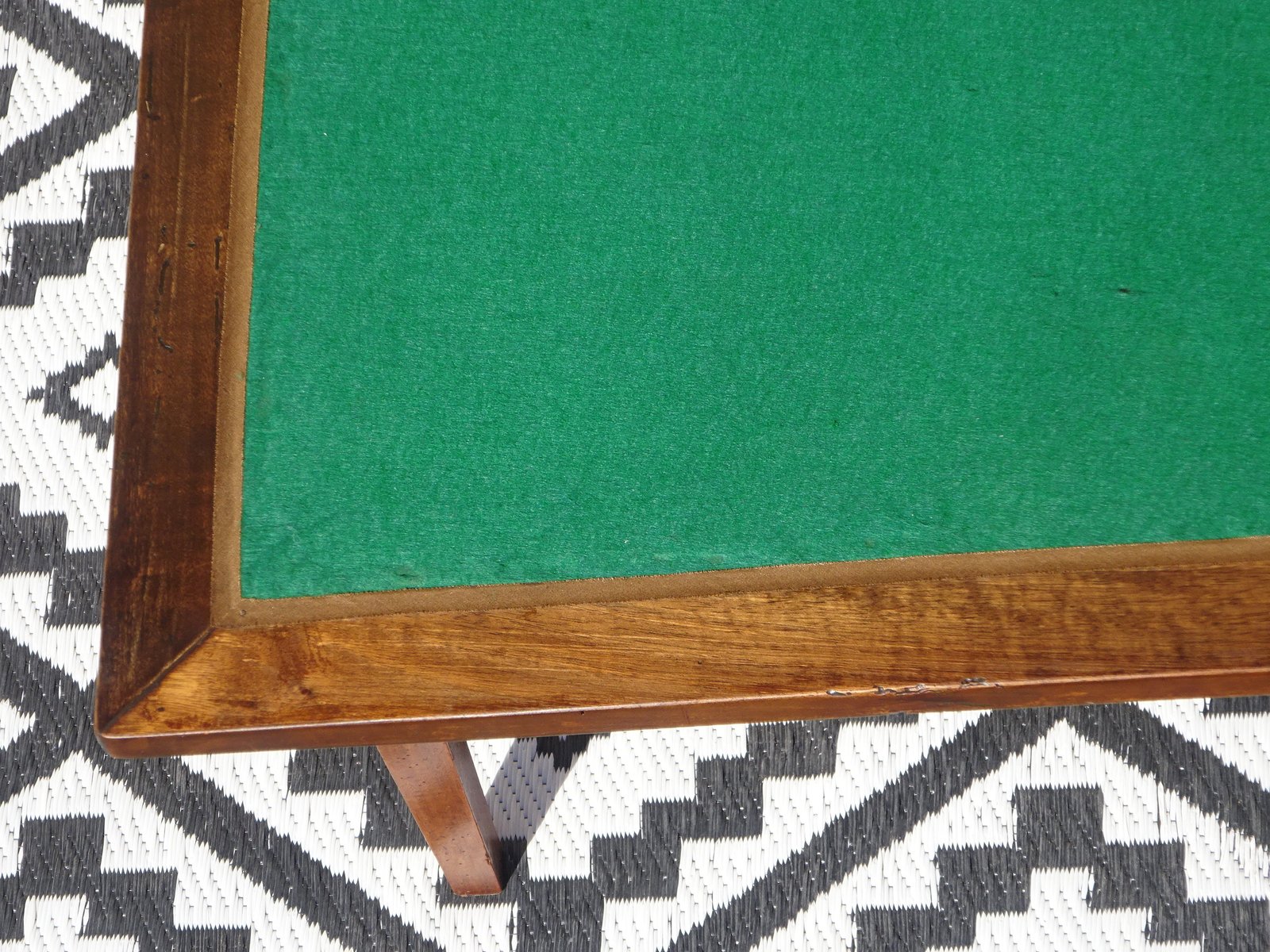 Simple console table with a folding top that opens to reveal a green playing surface. The playing surface is not original.