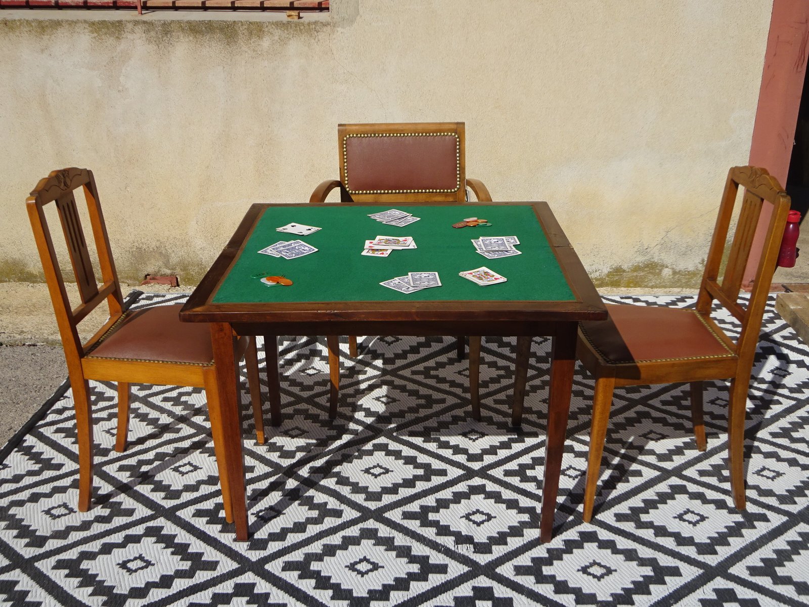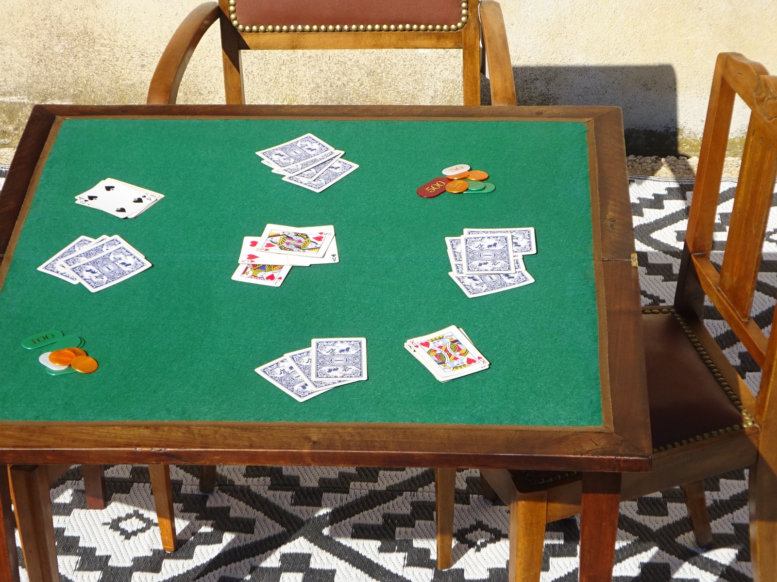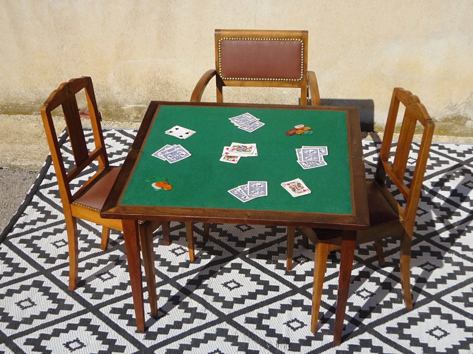 When open, the table is suitable for 2 to 4 players, for card games, dice games, and board games.