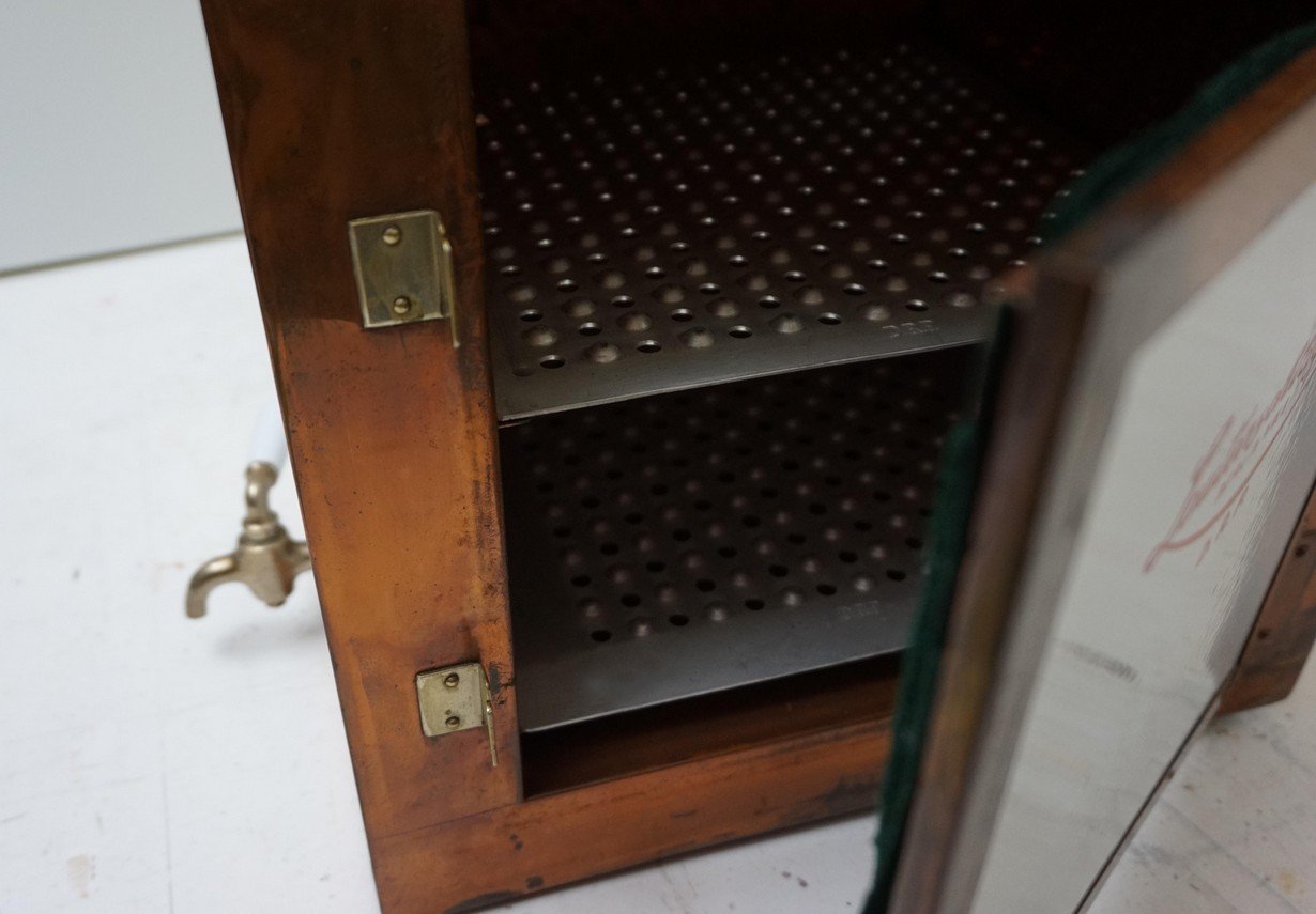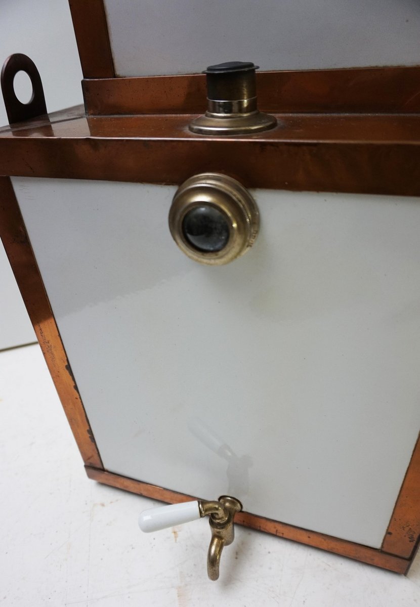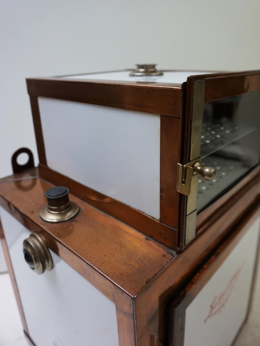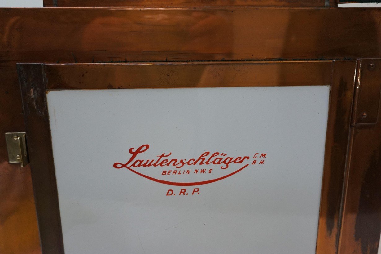 Antiker Steampunk Medizinschrank aus Kupfer & Keramik, 1890er