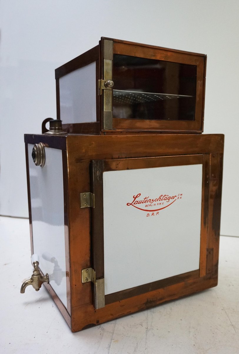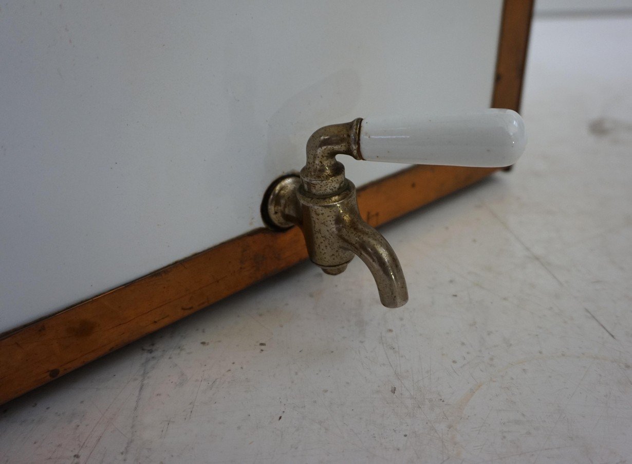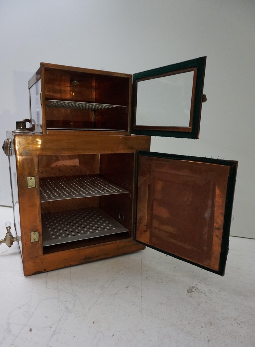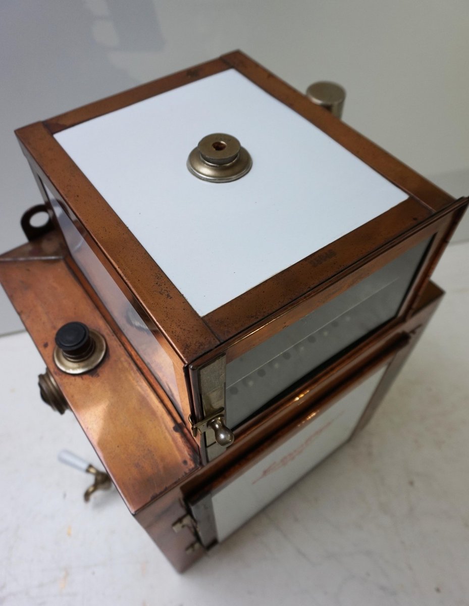 Antiker Steampunk Medizinschrank aus Kupfer & Keramik, 1890er