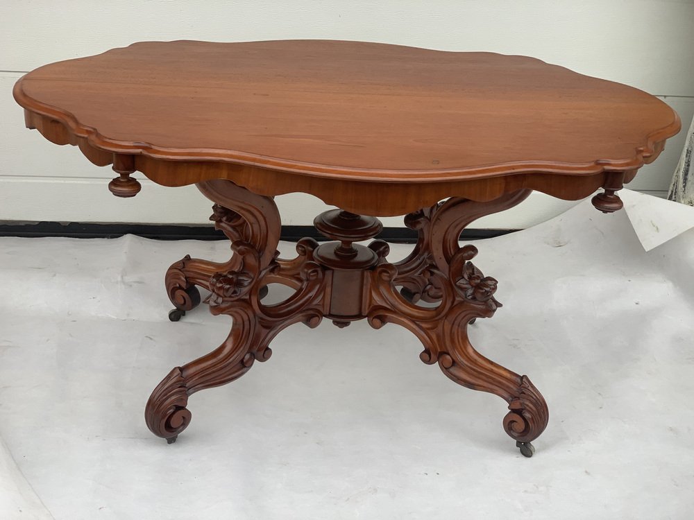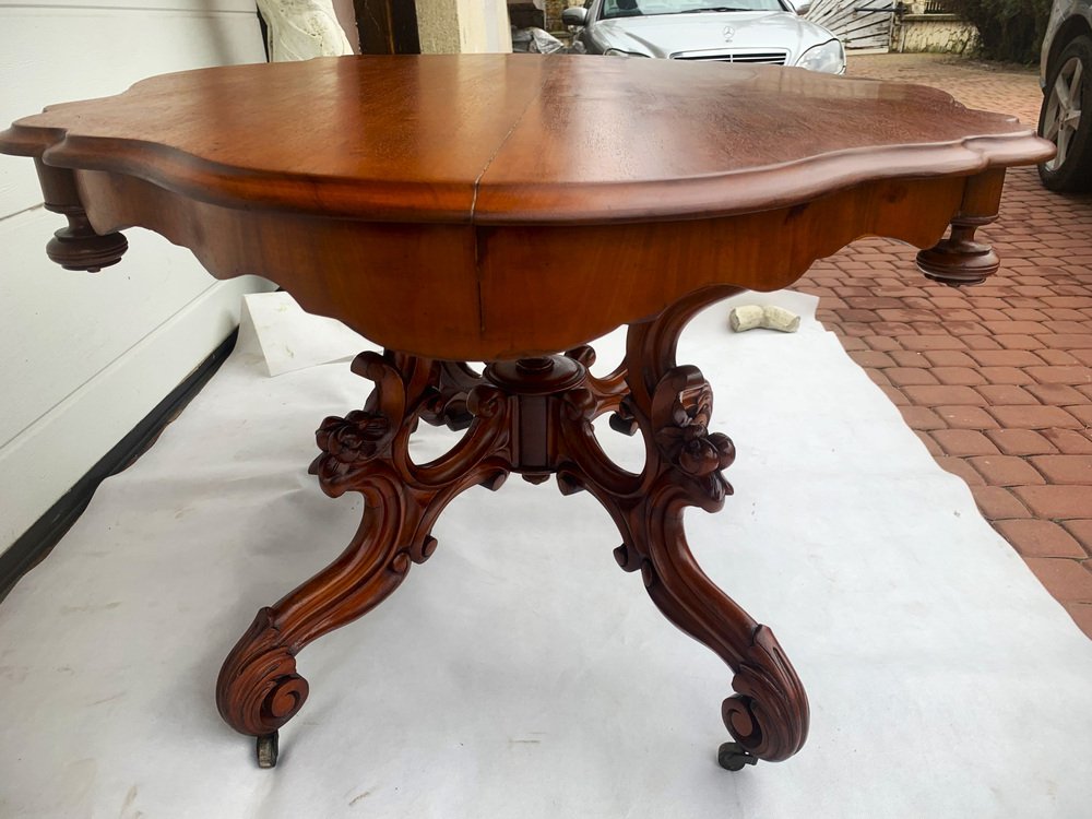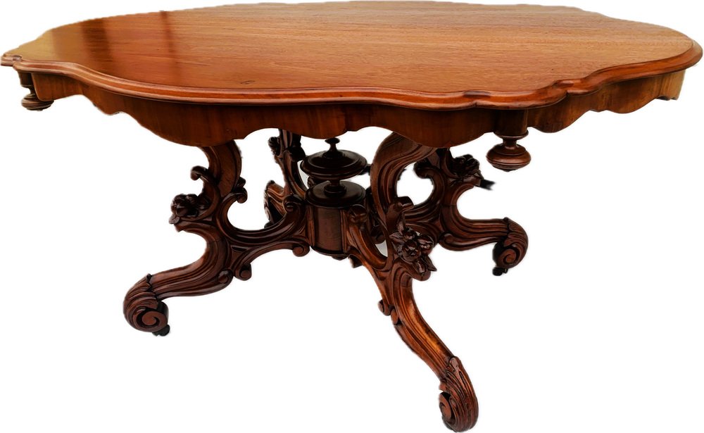 Antiker viktorianischer Esstisch aus Nussholz,1870er