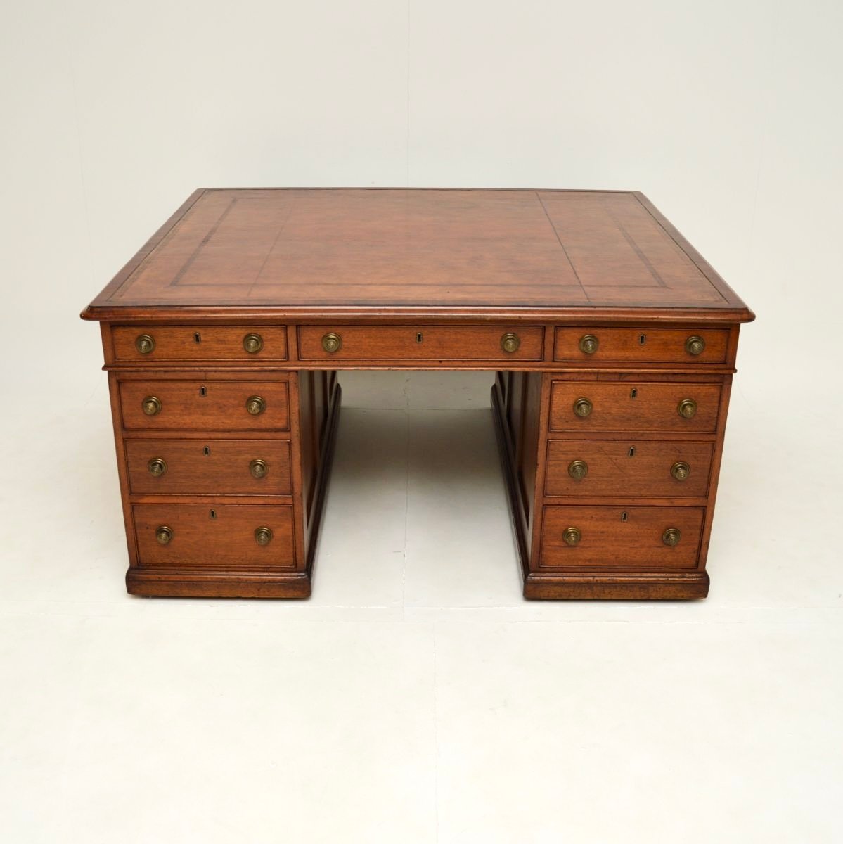 A magnificent antique Victorian leather top partners desk. This dates from around the 1840-1860 period.