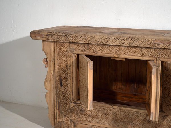 Antikes handgeschnitztes niedriges Sideboard, 1850er