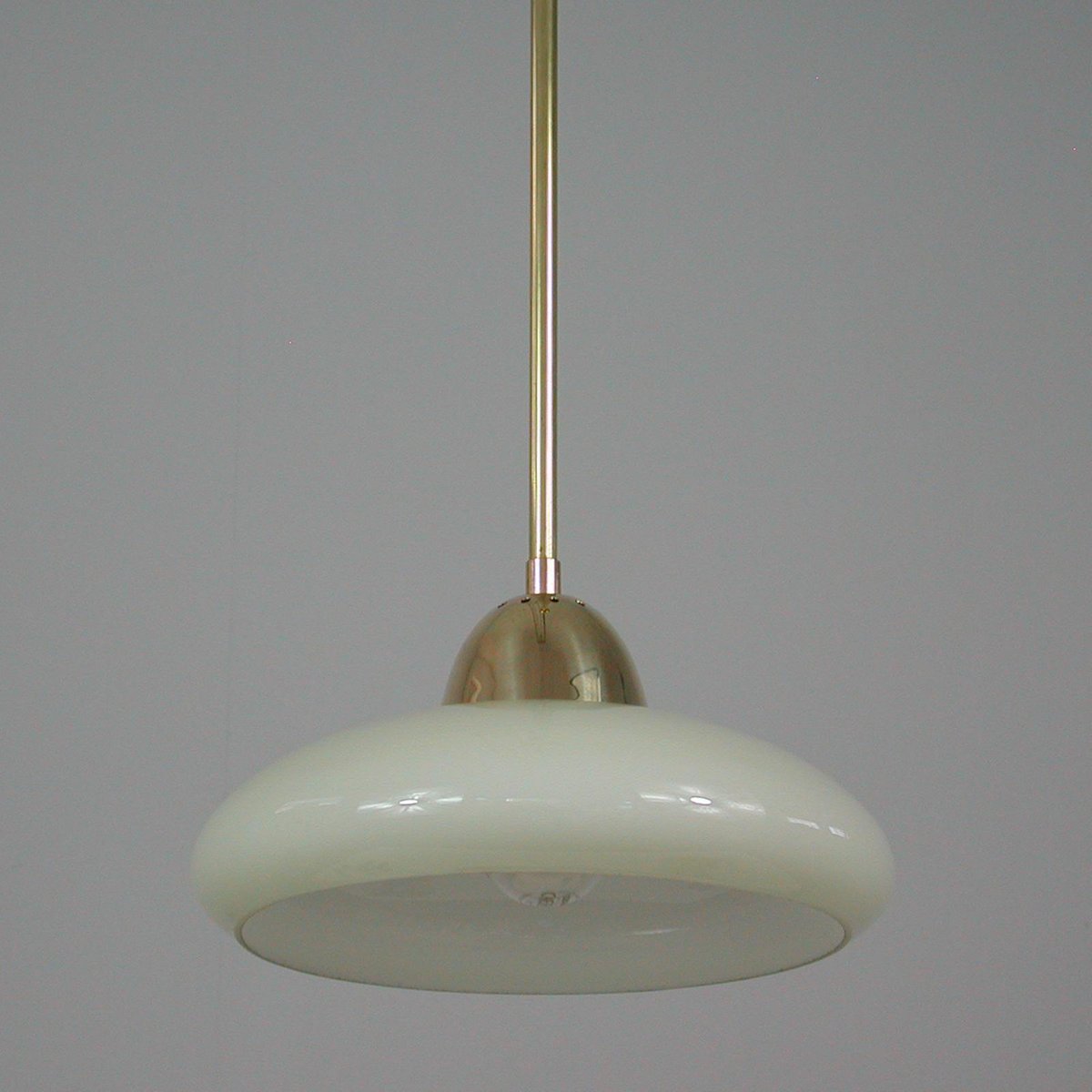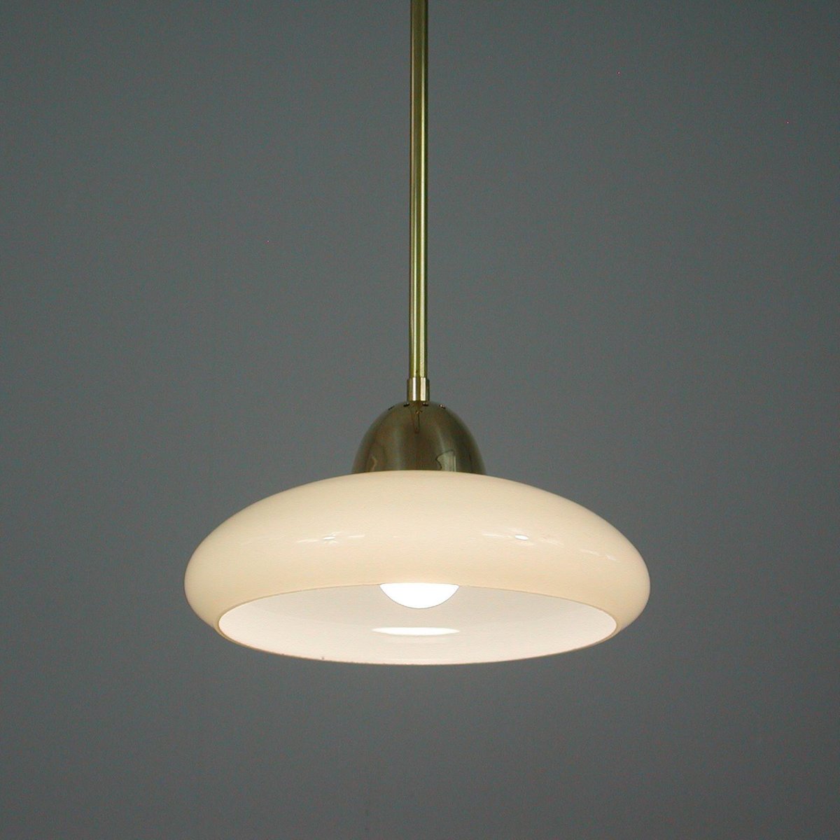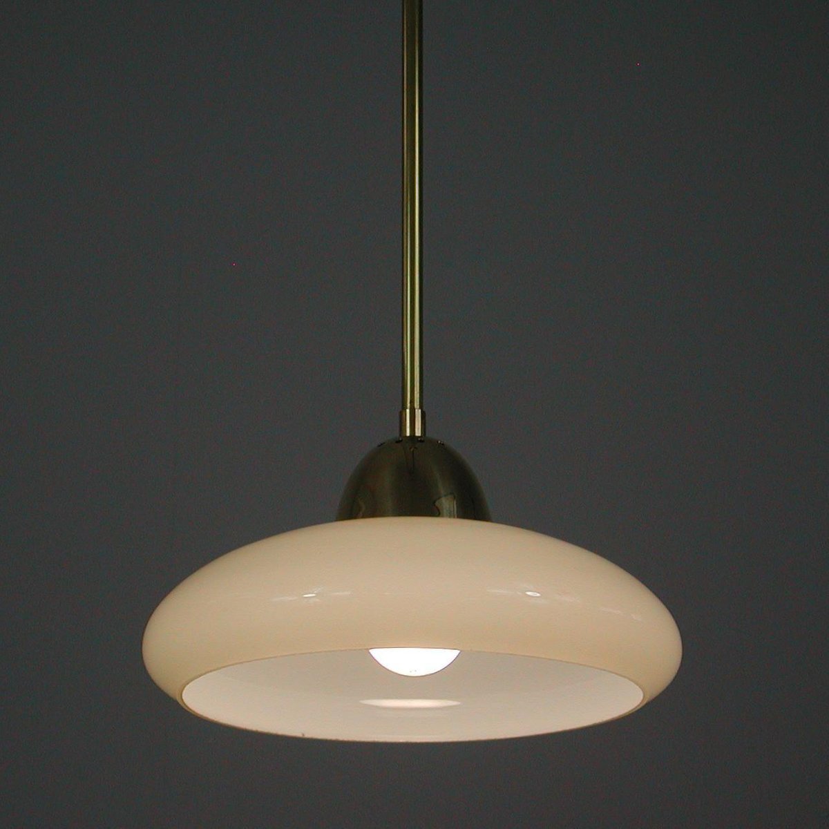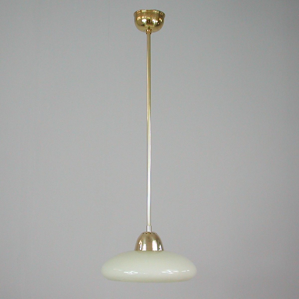 Art Deco Bauhaus Hängelampe aus Opalglas & Messing in Creme, Deutschland, 1930er
