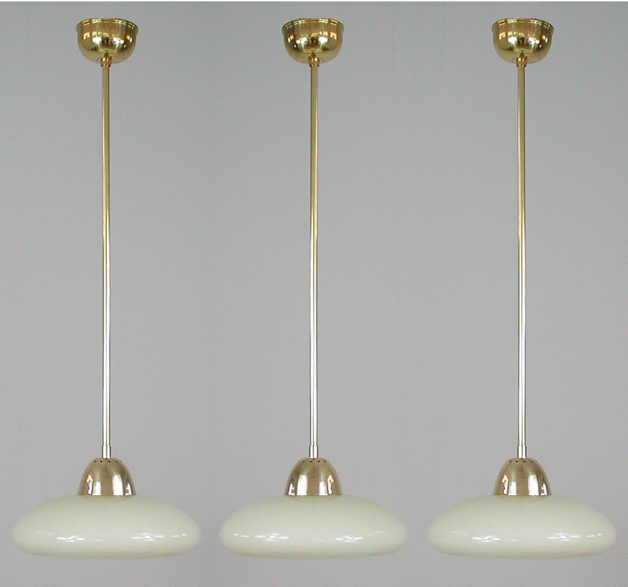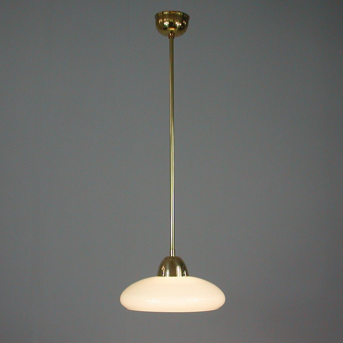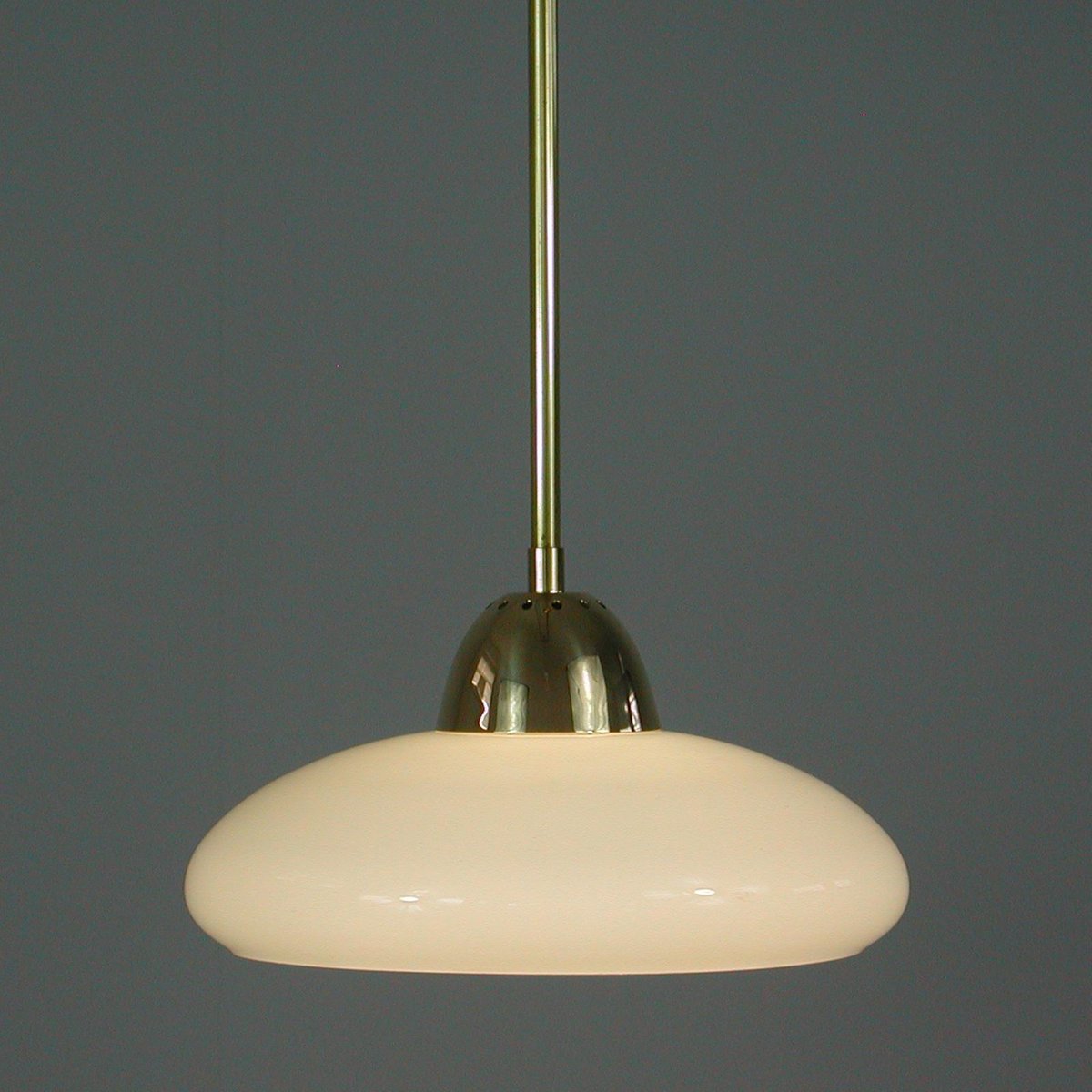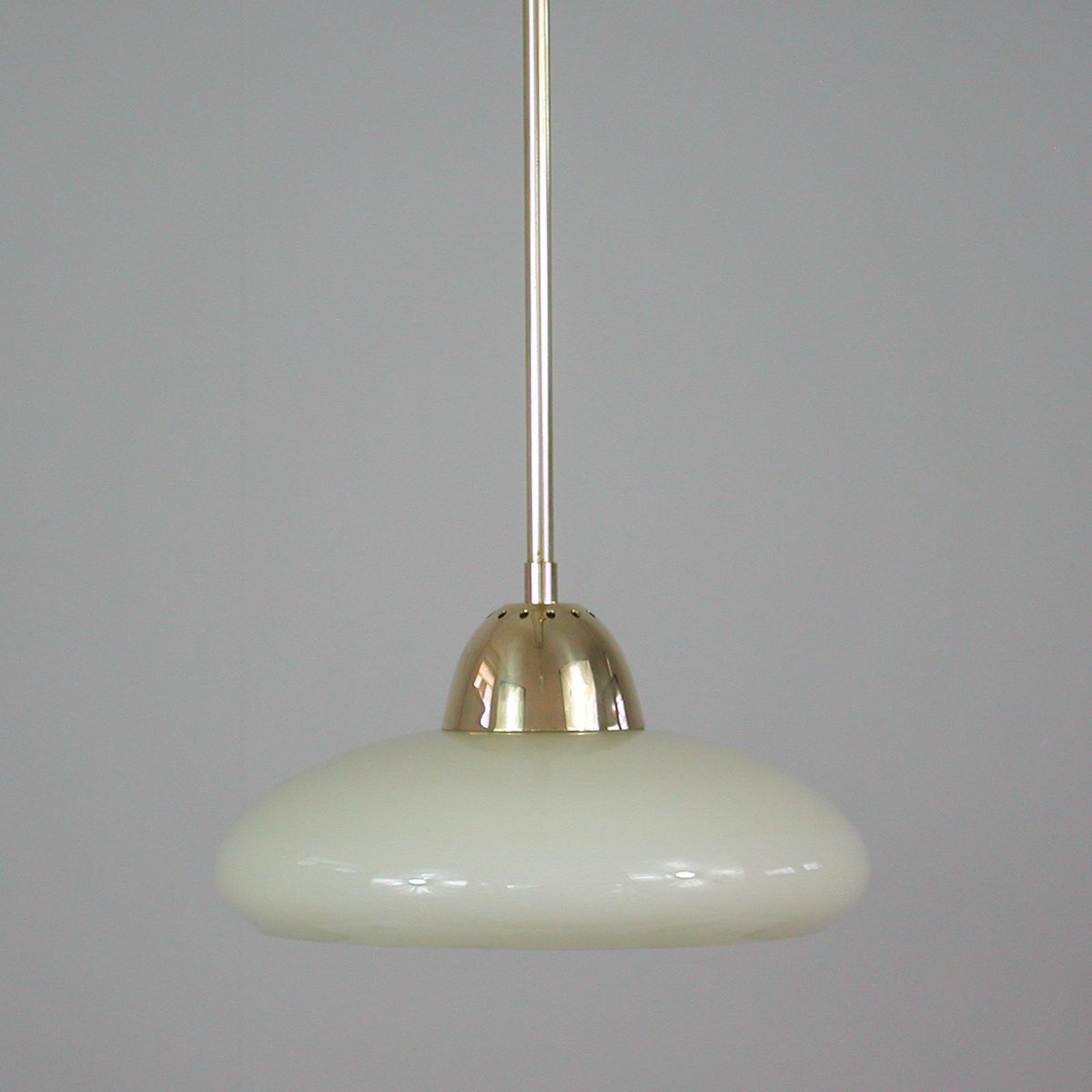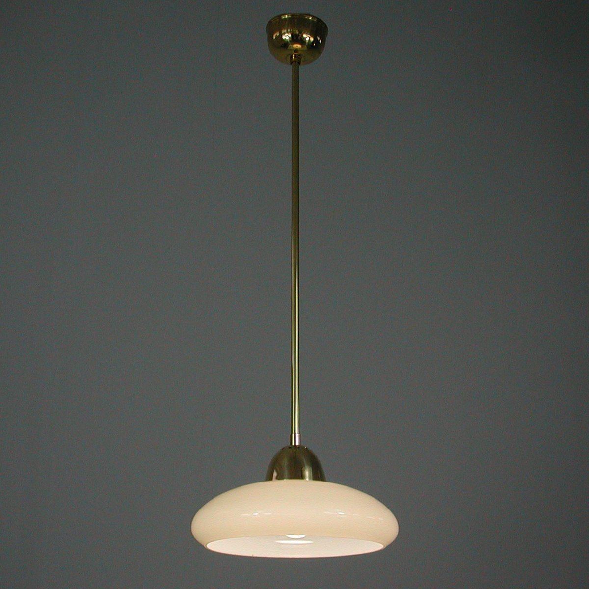 Art Deco Bauhaus Hängelampe aus Opalglas & Messing in Creme, Deutschland, 1930er