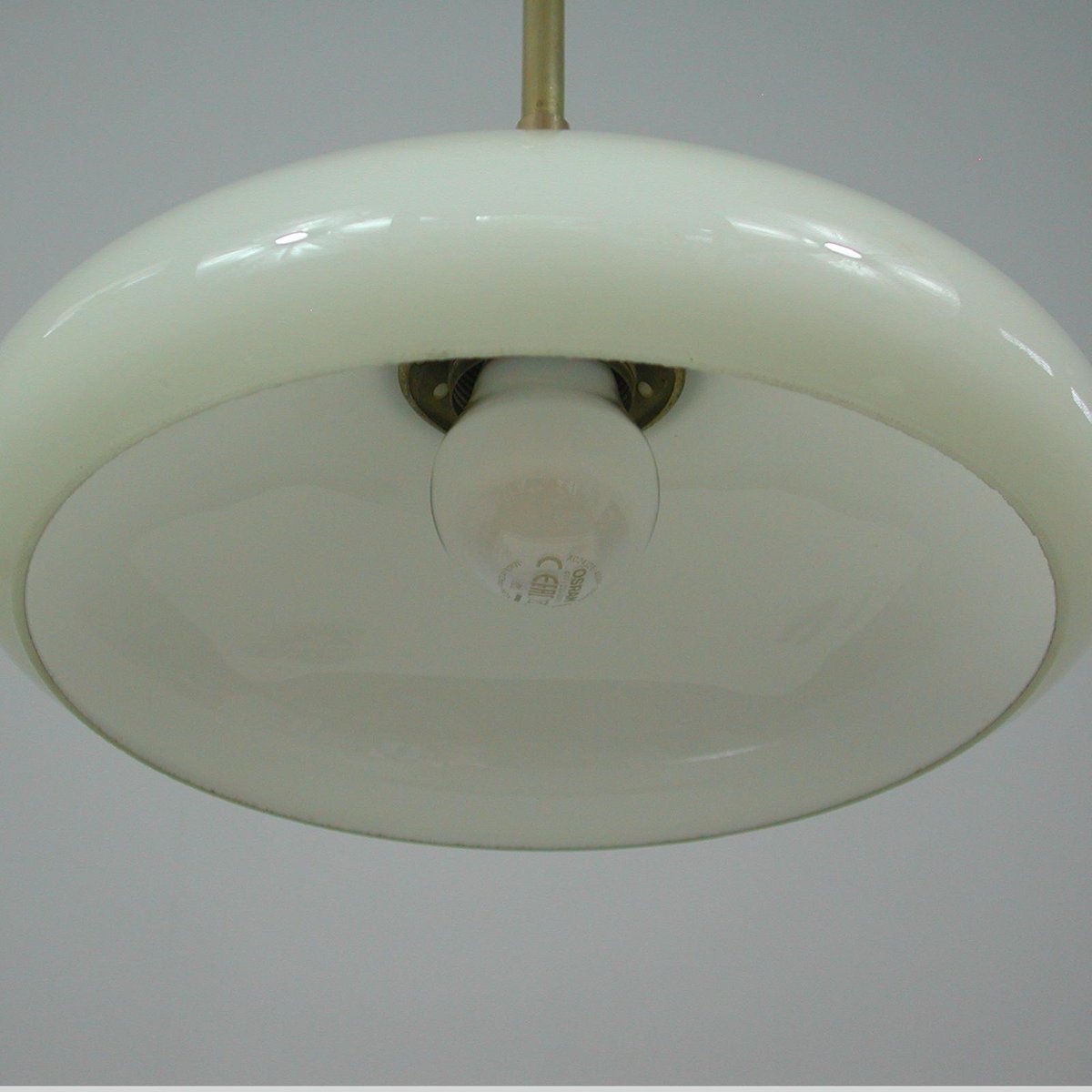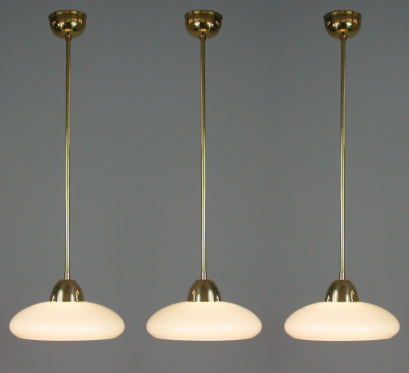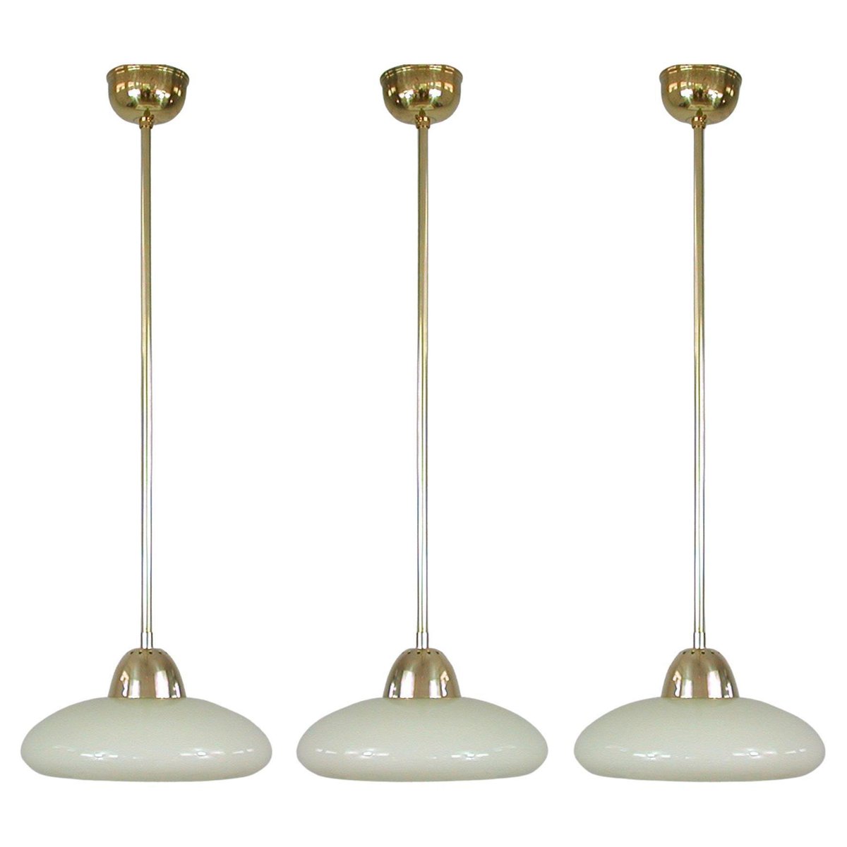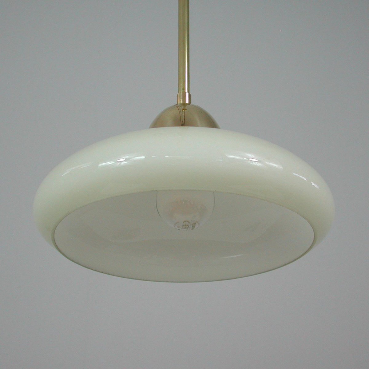 Art Deco Bauhaus Hängelampe aus Opalglas & Messing in Creme, Deutschland, 1930er