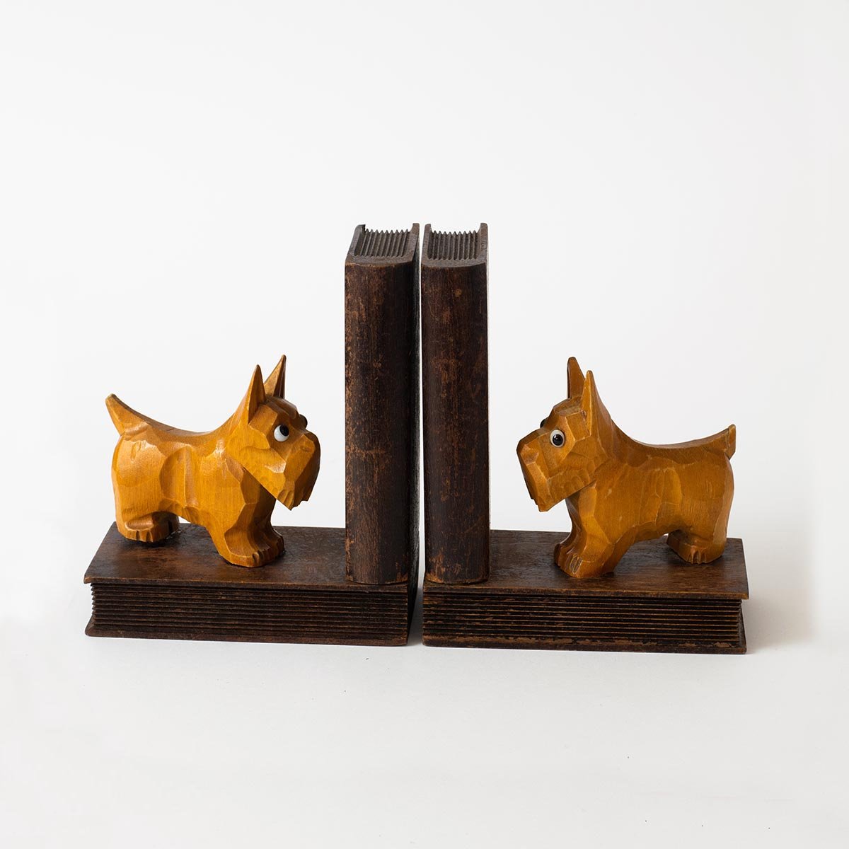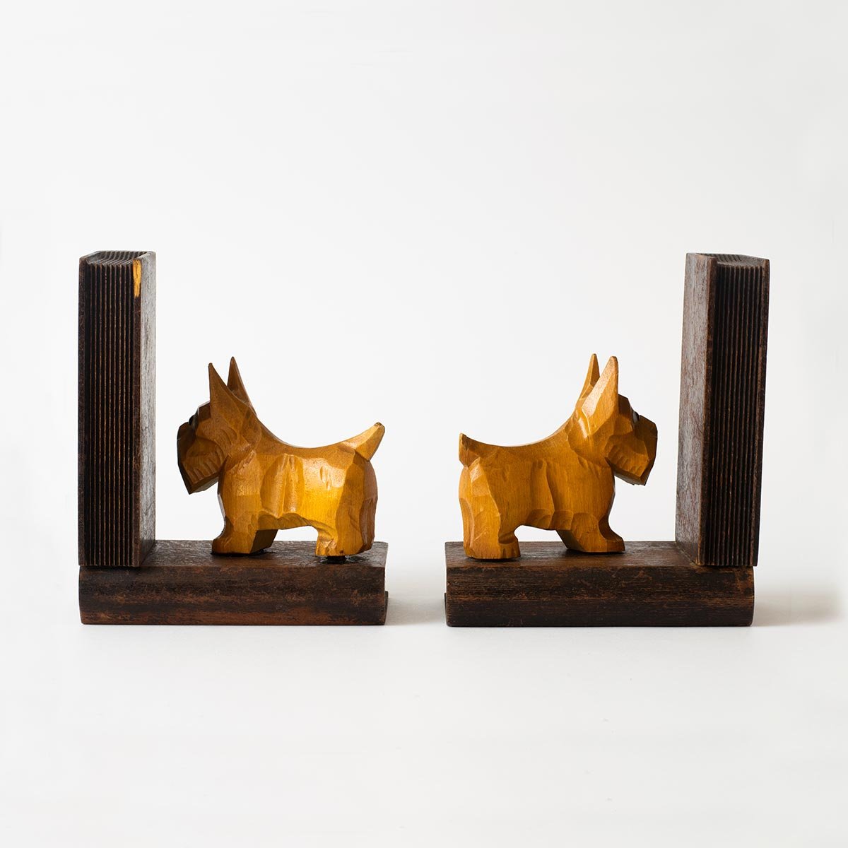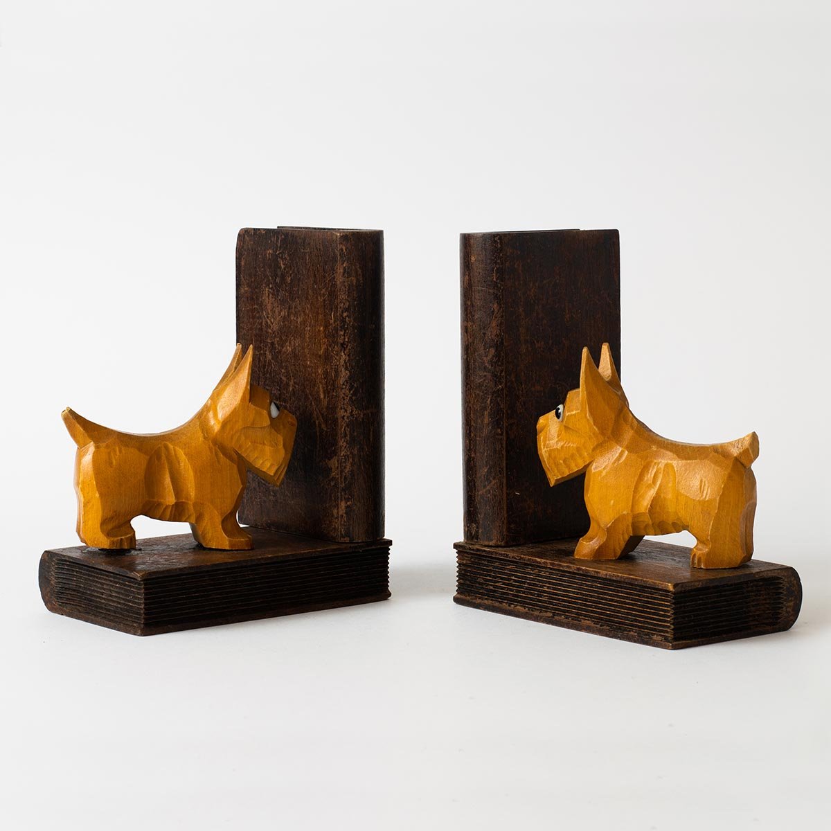 Art Deco Buchstützen aus Holz für Hunde, 1930er, 2er Set