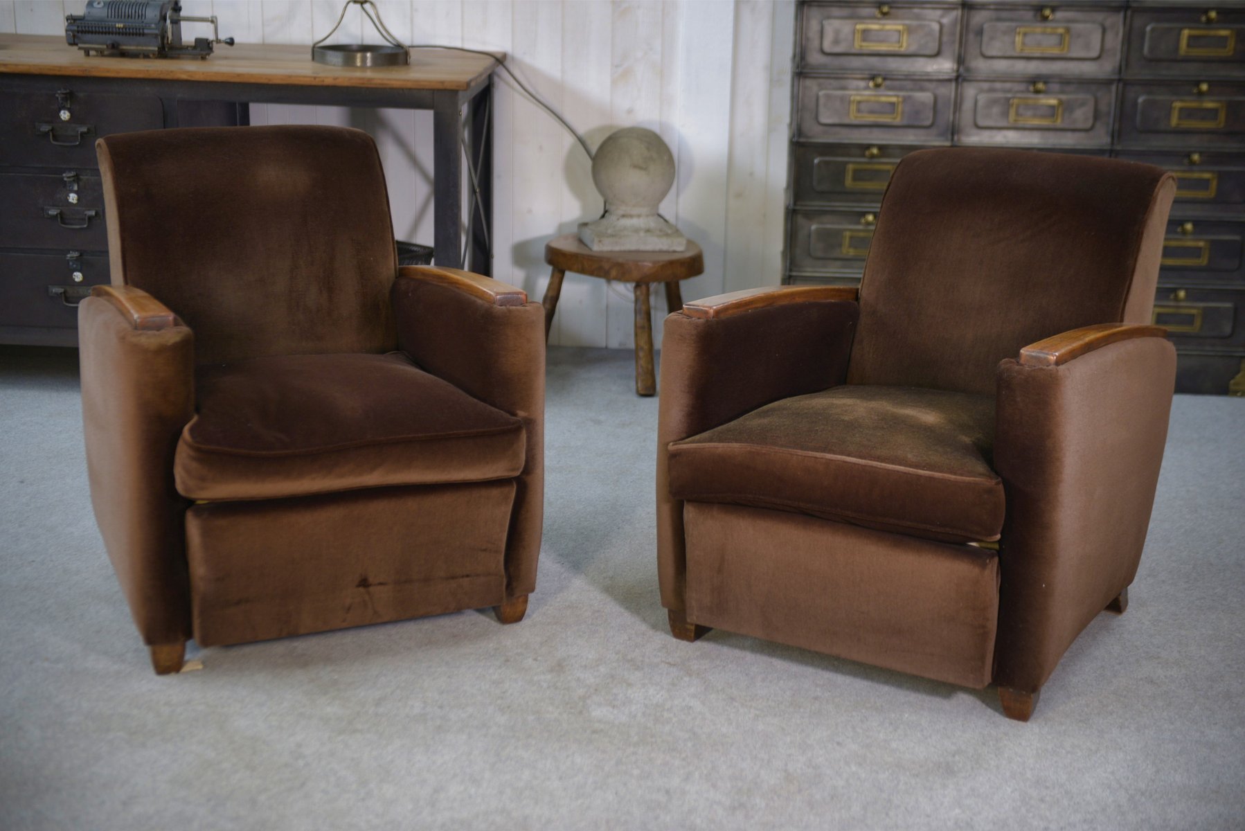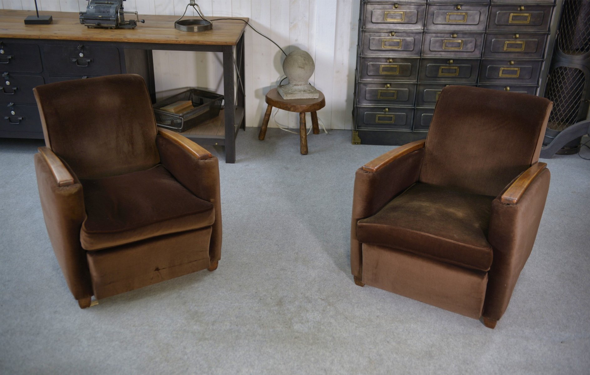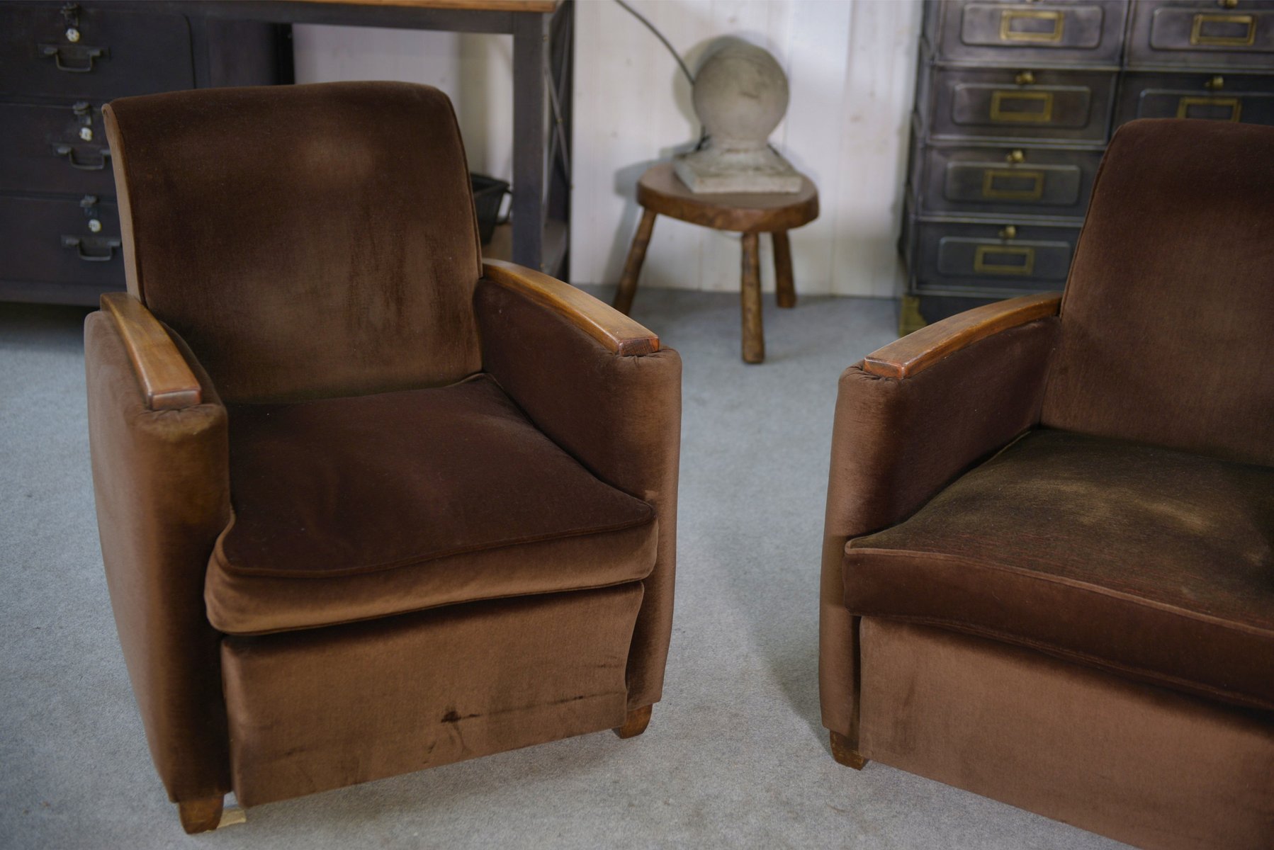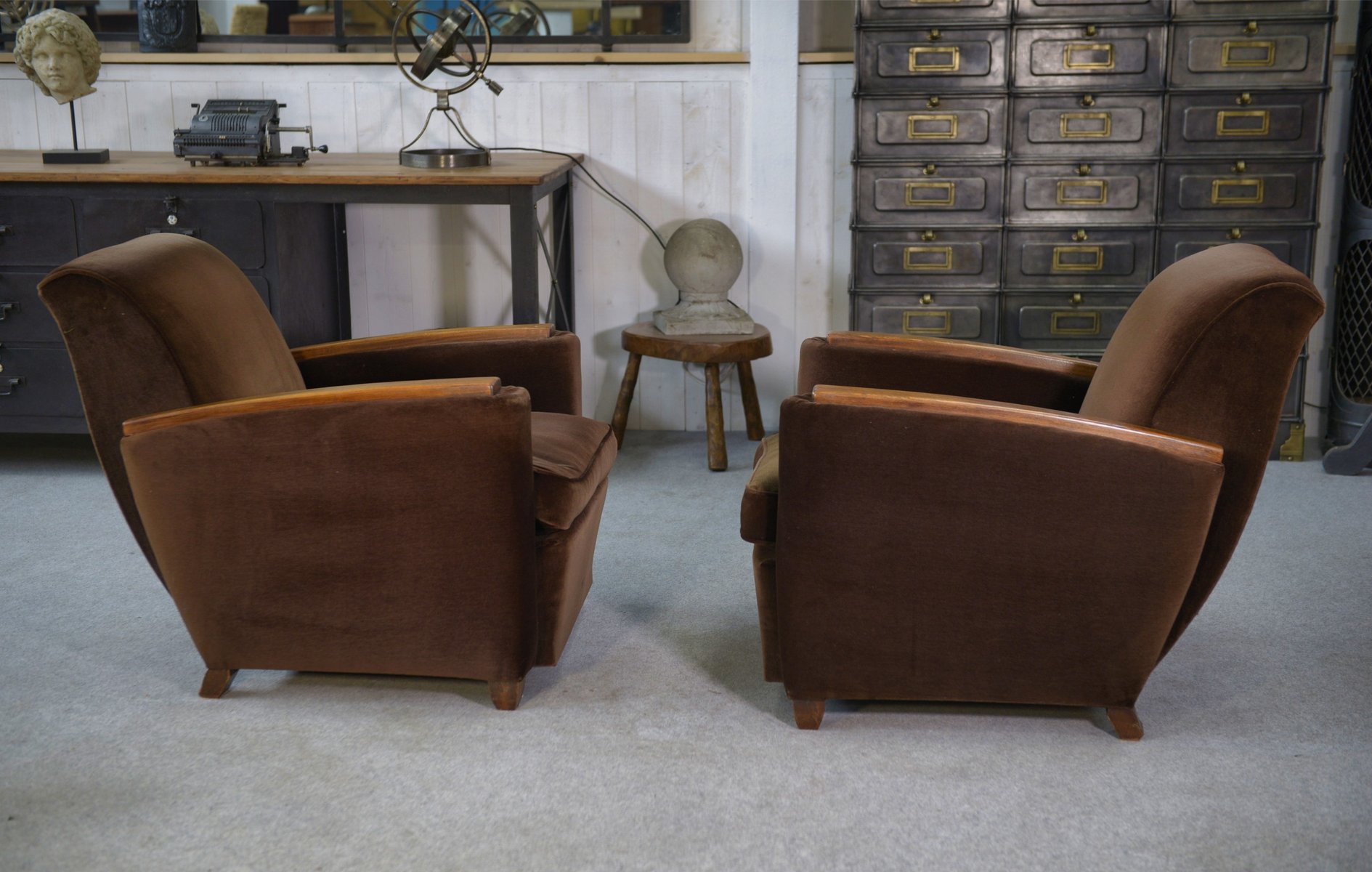 Art Deco Clubsessel aus Samt im Stil von Jules Leleu, 1930er, 2er Set