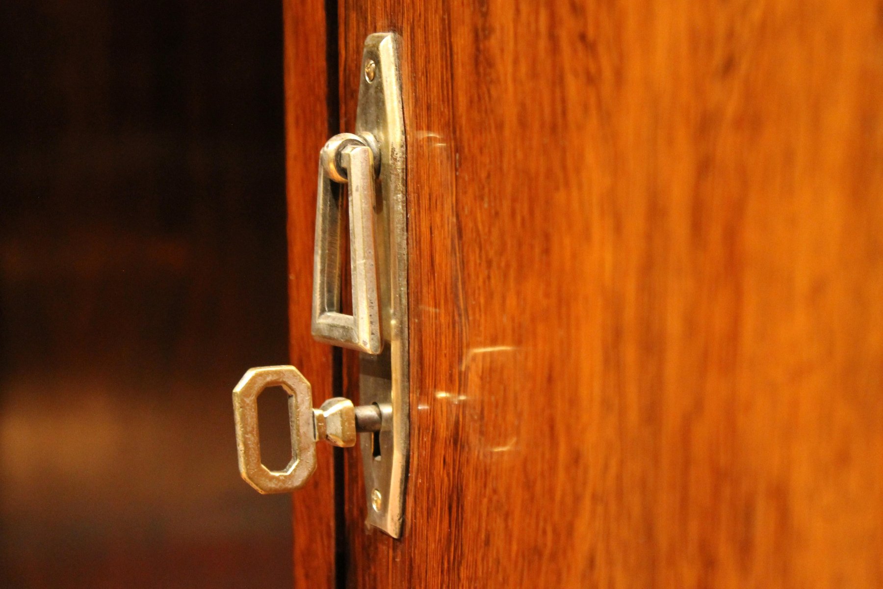Außergewöhnlich seltener Eckschreibtisch oder Frisiertisch der Marke Dominique, Paris. Dieser außergewöhnlich schöne französische Schreibtisch aus der Zeit des Art déco von Maison Dominique wurde von dem französischen Duo André Domin (1883-1962) & Marcel Genevrière (1885-1967), besser bekannt als Dominique, entworfen. Der komplett mit Edelhölzern furnierte Tisch mit eingelegtem Winkelparkett auf der Oberseite verfügt über zwei geräumige Schränke mit Türen, die einen großen Knielochbereich flankieren, sowie ein offenes Regal auf der linken Seite, das reichlich Stauraum bietet. Außerdem bieten die Nischen, die sich auf der Schürze öffnen lassen, mehr Platz für Dokumente, Bücher oder Zeitschriften. Das atemberaubende Design dieses Vintage-Schreibtischs wird durch ein zusätzliches, herausnehmbares Fach auf der Tischplatte bereichert. Dieses zweitürige Regal lässt sich öffnen, um einen Briefkasten oder ein Handschuhfach zu enthüllen, und kann dank seiner breiten, dreieckigen Platte auch als praktische Ablage oder Auflagefläche dienen. Dieser atemberaubende Eckschreibtisch ist mit originalen Griffen, Knöpfen, Schlössern und einem funktionierenden Schlüssel aus silberfarbenem, verchromtem Metall mit raffinierten geometrischen Formen ausgestattet, die typisch für die Zeit des Art Déco sind. Ein Art-Déco-Schreibtisch, der ein Beispiel für hohe Schränke ist. Die beiden Seitenfächer mit Tür sind oben abgerundet und mit geometrischen Einsätzen aus kleinen silbernen Metallstreifen verziert, die sich auch an den Füßen wiederholen. Ein ausgefallenes Design-Möbelstück von sehr hoher Qualität und Handwerkskunst. Dieses französische Unikat aus Furnier trägt auf der Rückseite zwei geprägte Markenzeichen "Dominique Paris". Der Schreibtisch ist in perfektem strukturellem Zustand und in ganz insgesamt perfektem Zustand mit nur einer kleinen Holzdelle auf der linken Seite, wie im letzten Bild gezeigt, die auf Anfrage restauriert werden kann. Professionelle Handpolitur, die diesem Eckschreibtisch einen üppigen Glanz verleiht und die wunderbare Holzmaserung und geflammte Farbe hervorhebt. Dieses hochwertige französische Design-Vintage-Stück kann auch als auffälliger Schreibtisch, Frisiertisch, Frisiertisch, kleine Kommode, Damentisch, Eingangstisch, kleiner Schrank, als Einzelstück in einem Schlafzimmer, Heimbüro oder Arbeitszimmer dienen Die Dekorationsfirma Dominique wurde 1922 in 104 Faubourg Saint-Honore, Paris gegründet. Andre Domin, ein Autodidakt, und Marcel Genevriere, ein ausgebildeter Architekt, waren Mitbegründer des Unternehmens und legten einen fulminanten und schnellen Start hin. Innerhalb eines Jahres vermarkteten sie eine breite Palette von Teppichen, Stoffen, Möbeln und Schmiedeeisen. Dominiques dauerhafte Entwürfe zeichnen sich durch geradlinige Linien aus, die sich mit sanften Kurven verbinden, um der menschlichen Form gerecht zu werden. Das Duo bevorzugte Materialien wie Edelhölzer, Bronze und Kupfereinlagen. Ihr Möbeldesign zeichnete sich durch Schlichtheit und Gediegenheit aus.