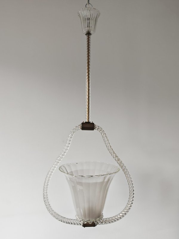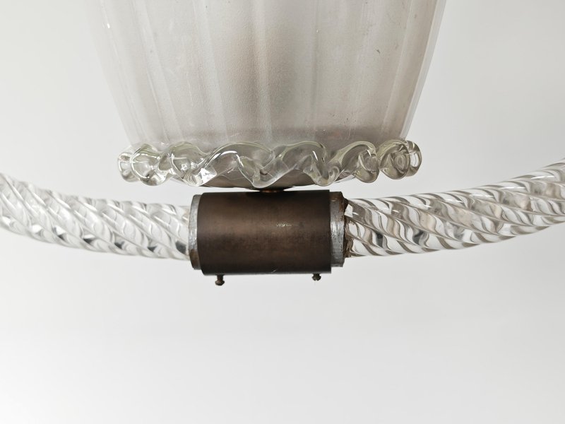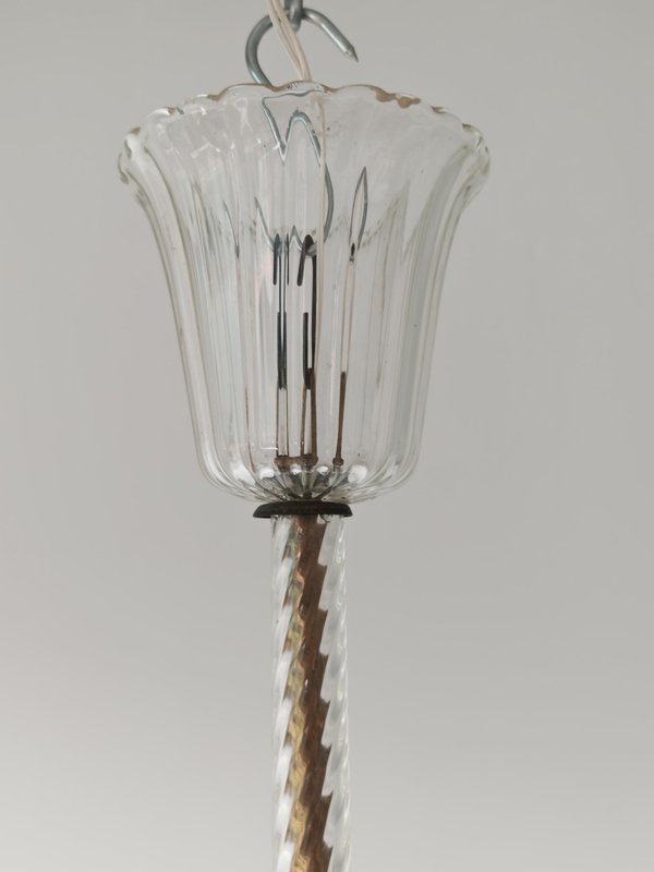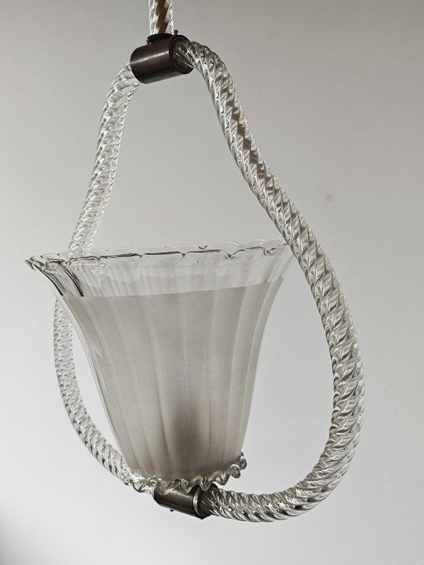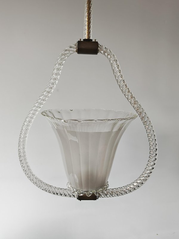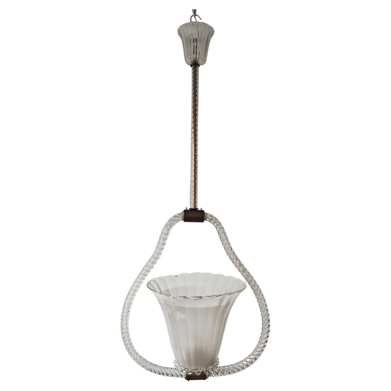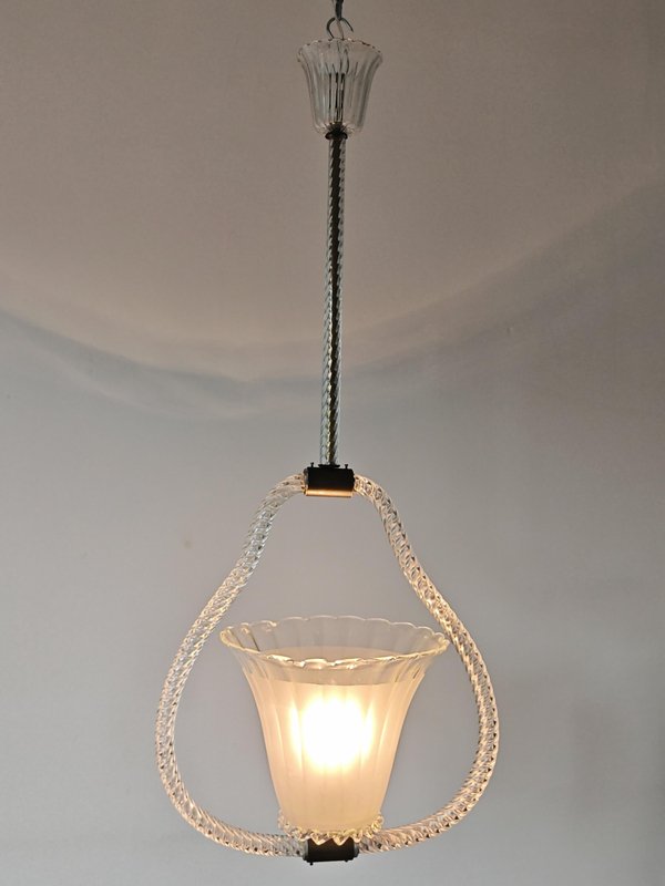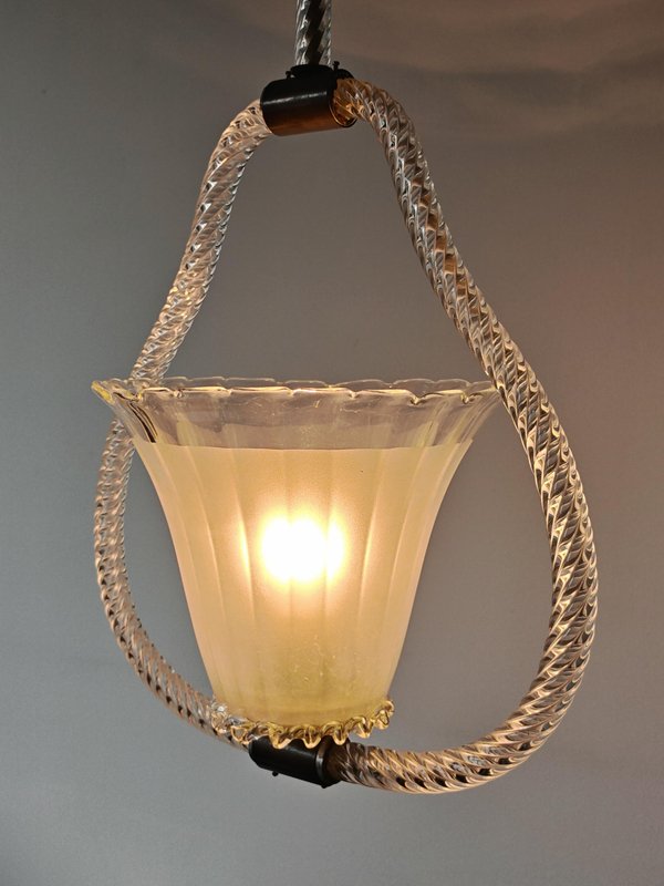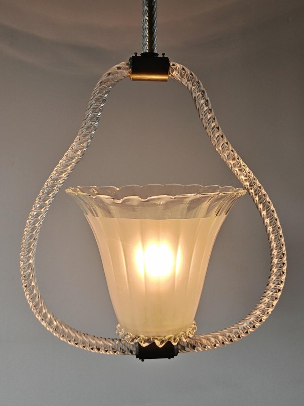 Art Deco Hängelampe aus Strukturiertem Muranoglas von Barovier and Toso, Italien, 1940er