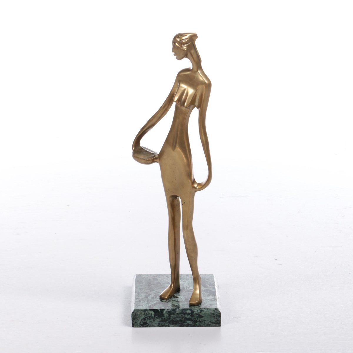 Art Deco Messing Statue einer Afrikanerin auf Marmorsockel, 1970er