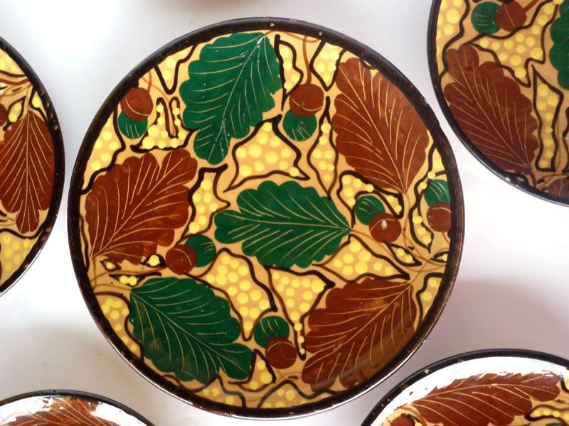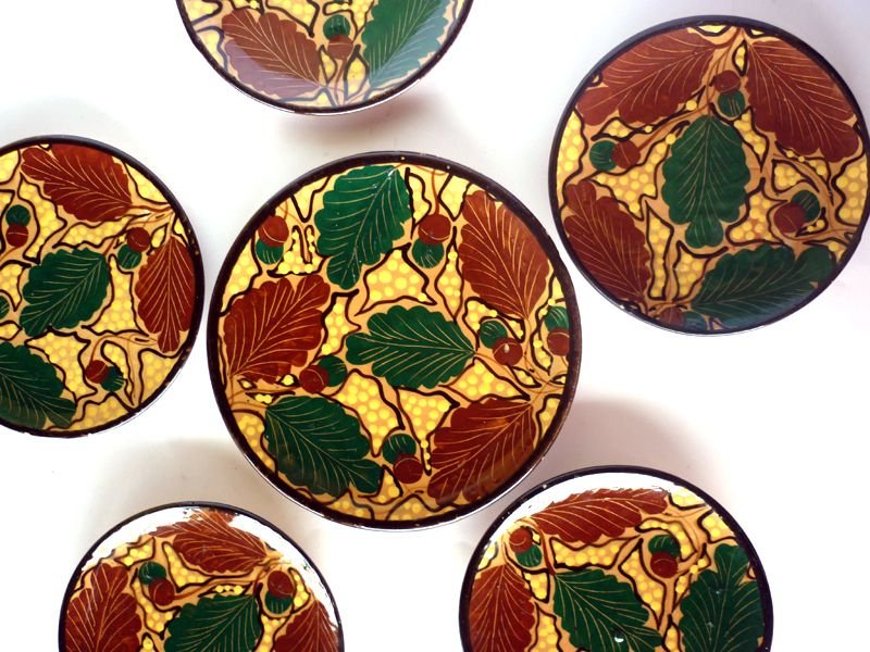 Art Deco RBC Eichenholz Teller von Bini & Carmignani, 1920er, 6er Set