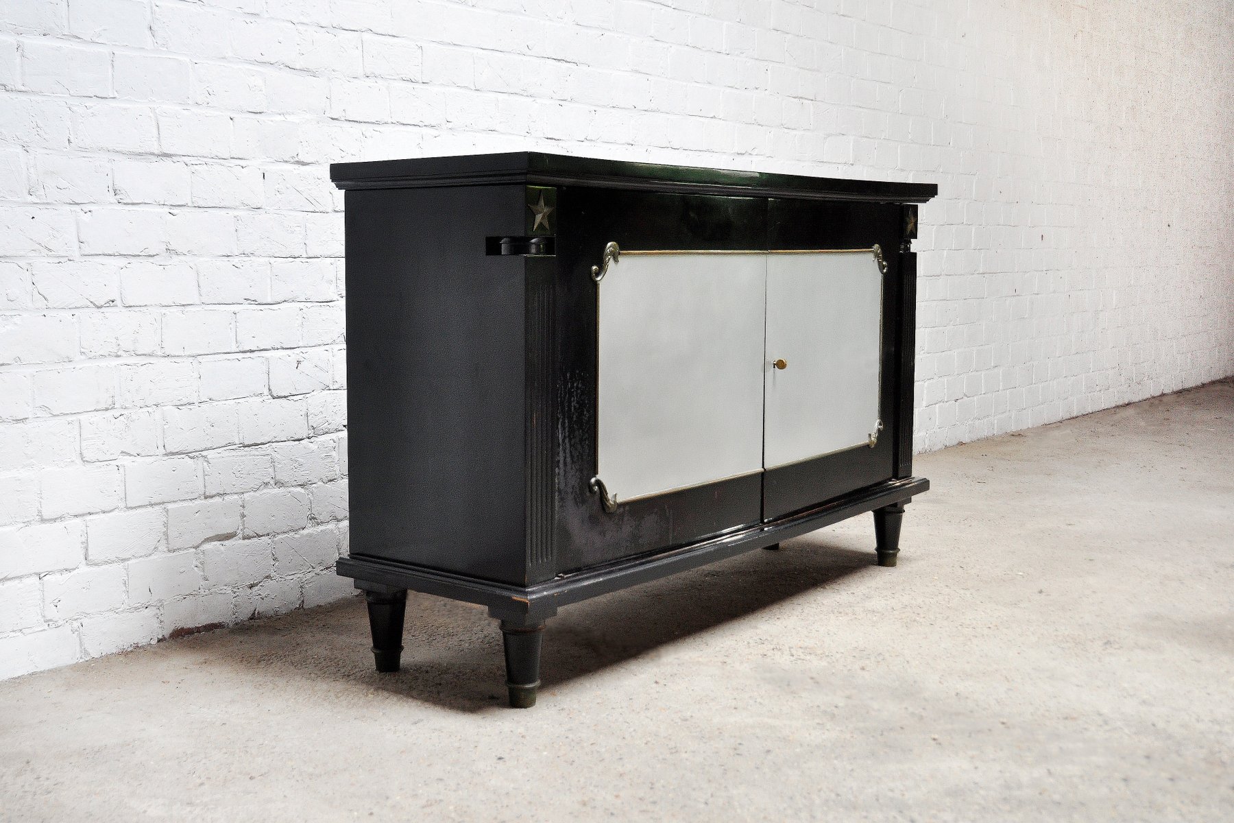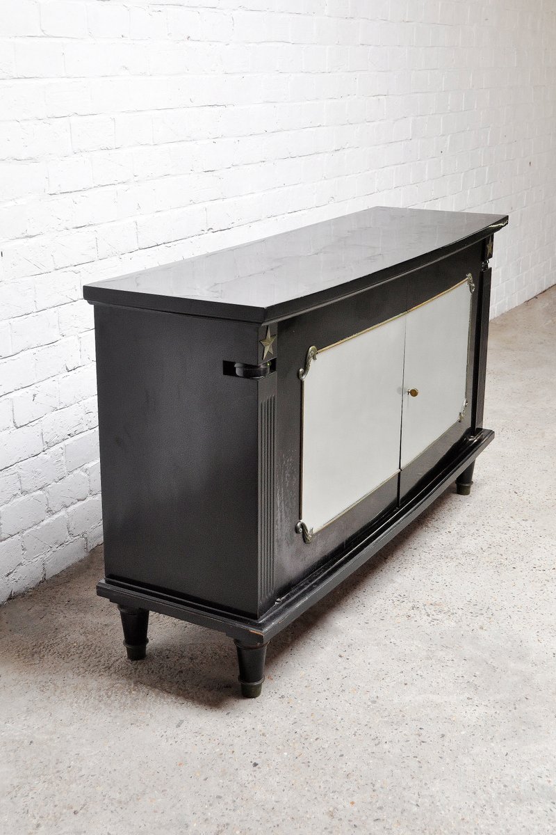 Art Deco Schrank aus schwarzem Lack & Bronze im Stil von André Arbus, Frankreich, 1930er