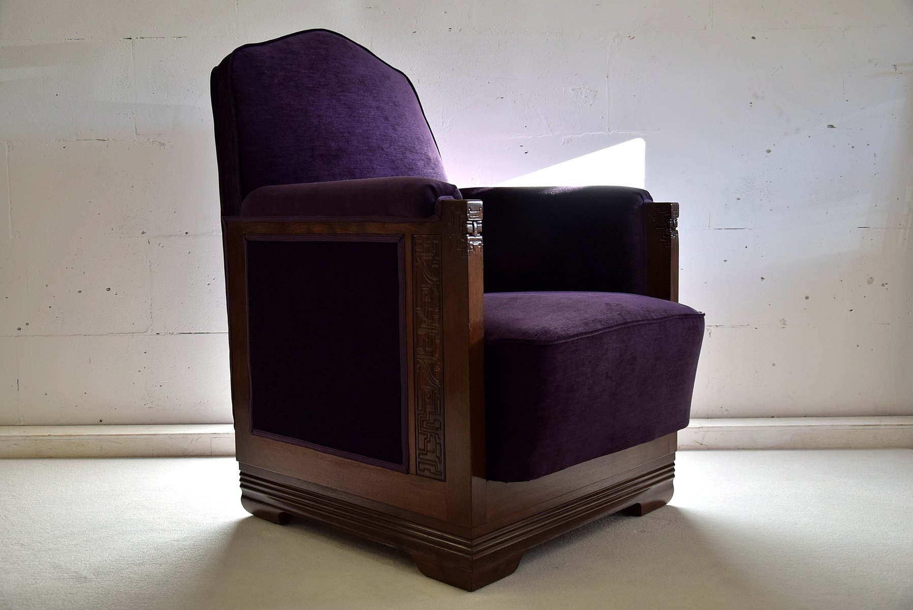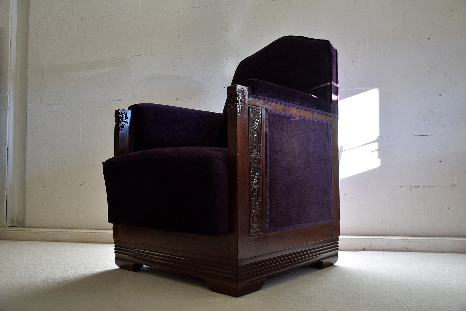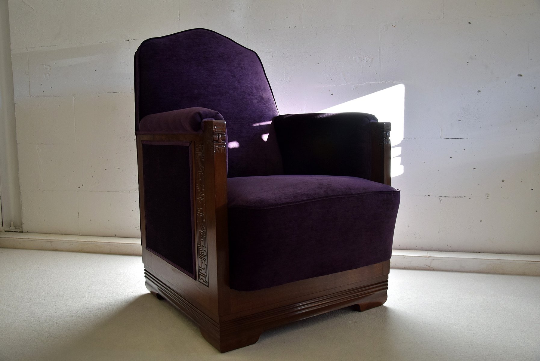 Art Deco Sessel aus Mahagoni & Lila Samt von Carel Adolph Lion Cachet, 1930er