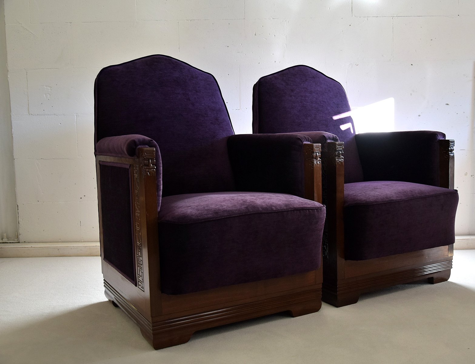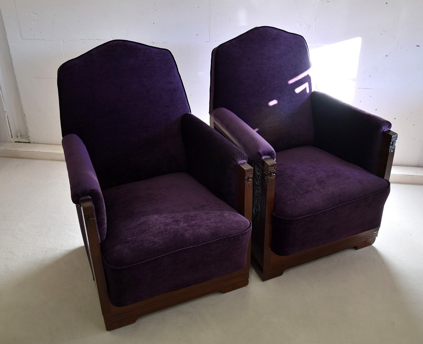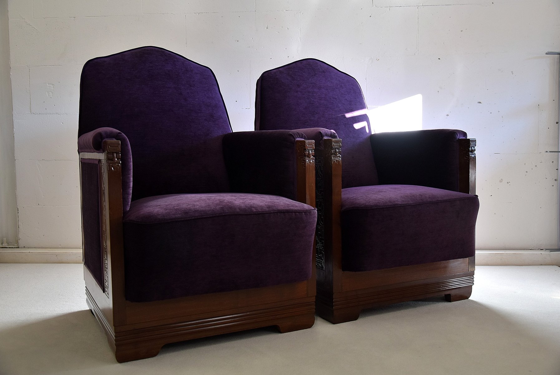 Art Deco Sessel aus Mahagoni & Lila Samt von Carel Adolph Lion Cachet, 1930er