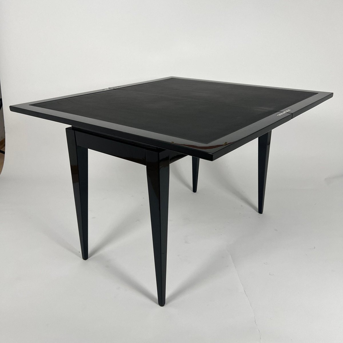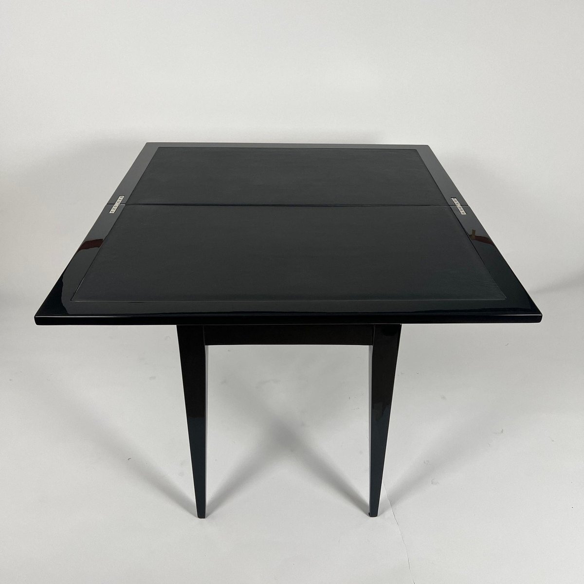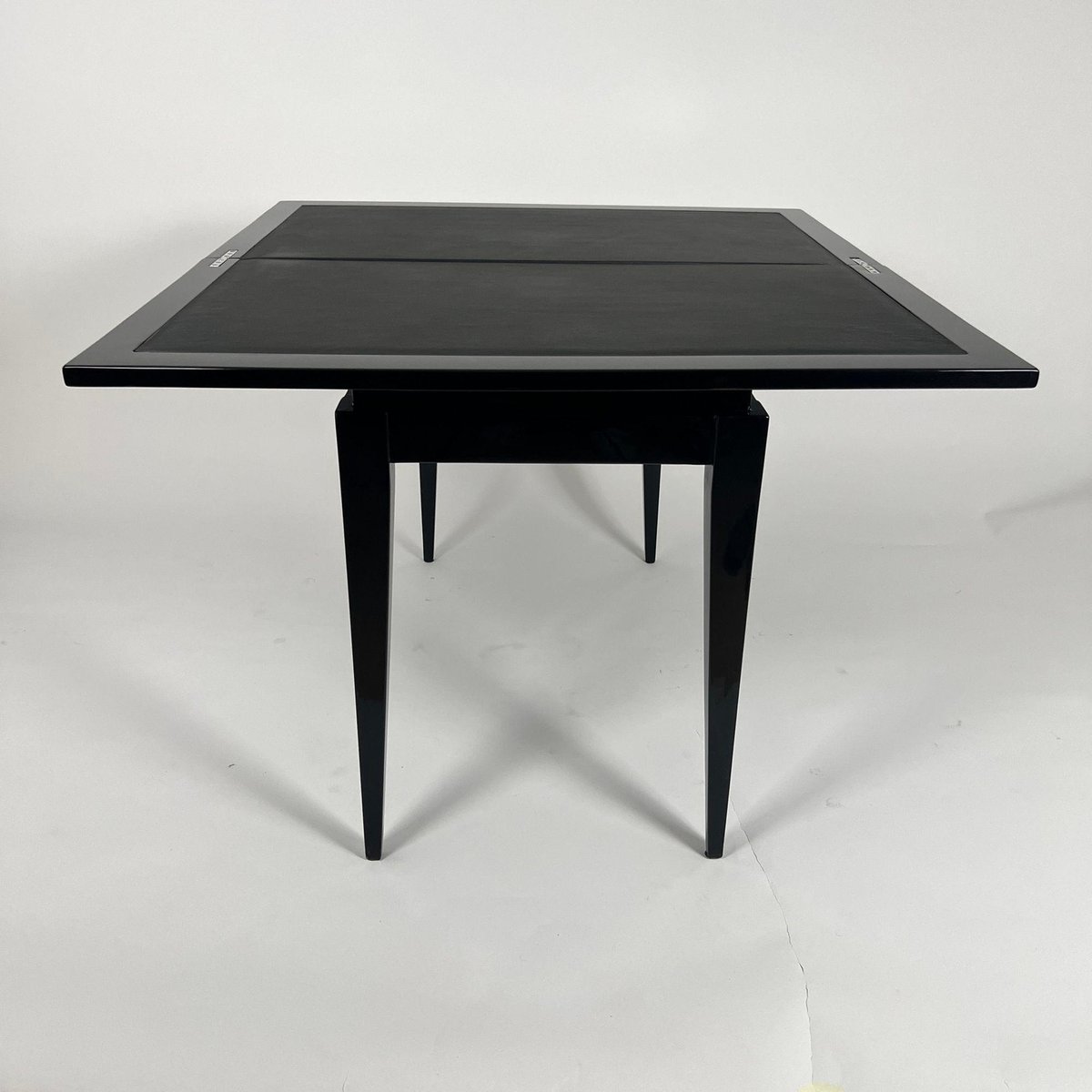 Art Deco Spieltisch aus schwarzem Lack, rotem und schwarzem Leder, Frankreich, 1930er