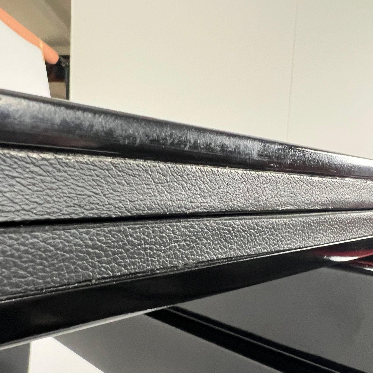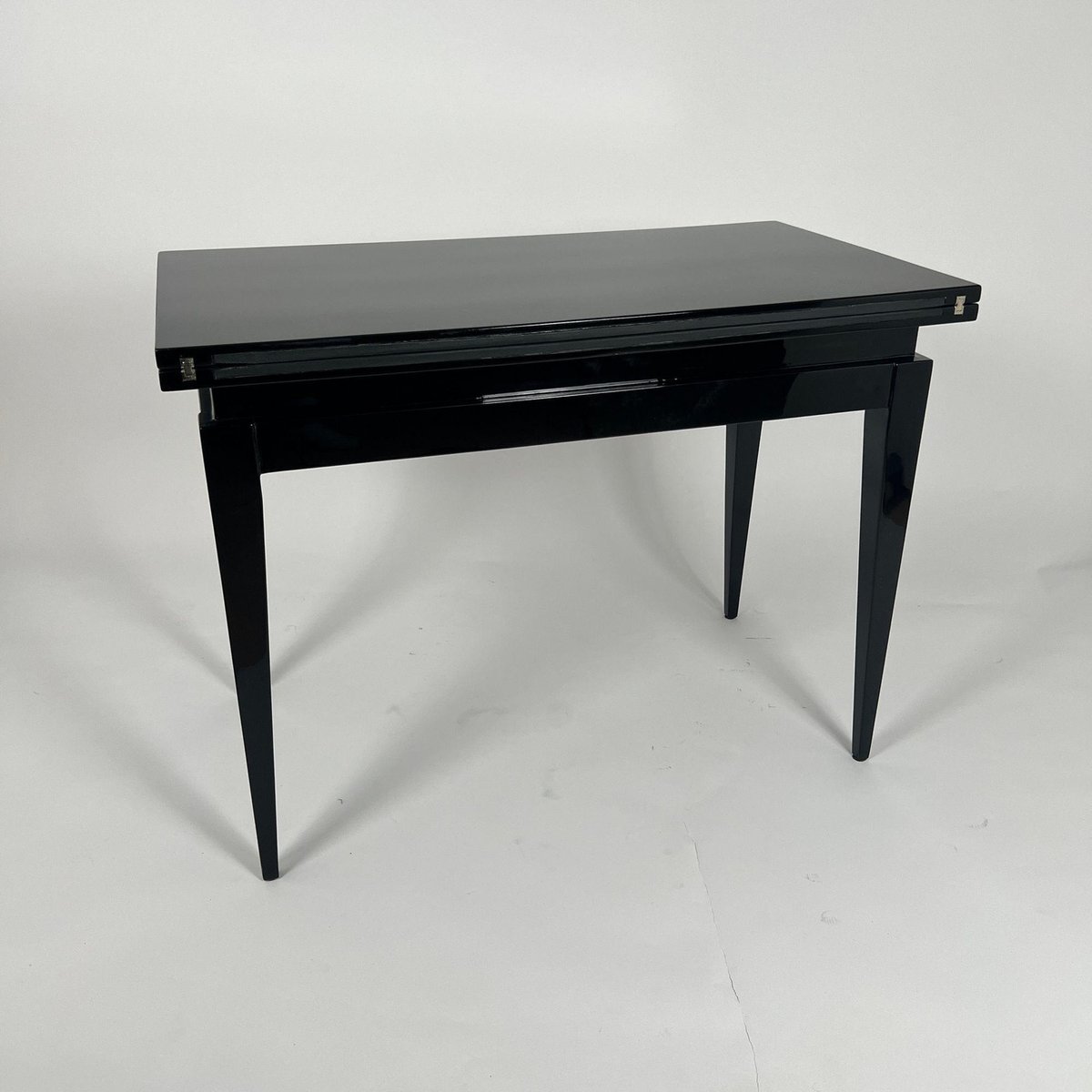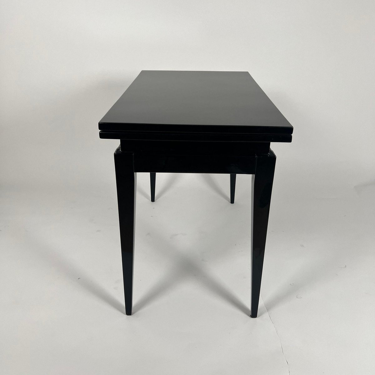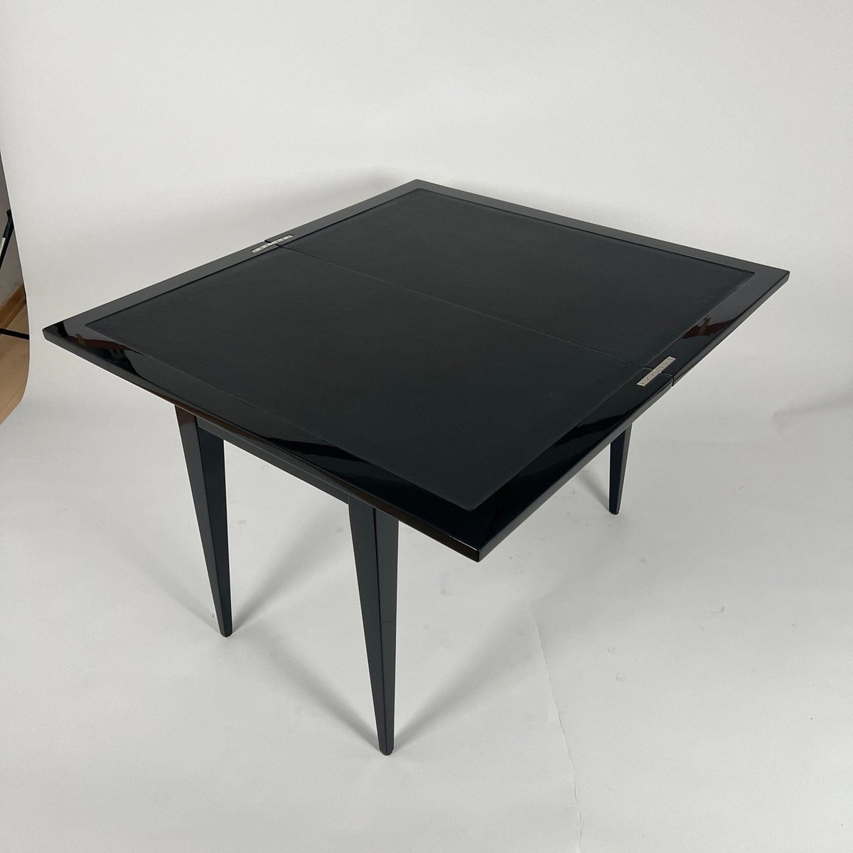 Art Deco Spieltisch aus schwarzem Lack, rotem und schwarzem Leder, Frankreich, 1930er